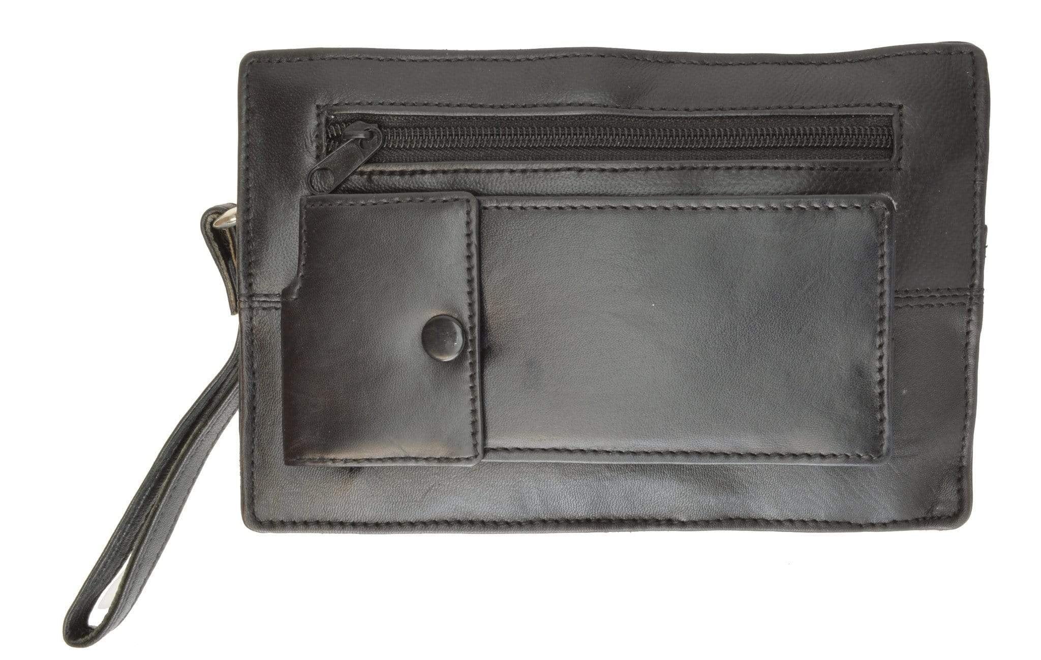Material: Genuine LeatherSize: 4"; x 3" approxOther features: One zippered pocket and one pocket with...