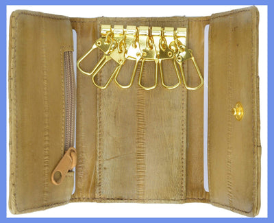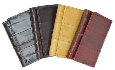Made of genuine Eel Skin leather. Eel skin leathers, called the "Silk of the Ocean", combine a colorful thin silky texture and durability. Eel is proven to be 1.5 times stronger than cowhide of the same thickness.