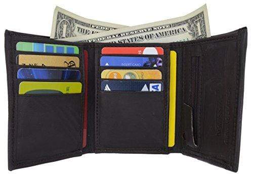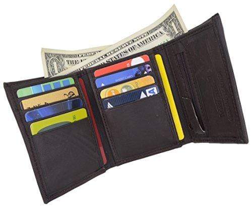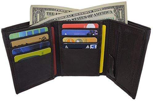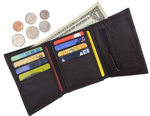 Lambskin Leather Men's Trifold Outside ID Credit Card Holder W/Zipper Pocket Wallet