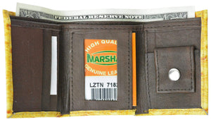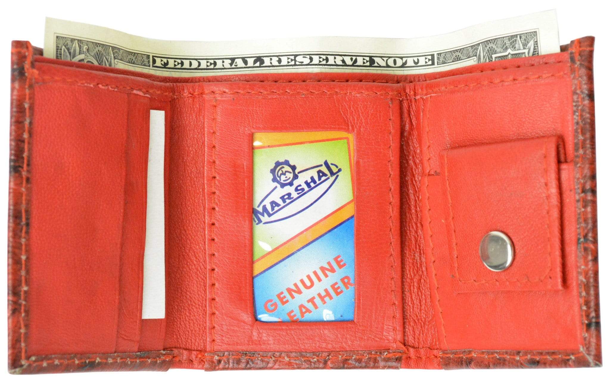 Material: Genuine Leather Tri-fold Credit Card Slots: 8+ I.D. Window: Yes Currency Pocket: Divider; Hideaway...