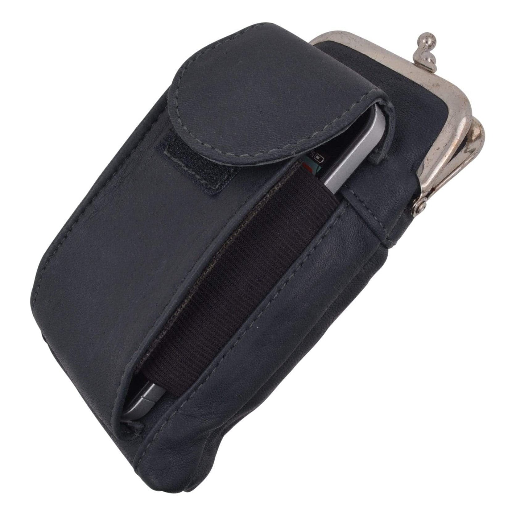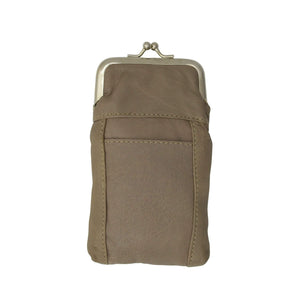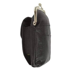 Material: Genuine Leather Size: 2.5"L x 1.25"W x 4.25" H (approx)Other features: Pocket on side...