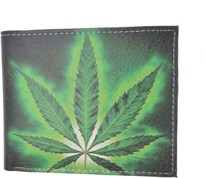 Marijuana Leaf Men's Genuine Leather Multi Card ID Center Flap Bifold Wallet