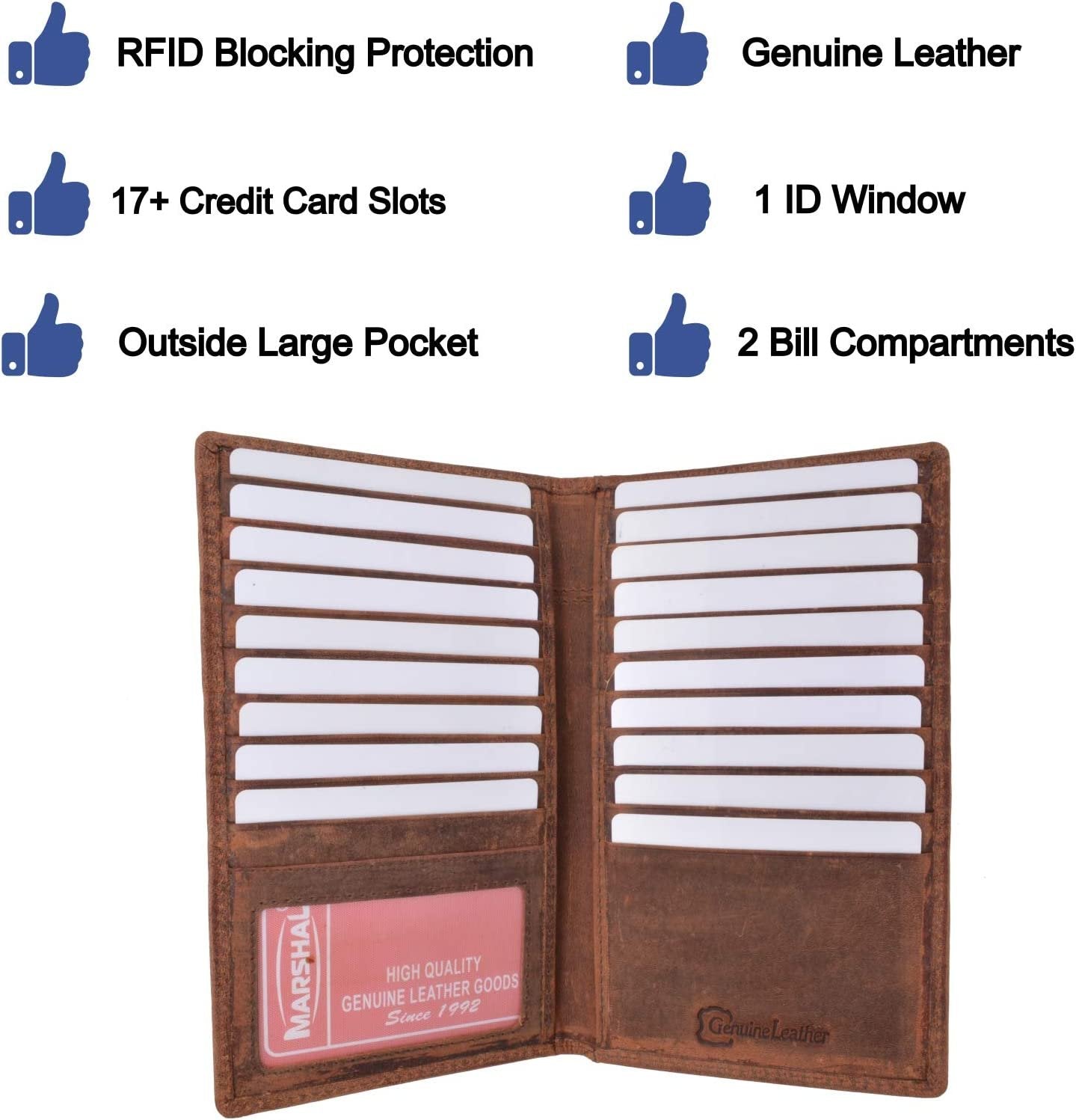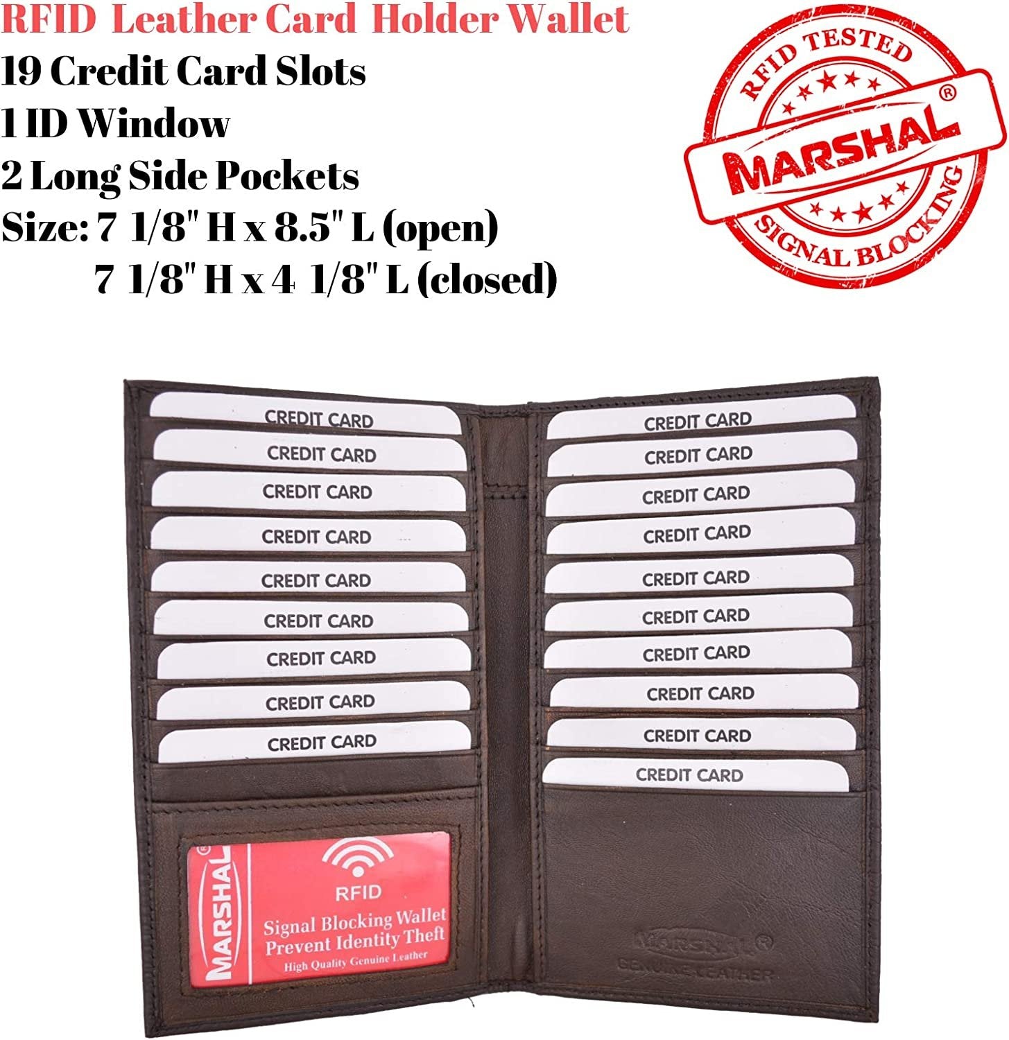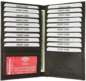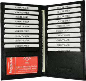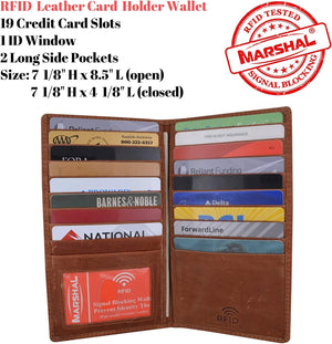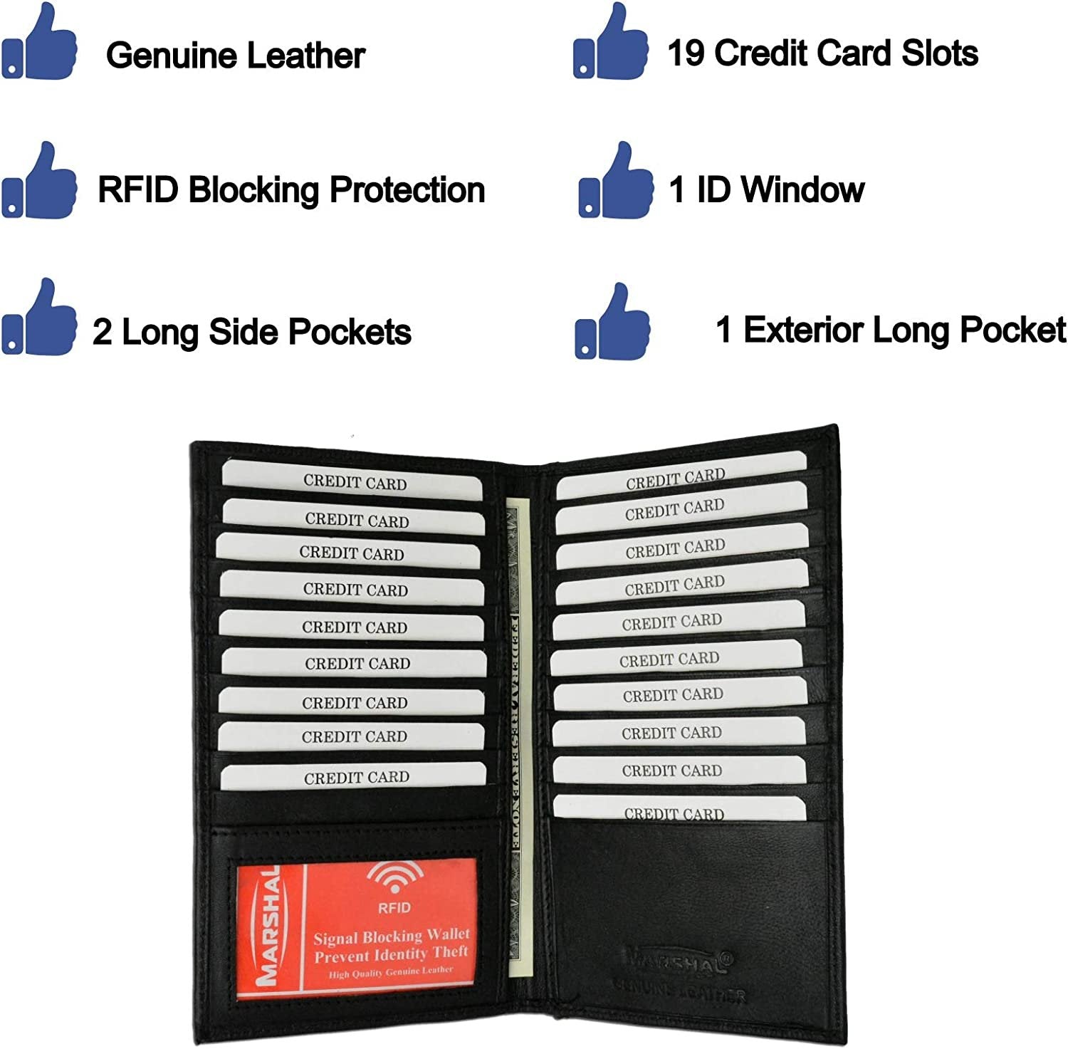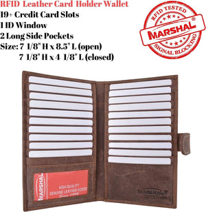 Marshal Bifold Leather RFID Blocking Wallet For Men & Women | Genuine Leather Holder With 19 Slots, 2 Bill Compartments & ID Window For Credit/Debit Cards, Money & More (Black)