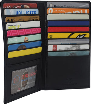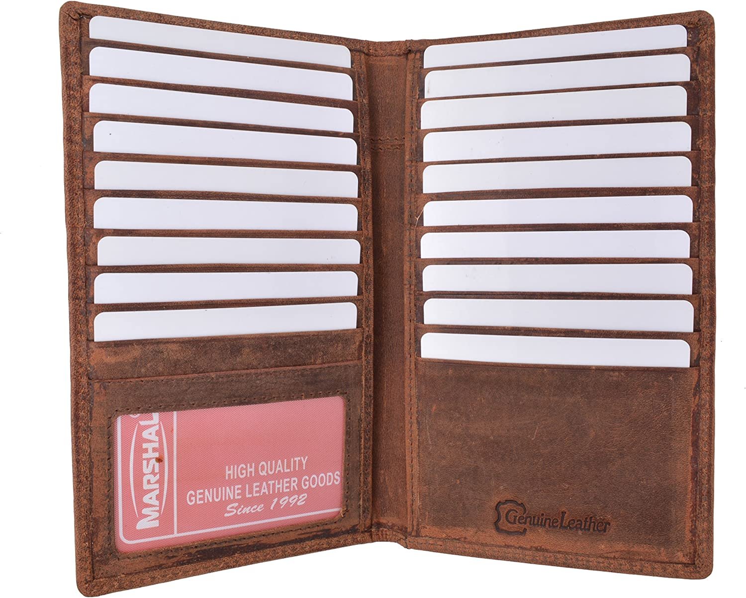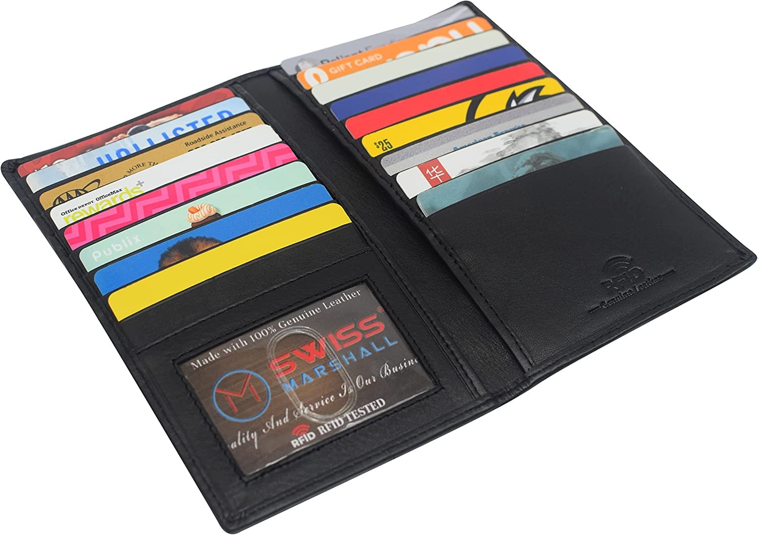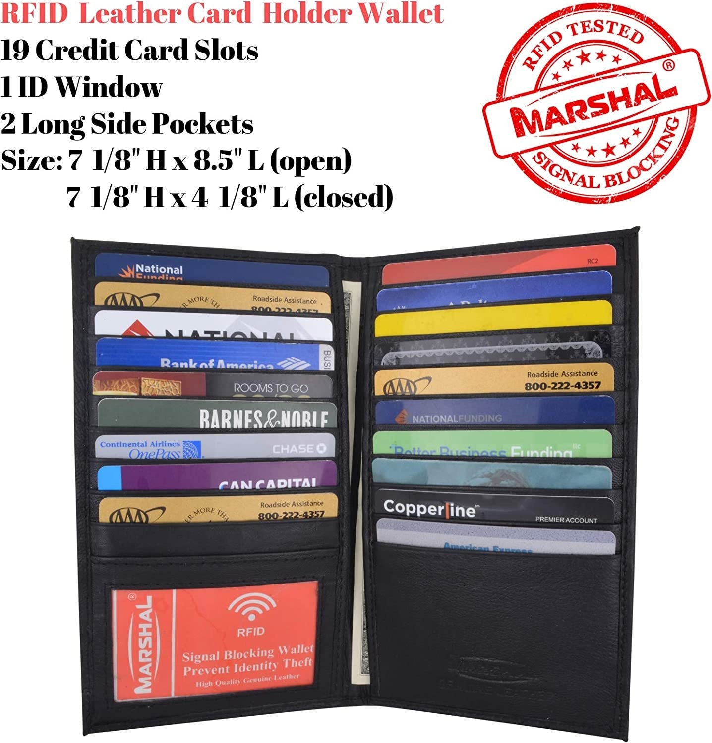 Marshal Bifold Leather RFID Blocking Wallet For Men & Women | Genuine Leather Holder With 19 Slots, 2 Bill Compartments & ID Window For Credit/Debit Cards, Money & More (Black)