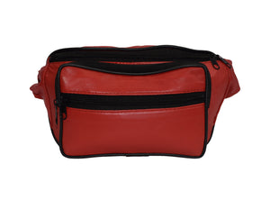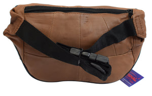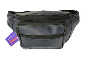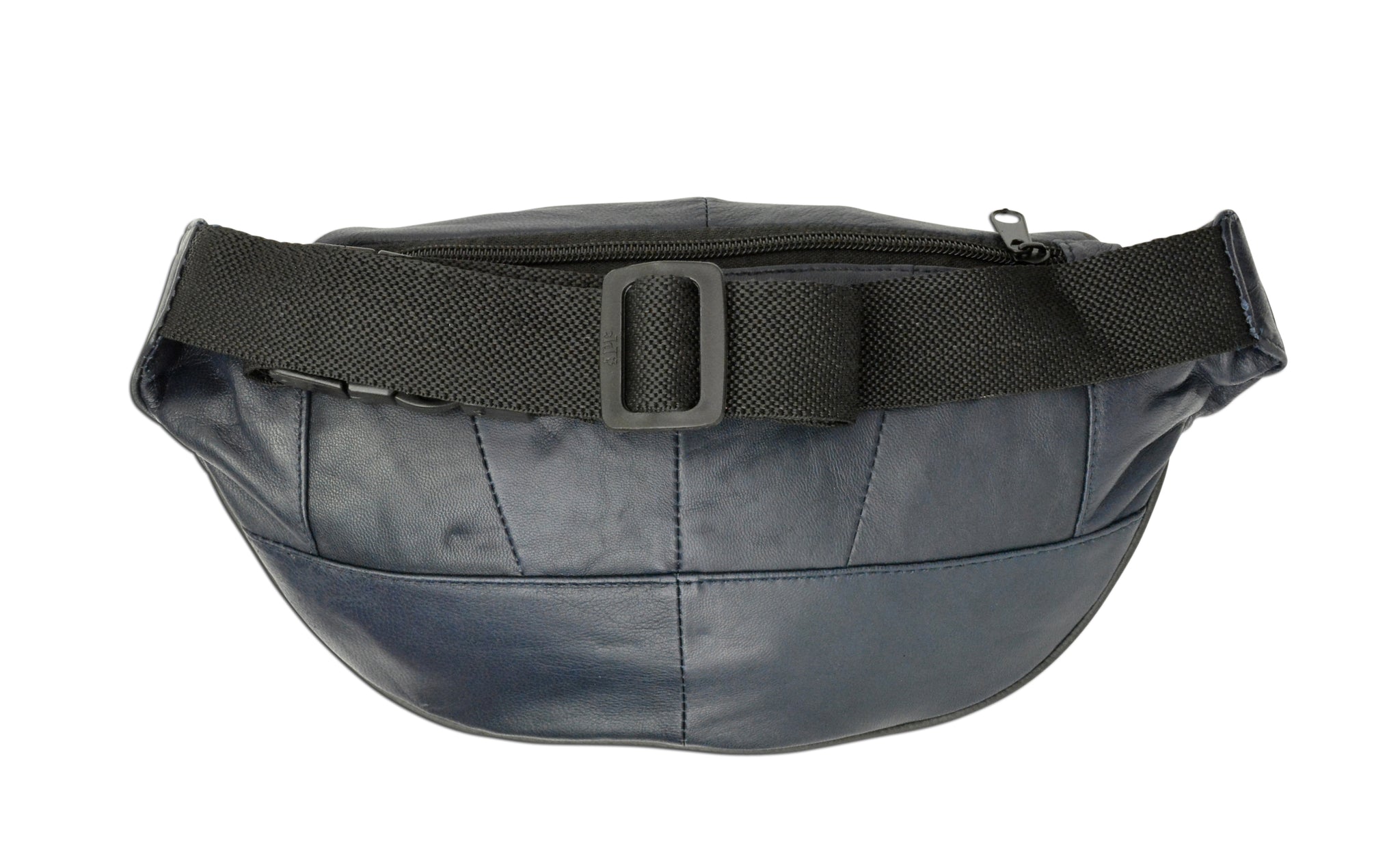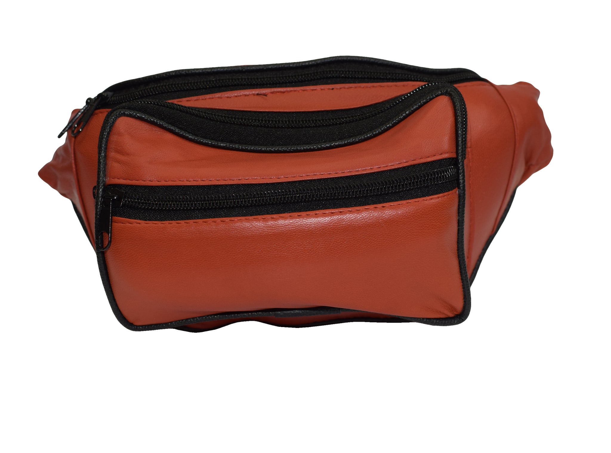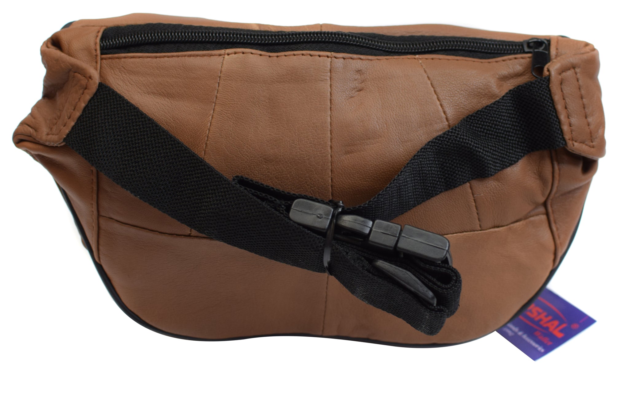 A Stylish Unisex Fanny Pack from Marshal. Quality constructed with beautiful soft Lambskin leather. It features five zippered compartments and a strong adjustable strap. Can hold cell phone, wallet and more. This is a luxurious fanny pack that will last a long time & back side has an wide zippered compartment. This has 5 zippered pockets in all, one of them in the back. The size of the zippers are 9", 7", 6", 2.1/2" & 2.1/2". It is appx. 6" tall & 13" long. It will expand to 4"-6" when fully loaded, The adjustable strap extends to app. 45" in length.