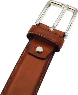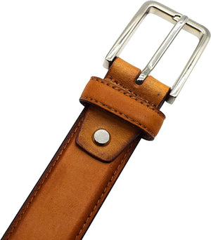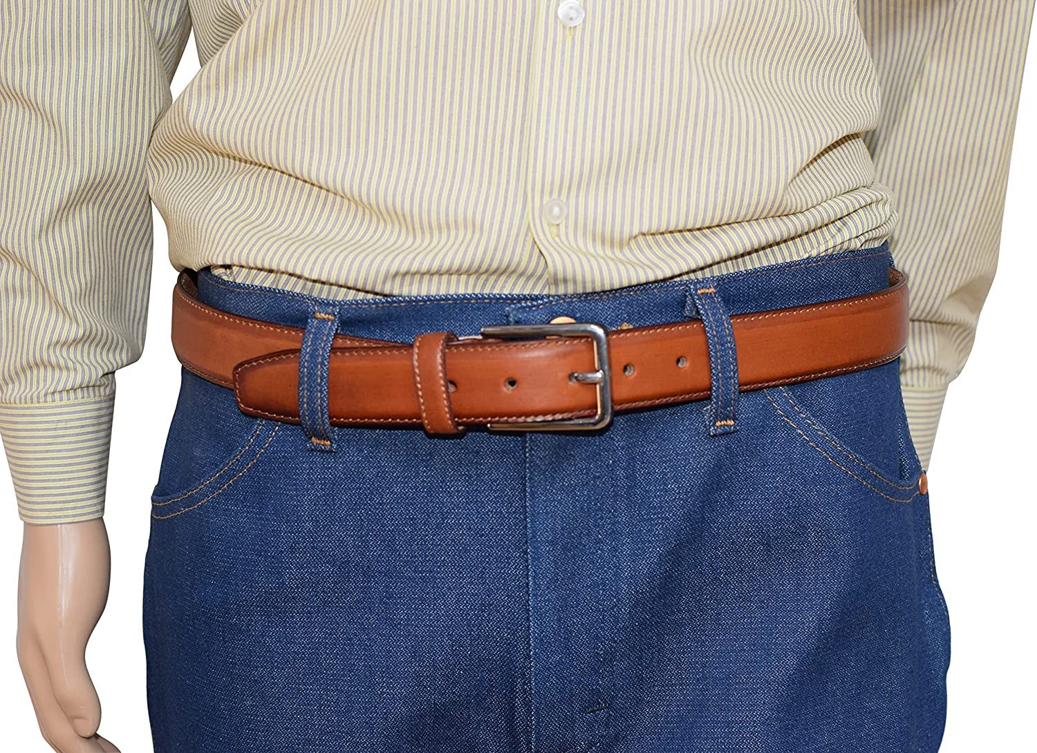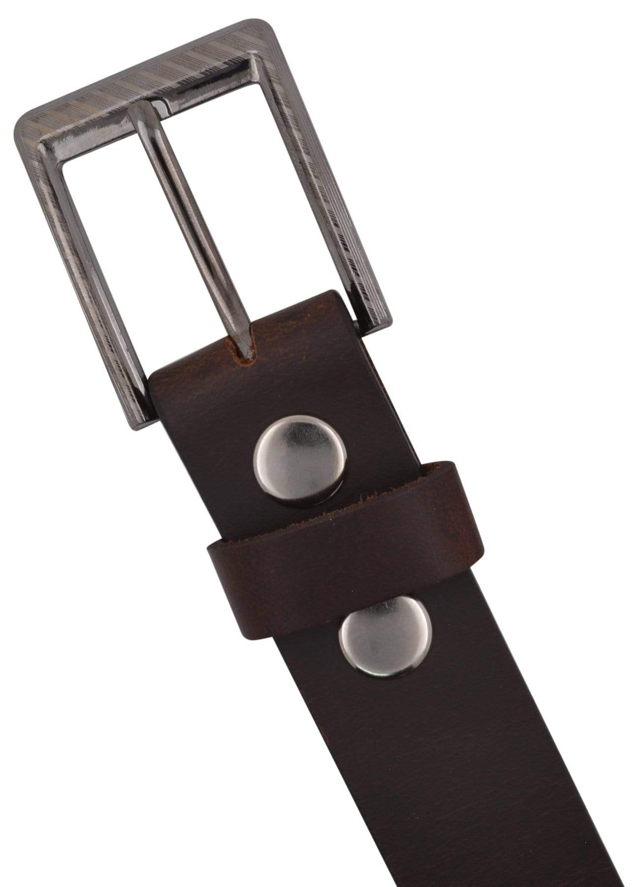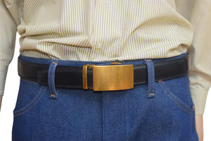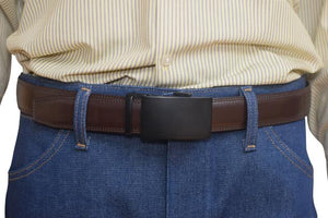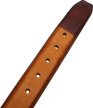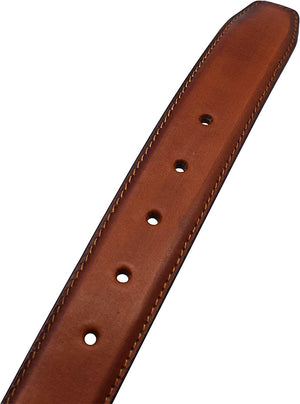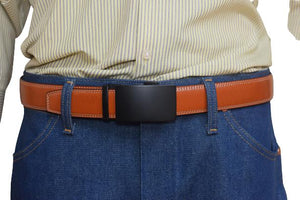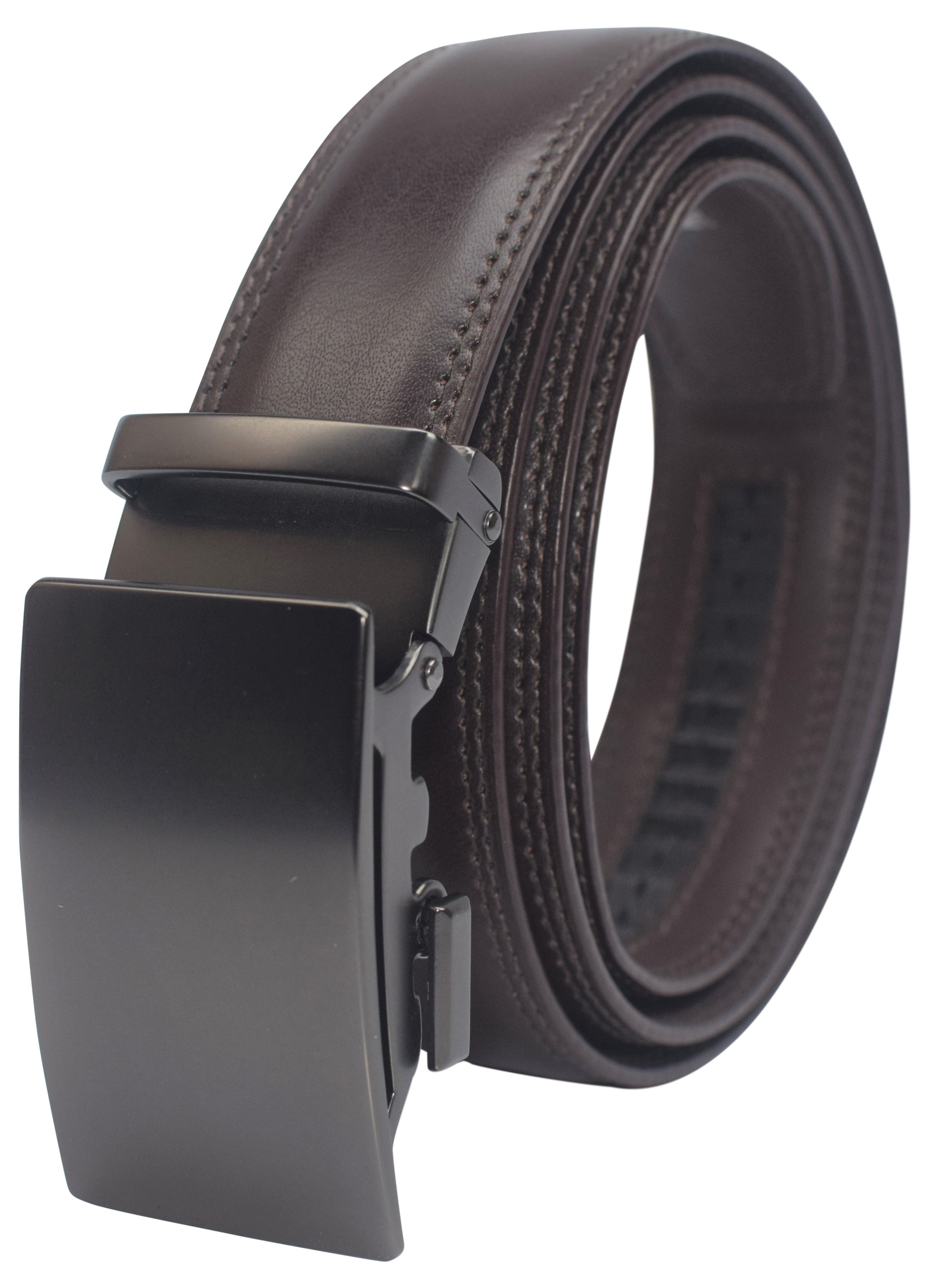 MAXIMUM DURABILITY - Leather strap is a bit wider than 1 2/5" presenting the perfect look of a fine, genuine leather quality belt, complemented with an HIGHLY FASHIONABLE stylish, buckle that is elegantly designed with class. Scratch resistant buckles made to last.