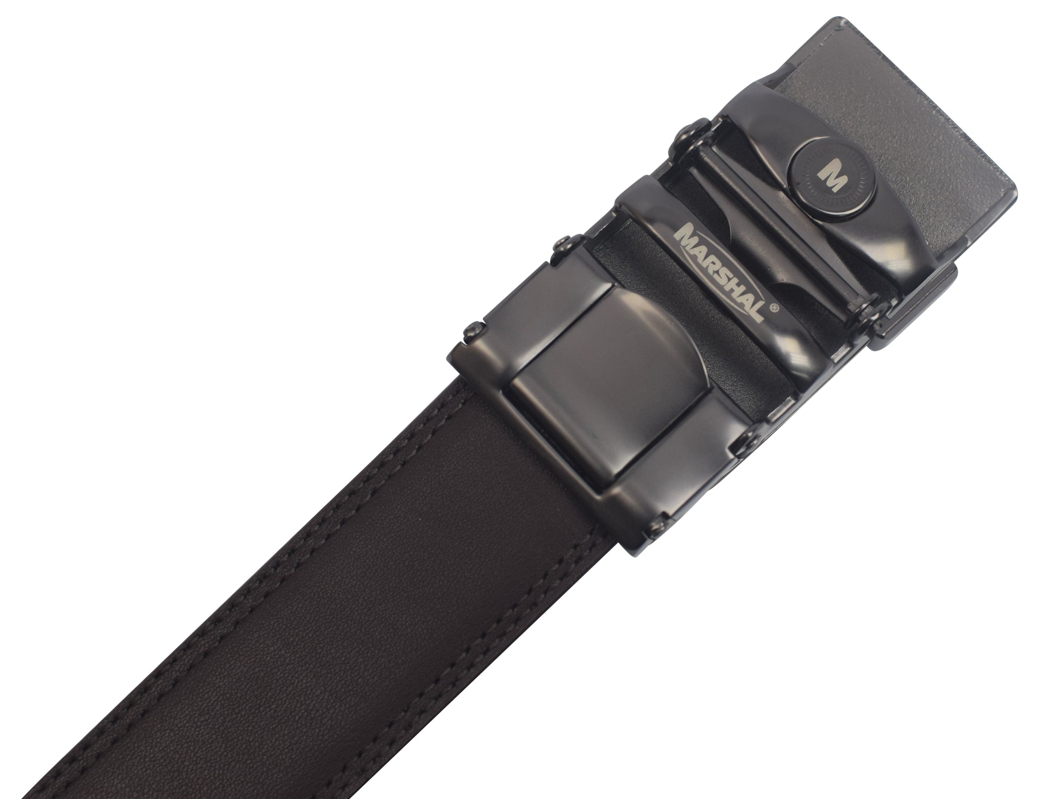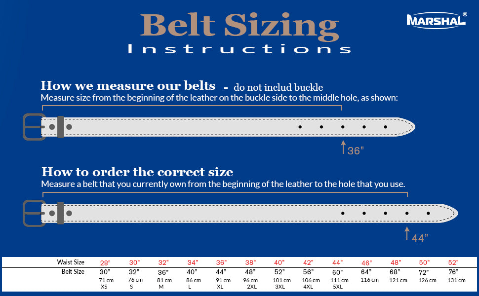 NO MORE HOLES - Marshal's Fashion Ratchet Belt provides 32 unique adjustments for a superb comfortable fit. Easy removable buckle allows you to cut the belt to your ideal size to give a primmer and custom tailored appearance! Size up to 56" waist.