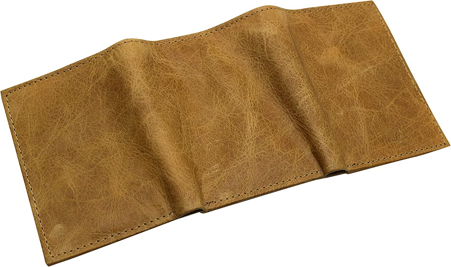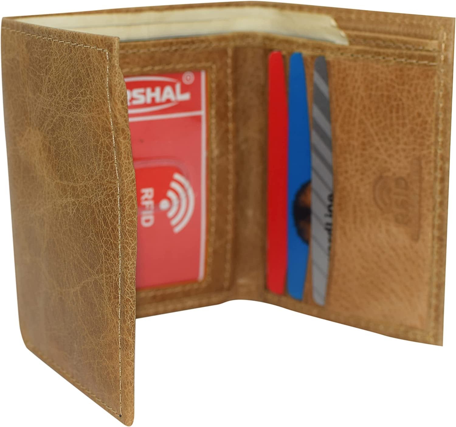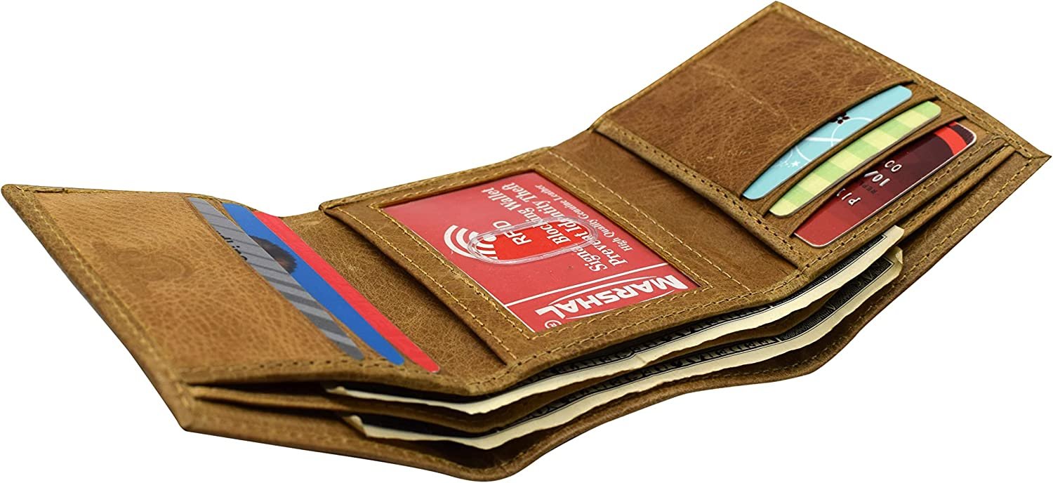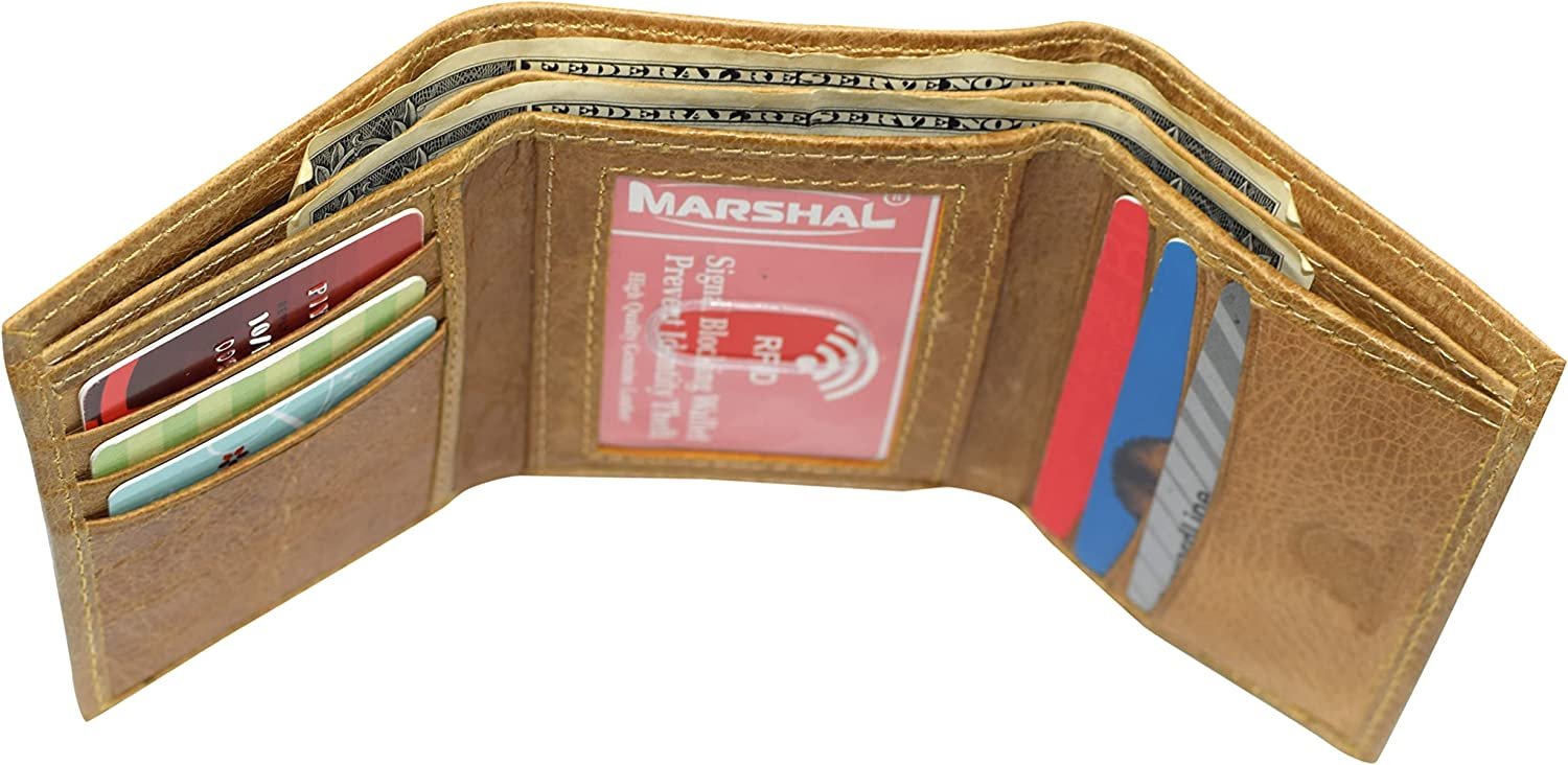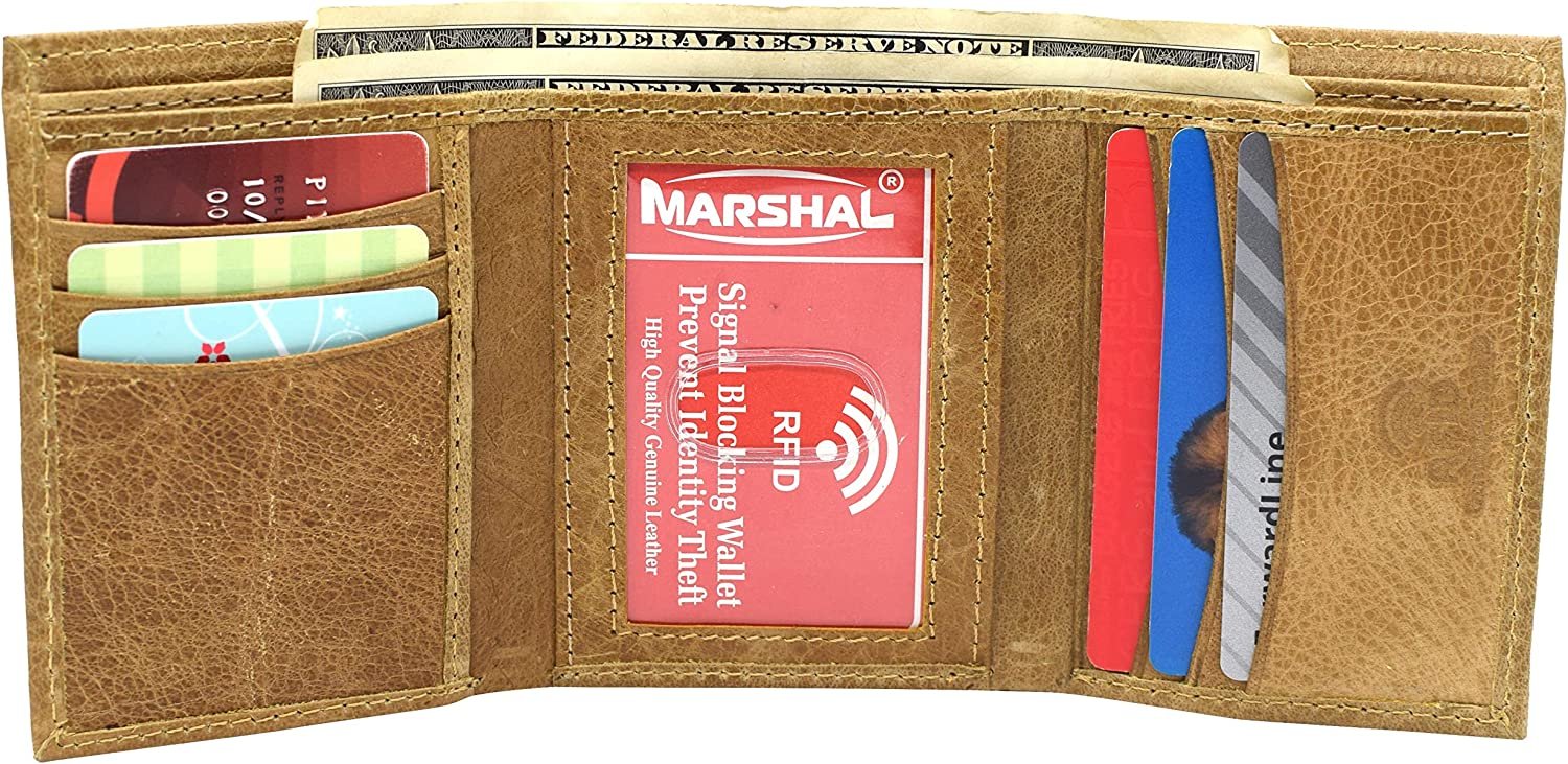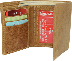 Marshal RFID Blocking Men's Genuine Leather Slim Trifold Credit Card ID Holder Tan Wallet for Men