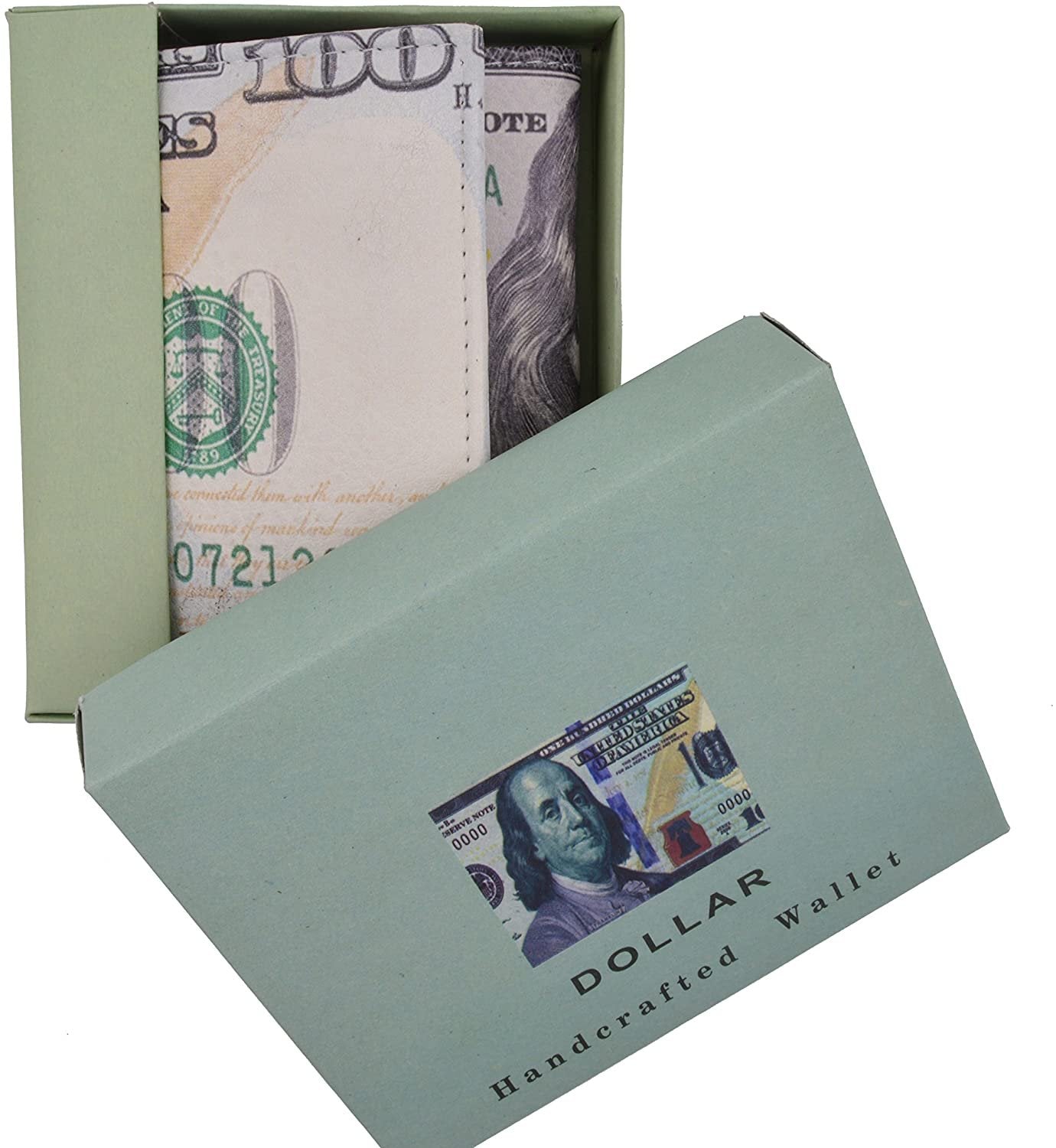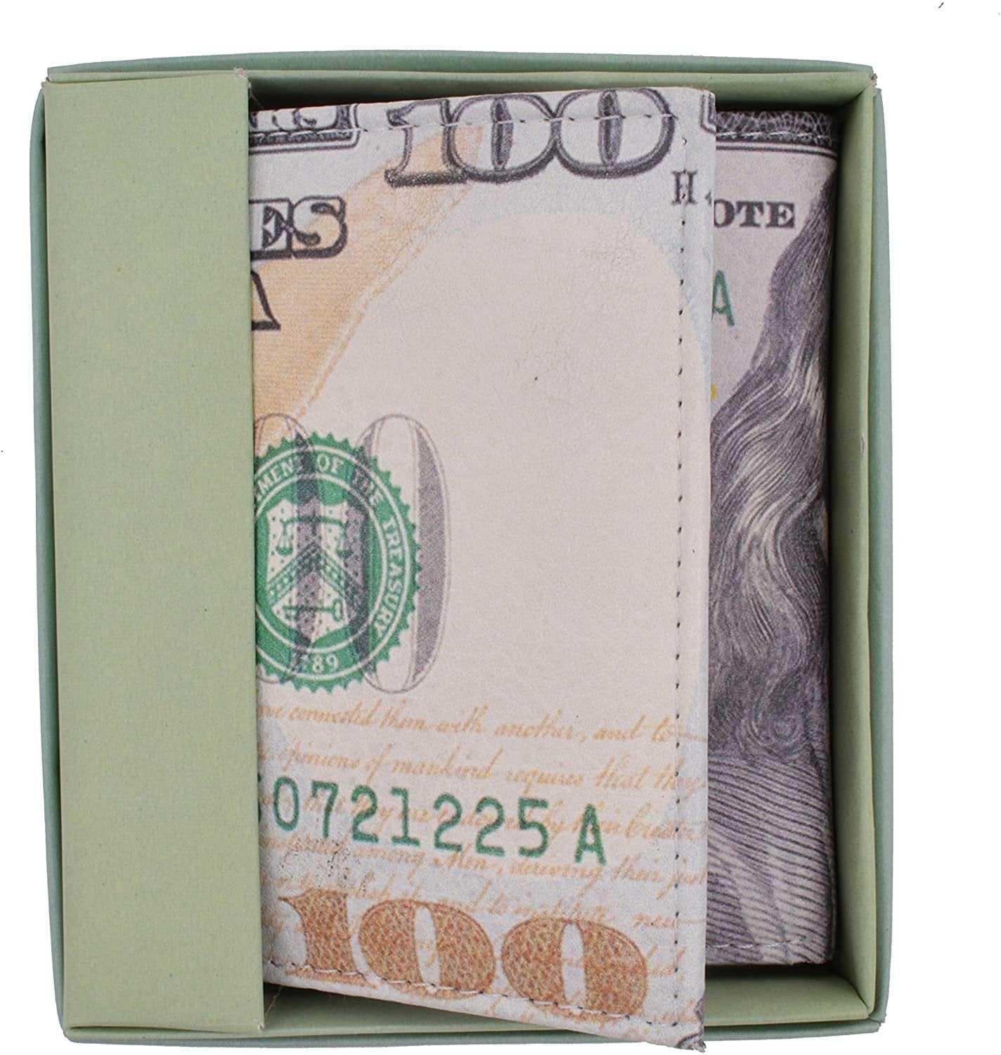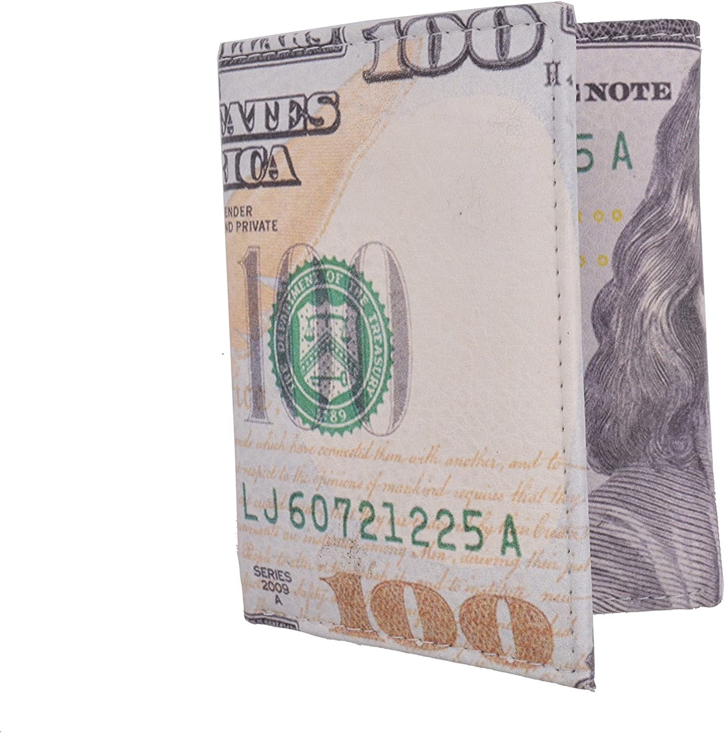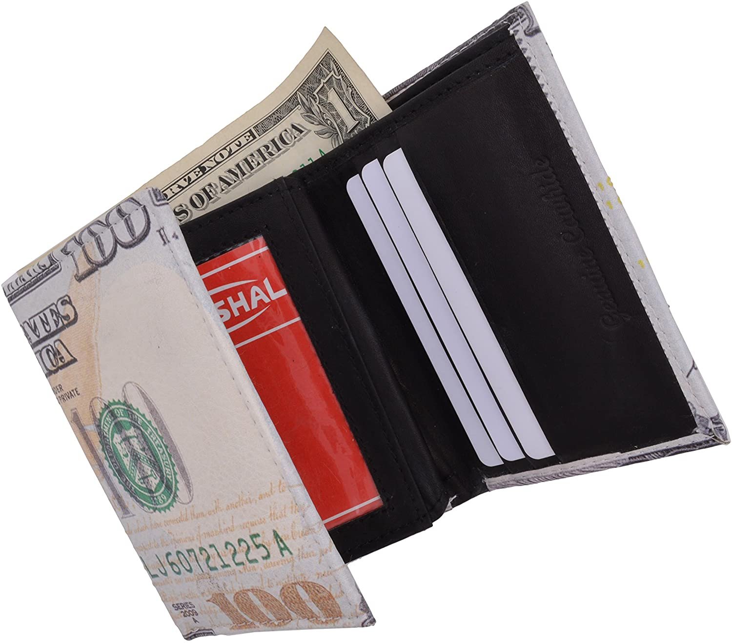 Men's 100 Dollar Bill Genuine Leather Trifold Wallet with Center Flap Credit Card ID Holder