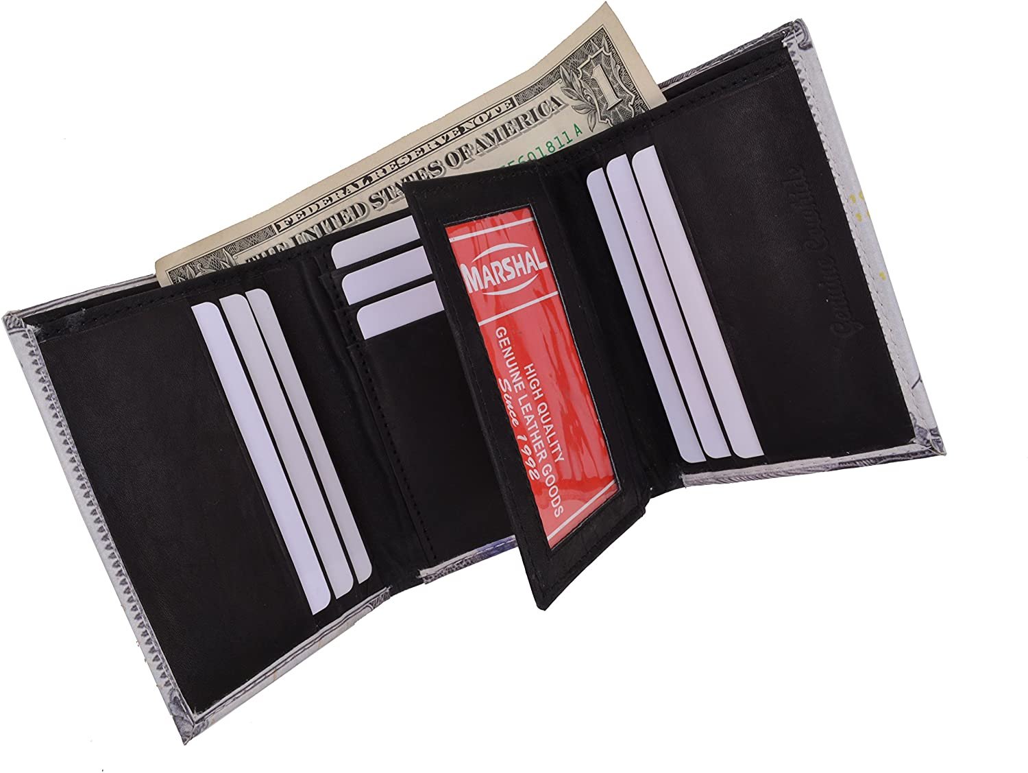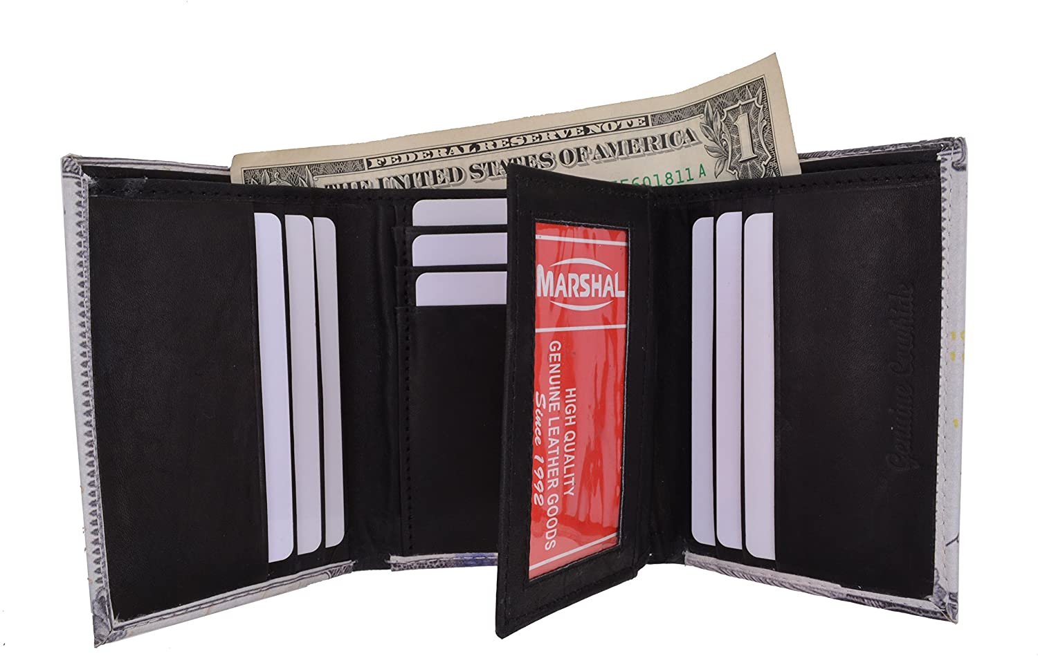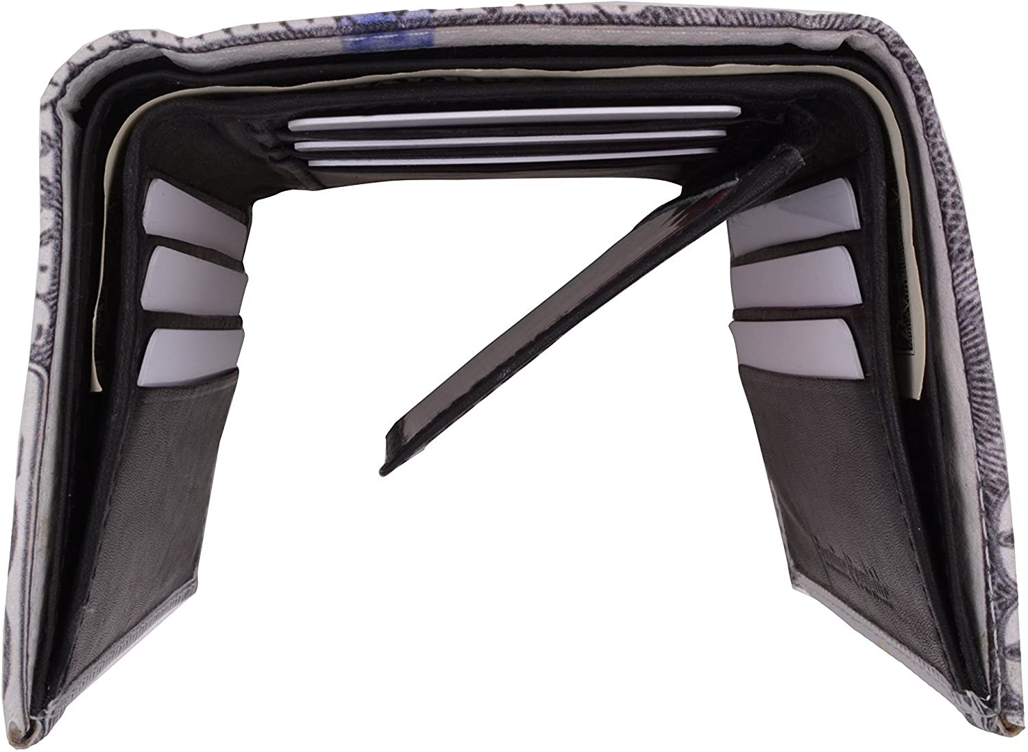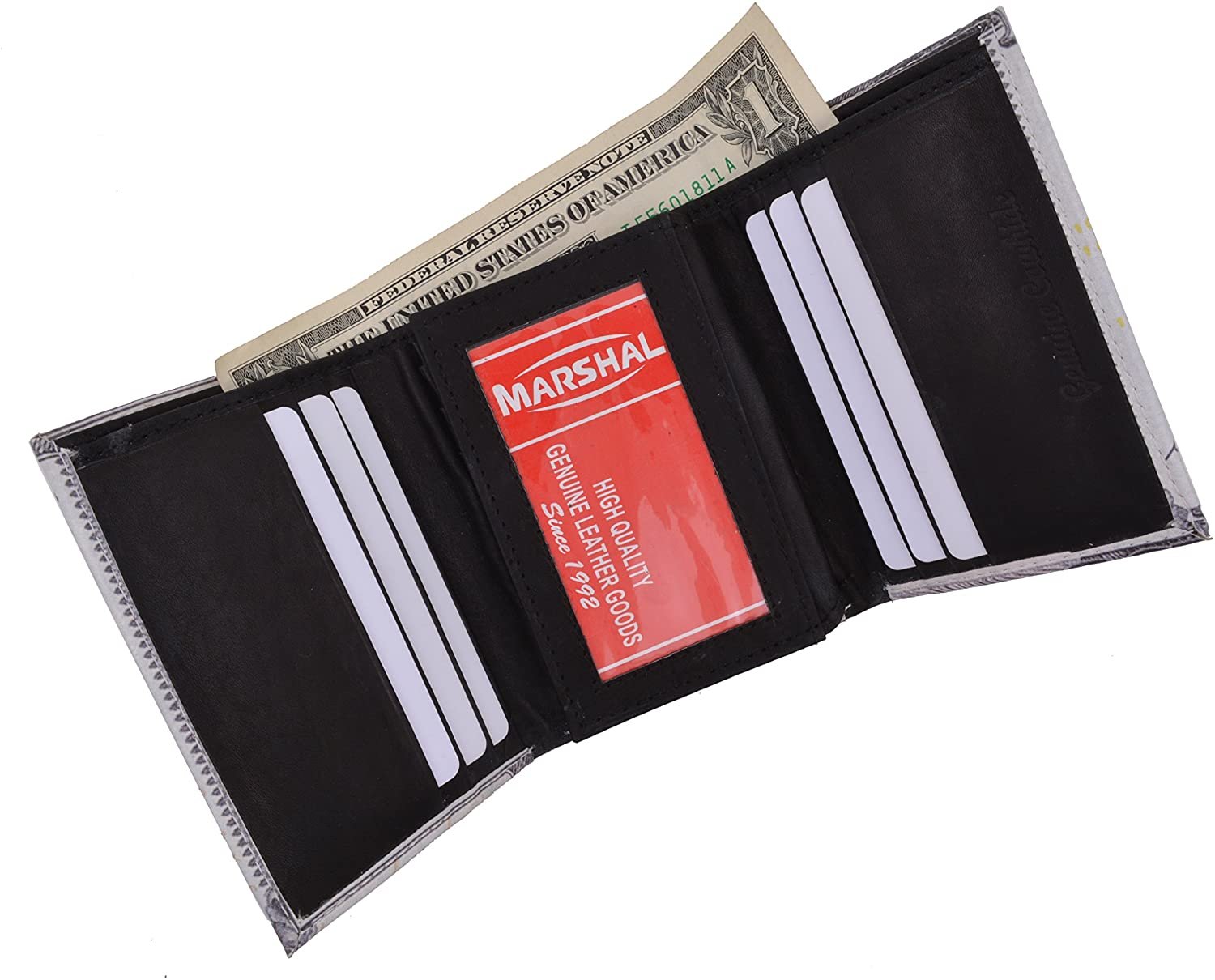 Men's 100 Dollar Bill Genuine Leather Trifold Wallet with Center Flap Credit Card ID Holder
