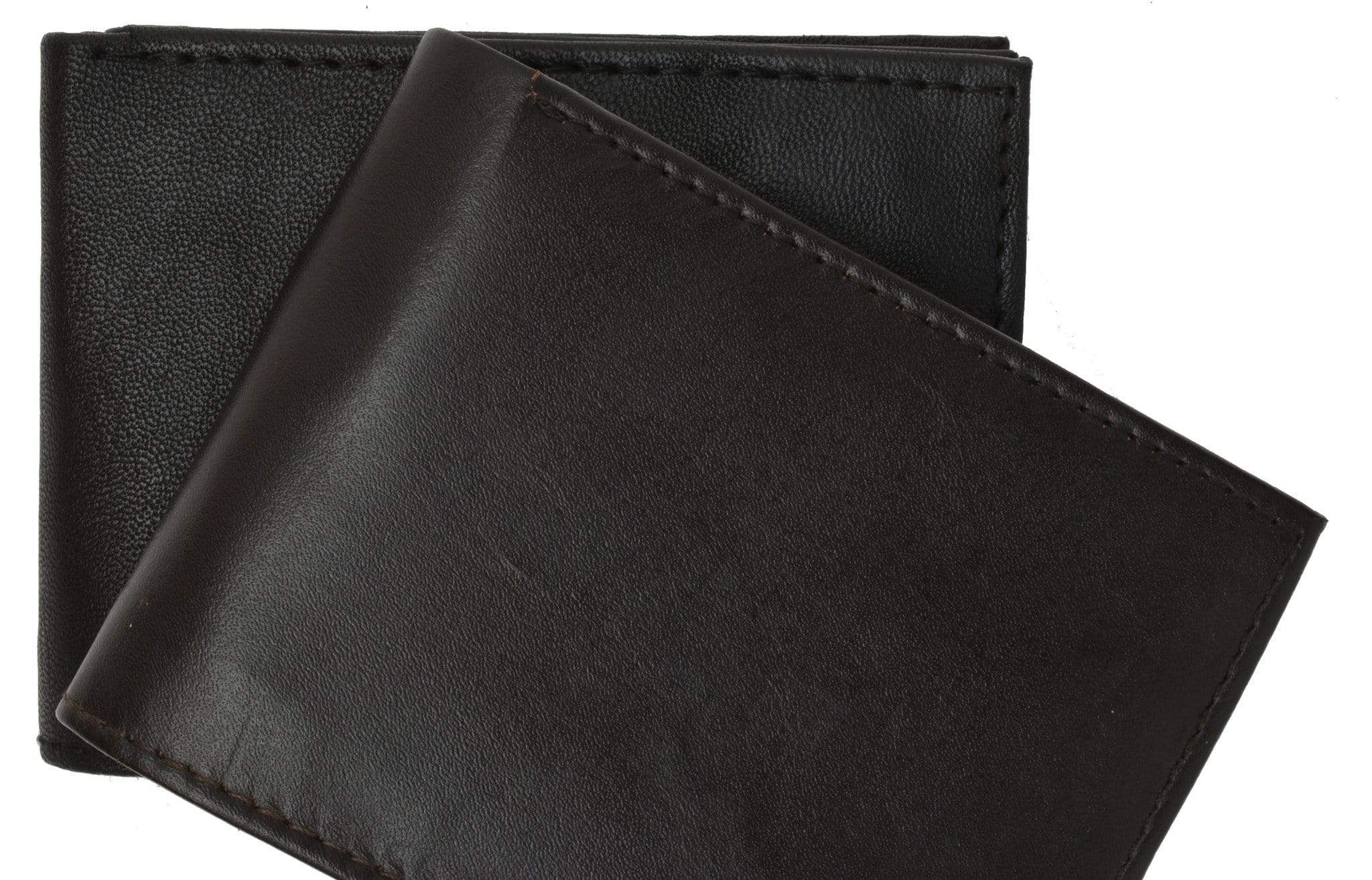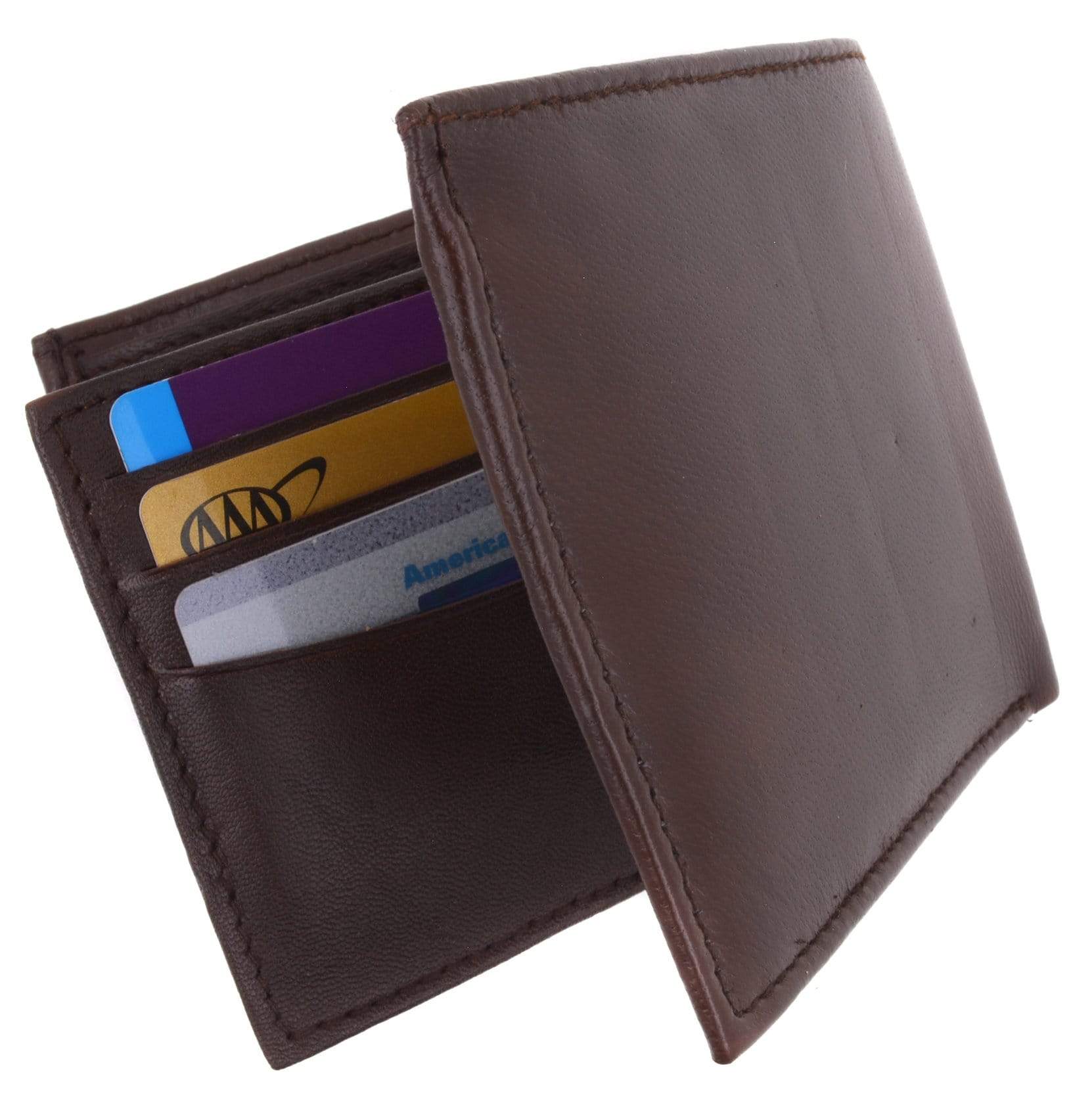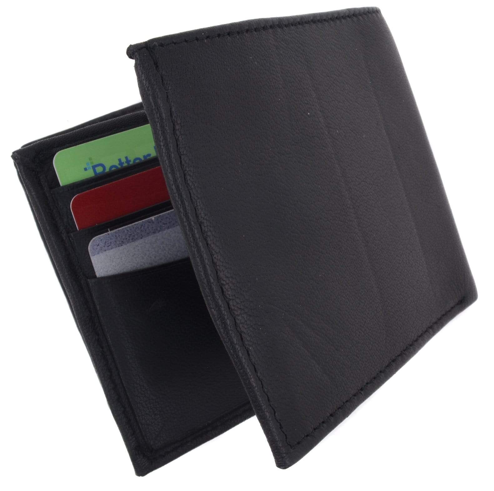 Men's wallet, crafted of fine lamb skin leather, features 6 credit cards slots, a Id...