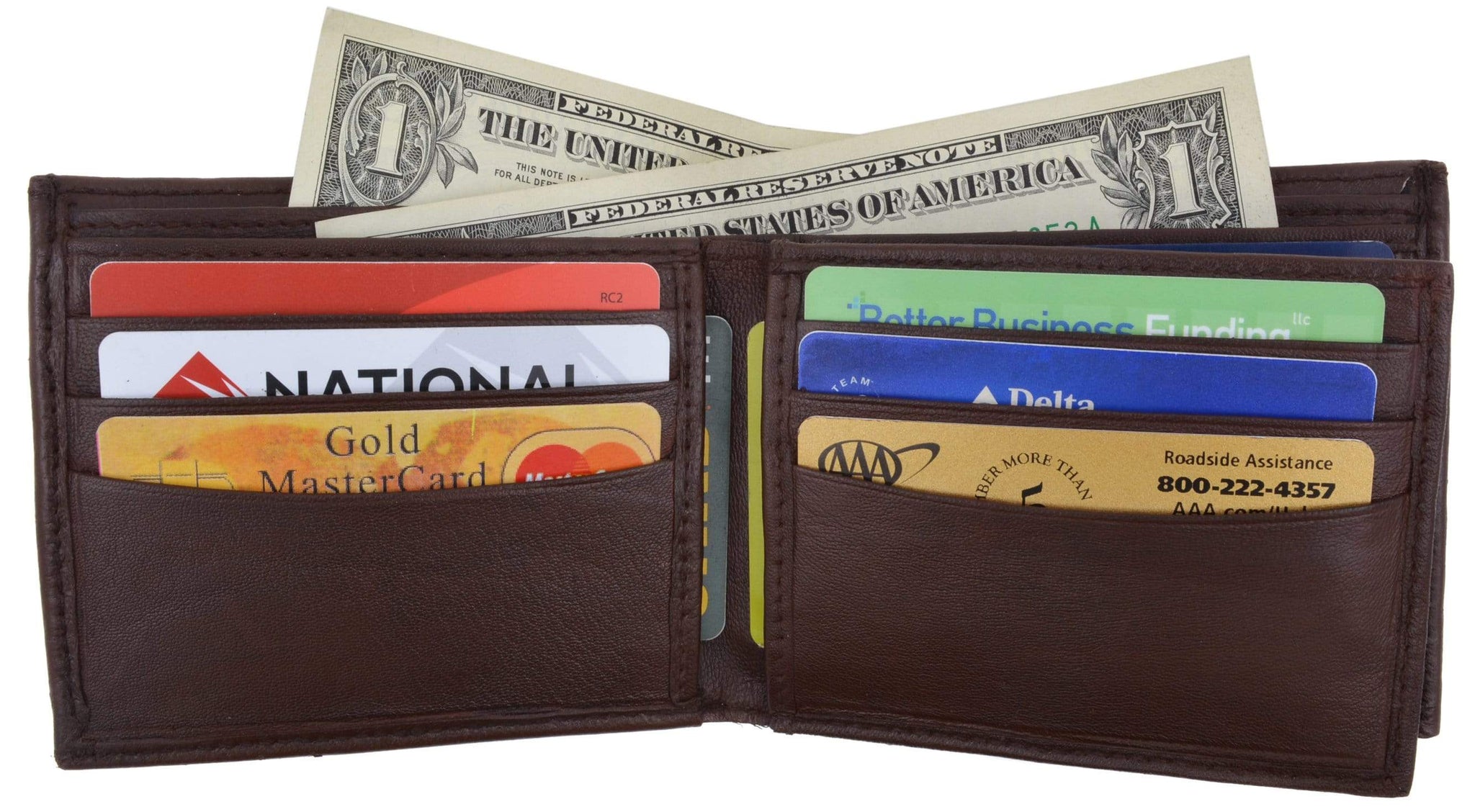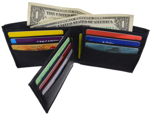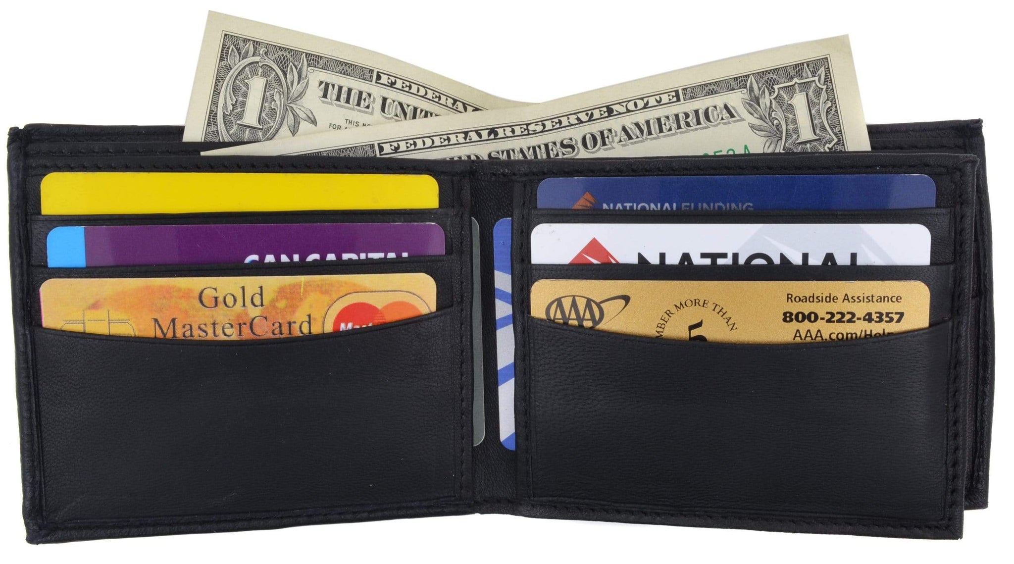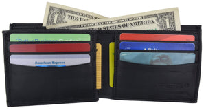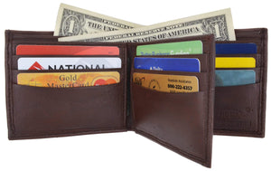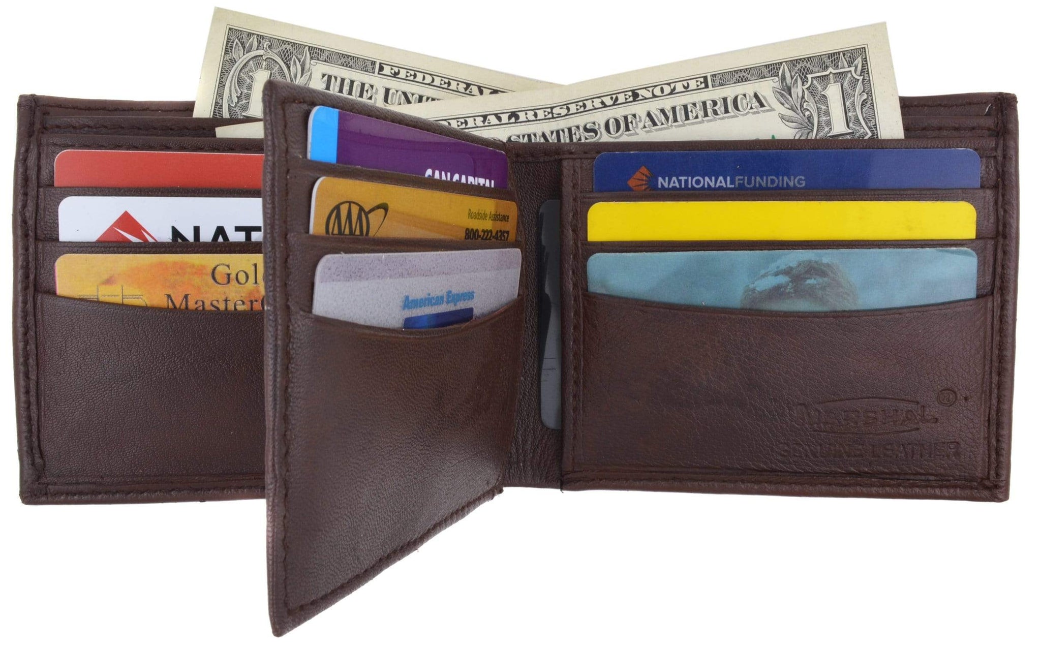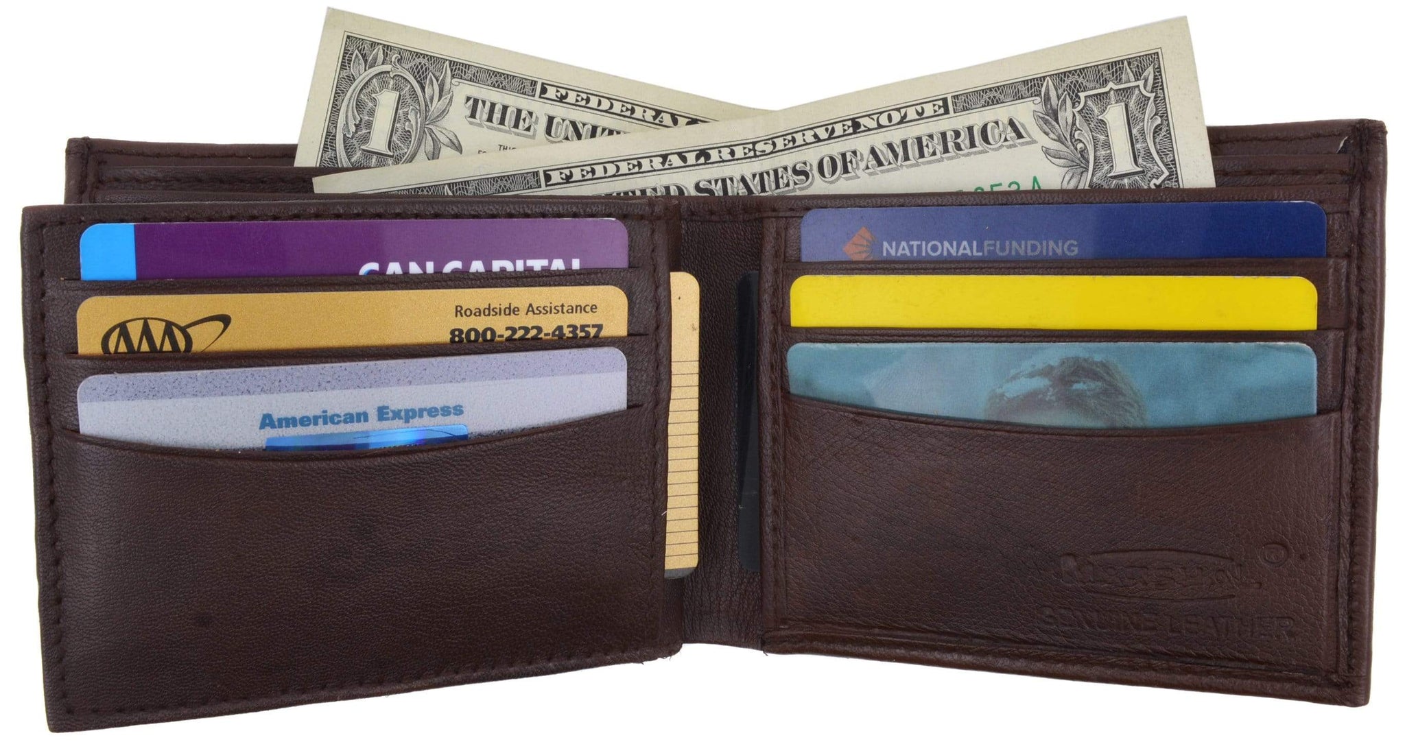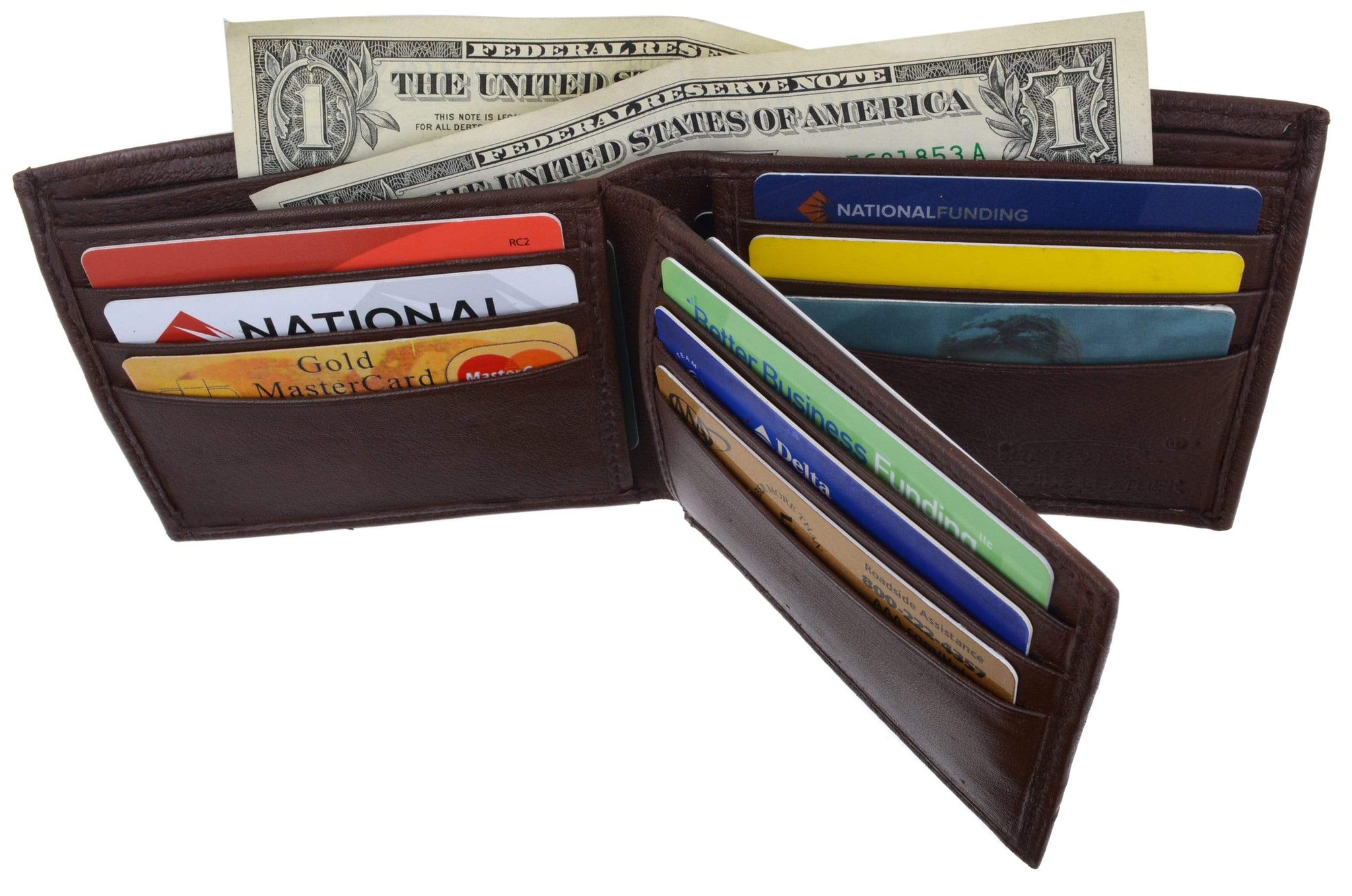 Men's genuine leather bi-fold wallet 9 credit card slots, currency compartment with a divider and a...