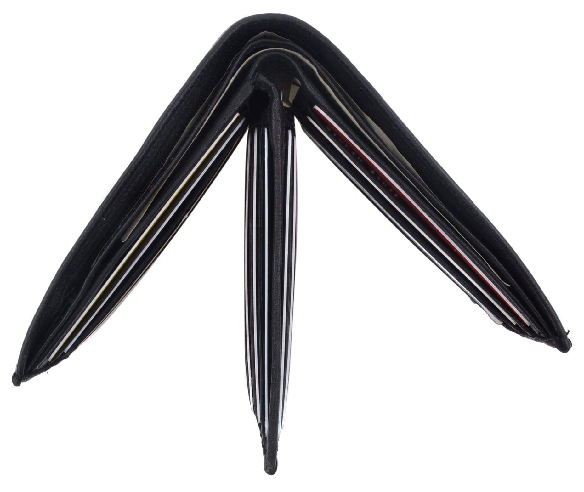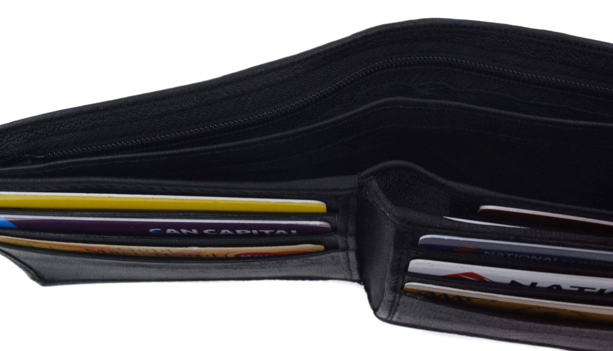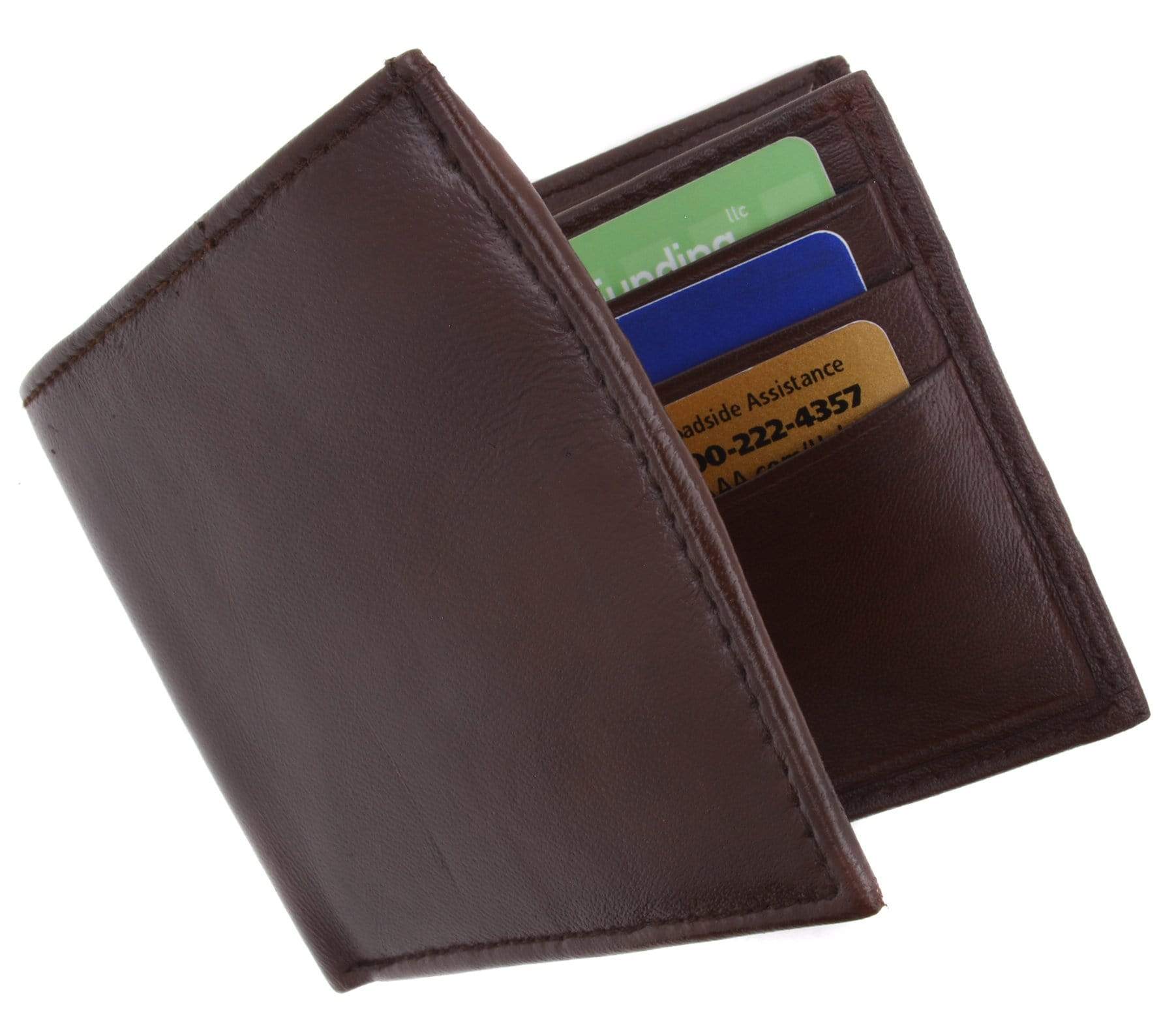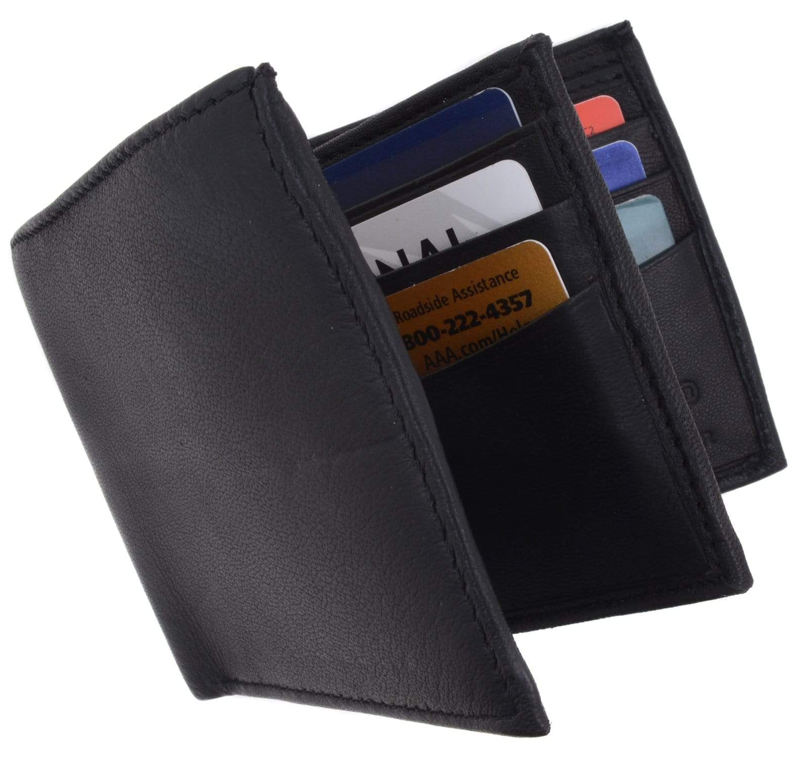 Material: Genuine Leather Tri-fold Credit Card Slots: 8+ I.D. Window: Yes Currency Pocket: Divider; Hideaway...