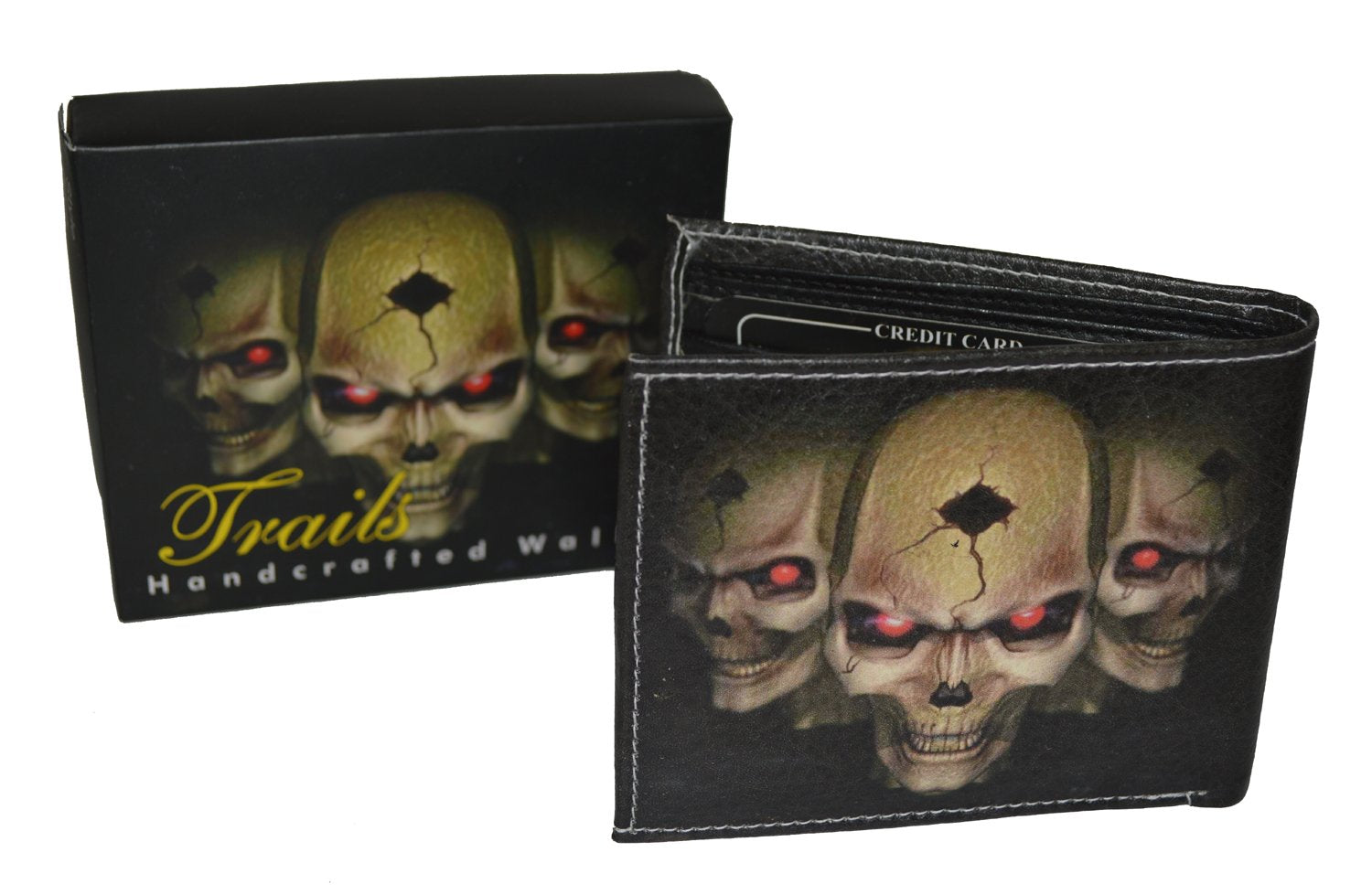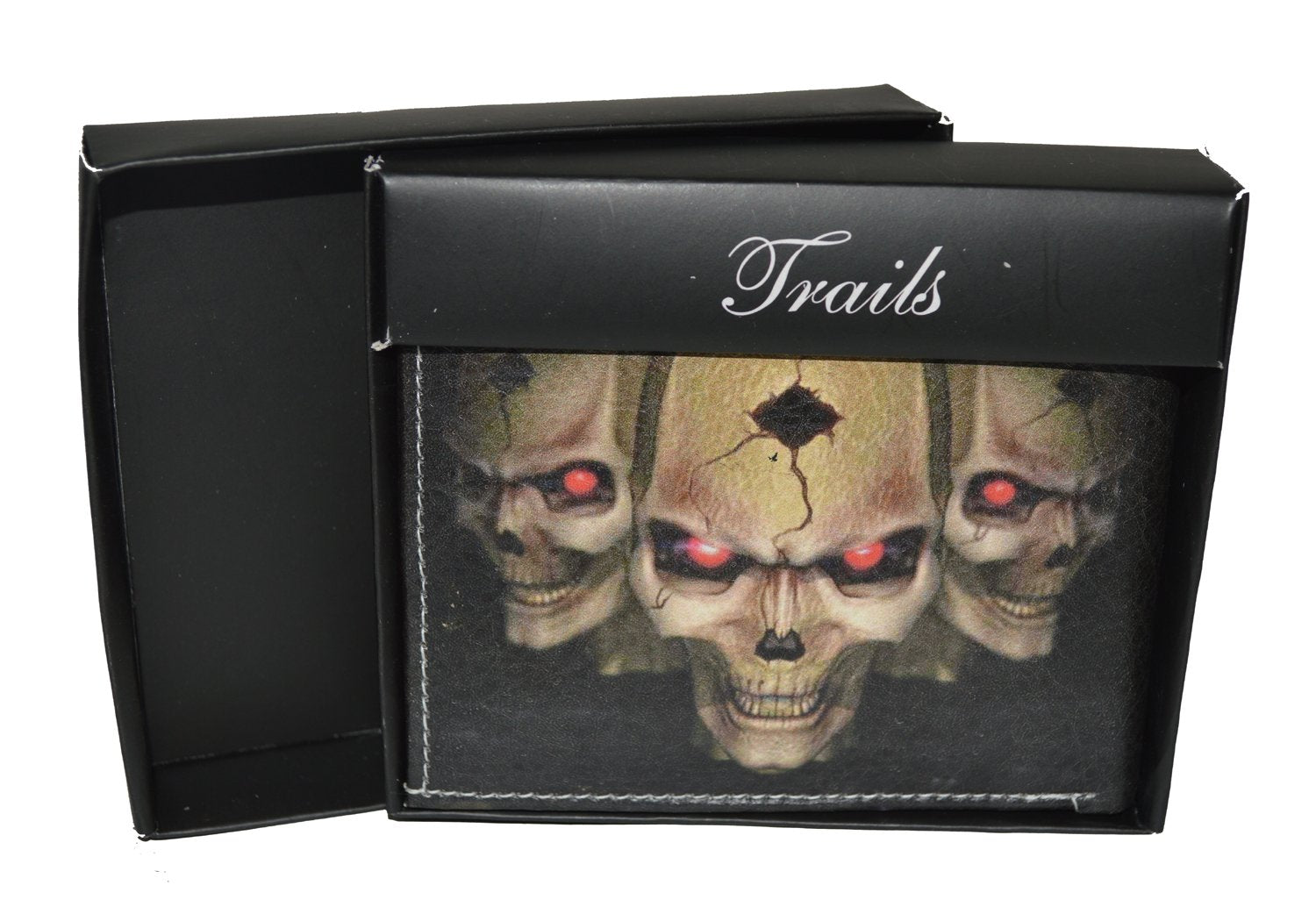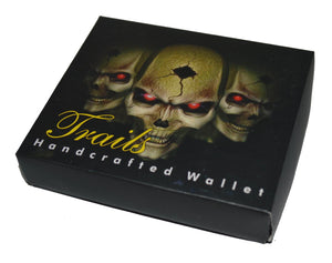 Mens Bifold Exotic Wallet Picture 3 Skulls with printed gift box
