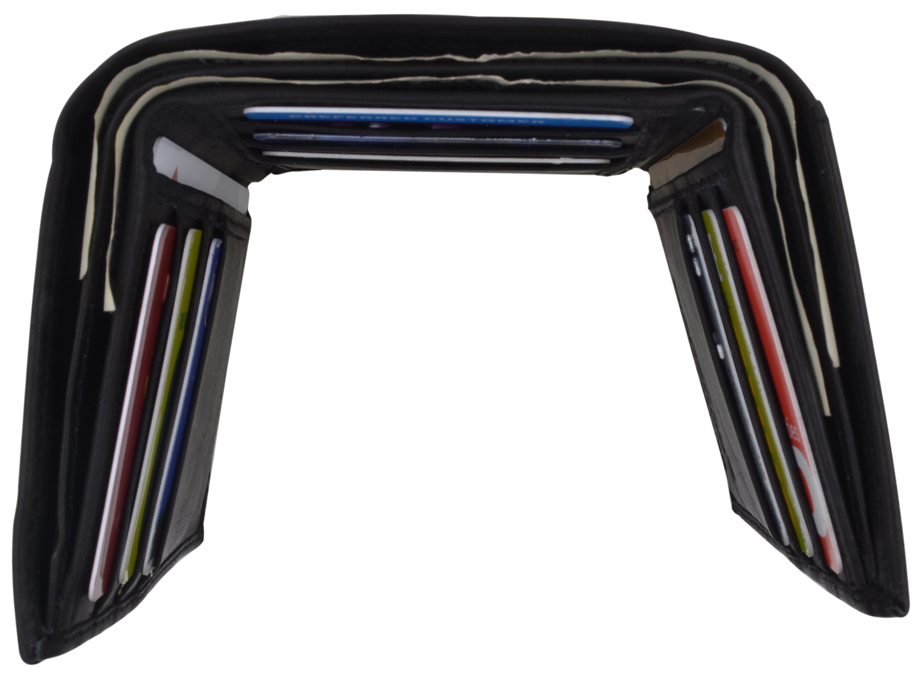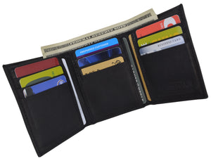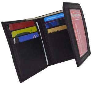 Material: Genuine Leather Tri-fold Credit Card Slots: 8+ I.D. Window: Yes Currency Pocket: Divider; Hideaway...