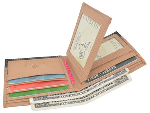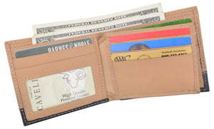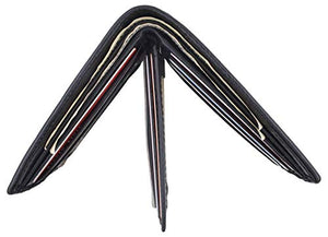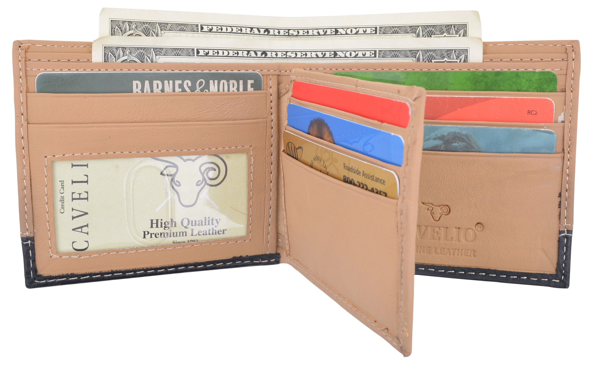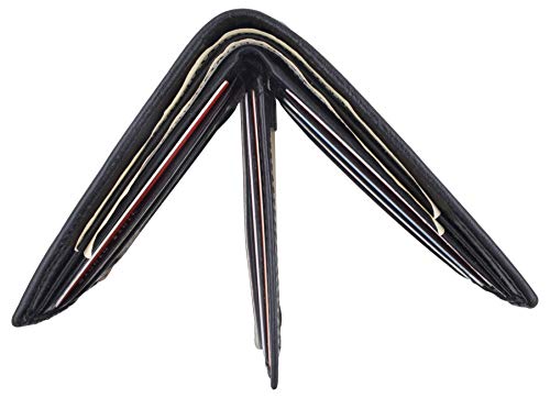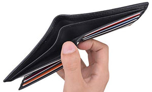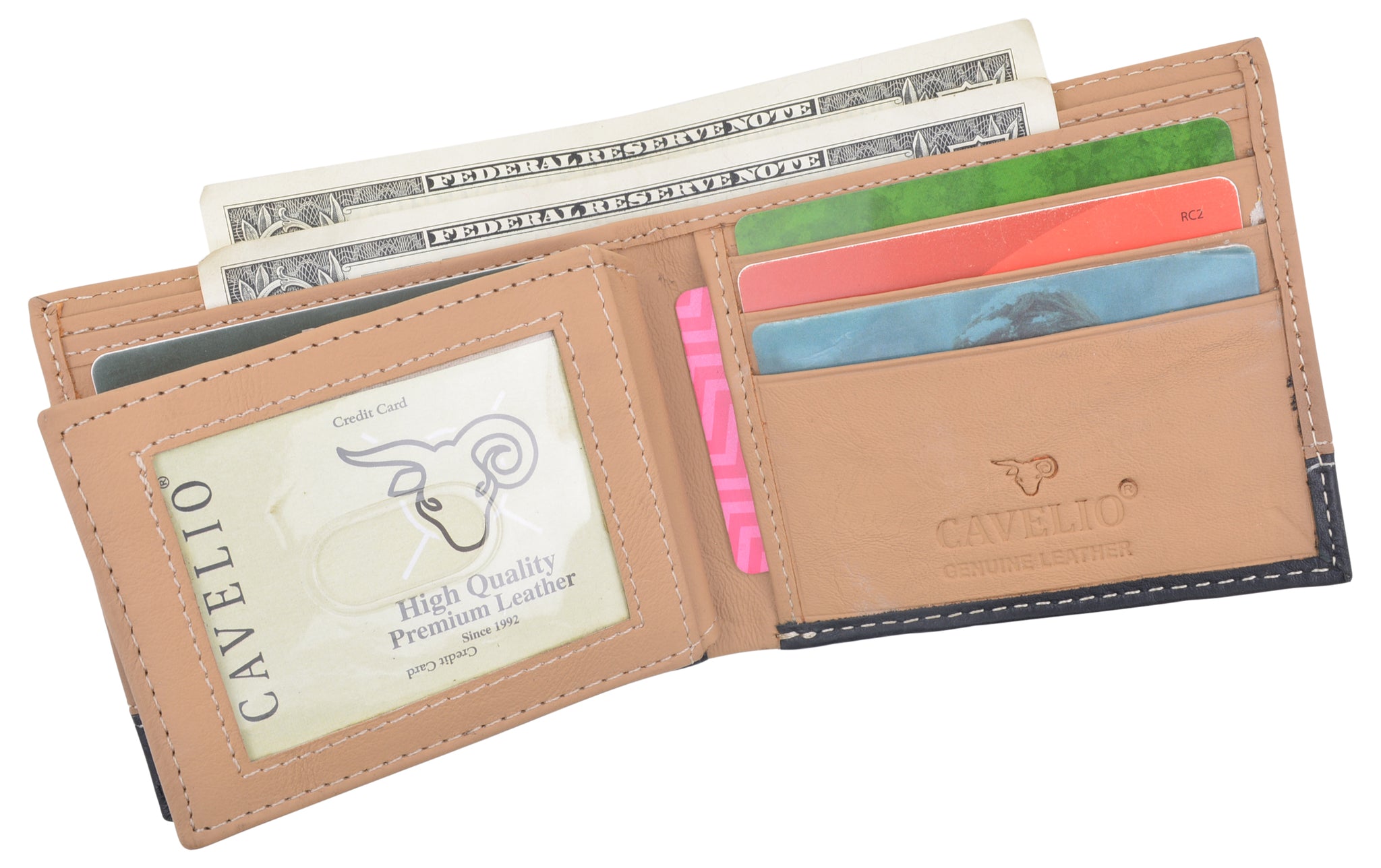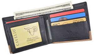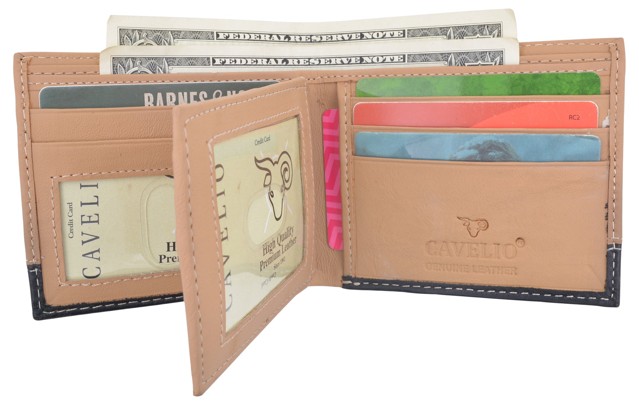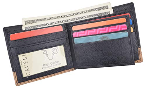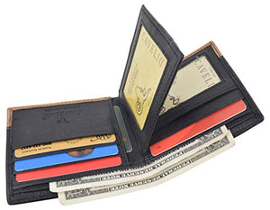Men's genuine leather bi-fold wallet 9 credit card slots, currency compartment with a divider and a...