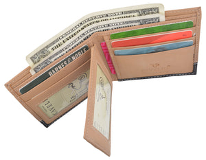Men's wallet, crafted of fine lamb skin leather, features 6 credit cards slots, a Id...