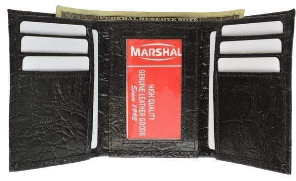 Material: Genuine Leather Tri-fold Credit Card Slots: 8+ I.D. Window: Yes Currency Pocket: Divider; Hideaway...