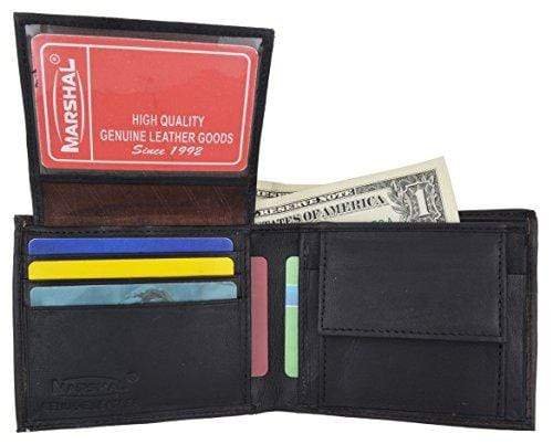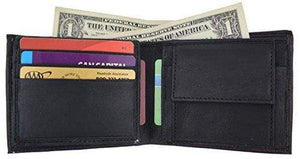 Men's Genuine Leather Bifold ID Credit Card Holder Wallet W/Coin Pouch