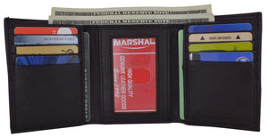 Material: Genuine Leather Tri-fold Credit Card Slots: 8+ I.D. Window: Yes Currency Pocket: Divider; Hideaway...