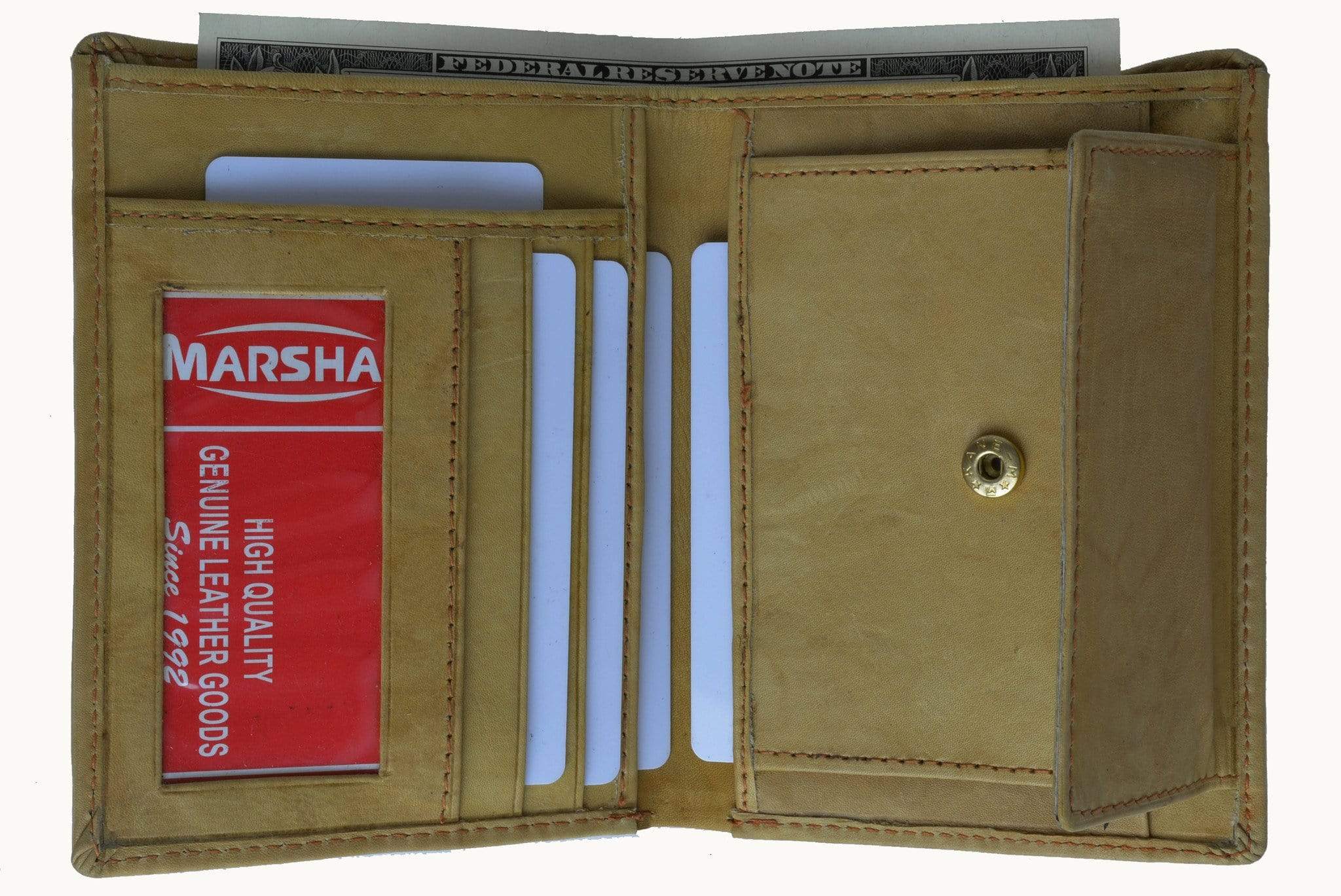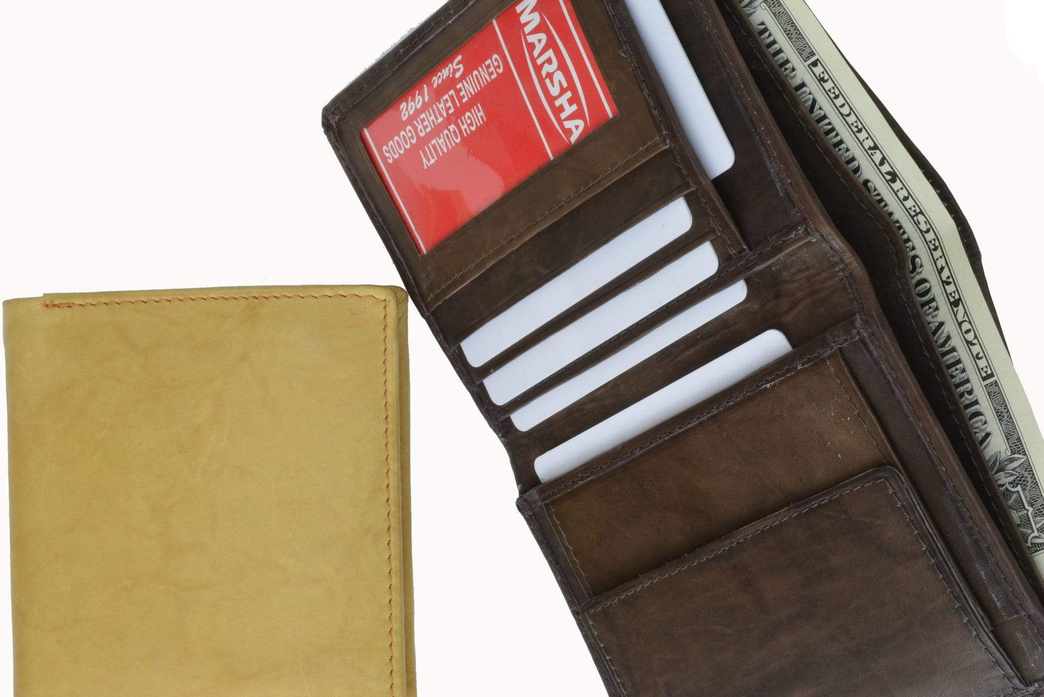 Material: Genuine Leather Tri-fold Credit Card Slots: 8+ I.D. Window: Yes Currency Pocket: Divider; Hideaway...