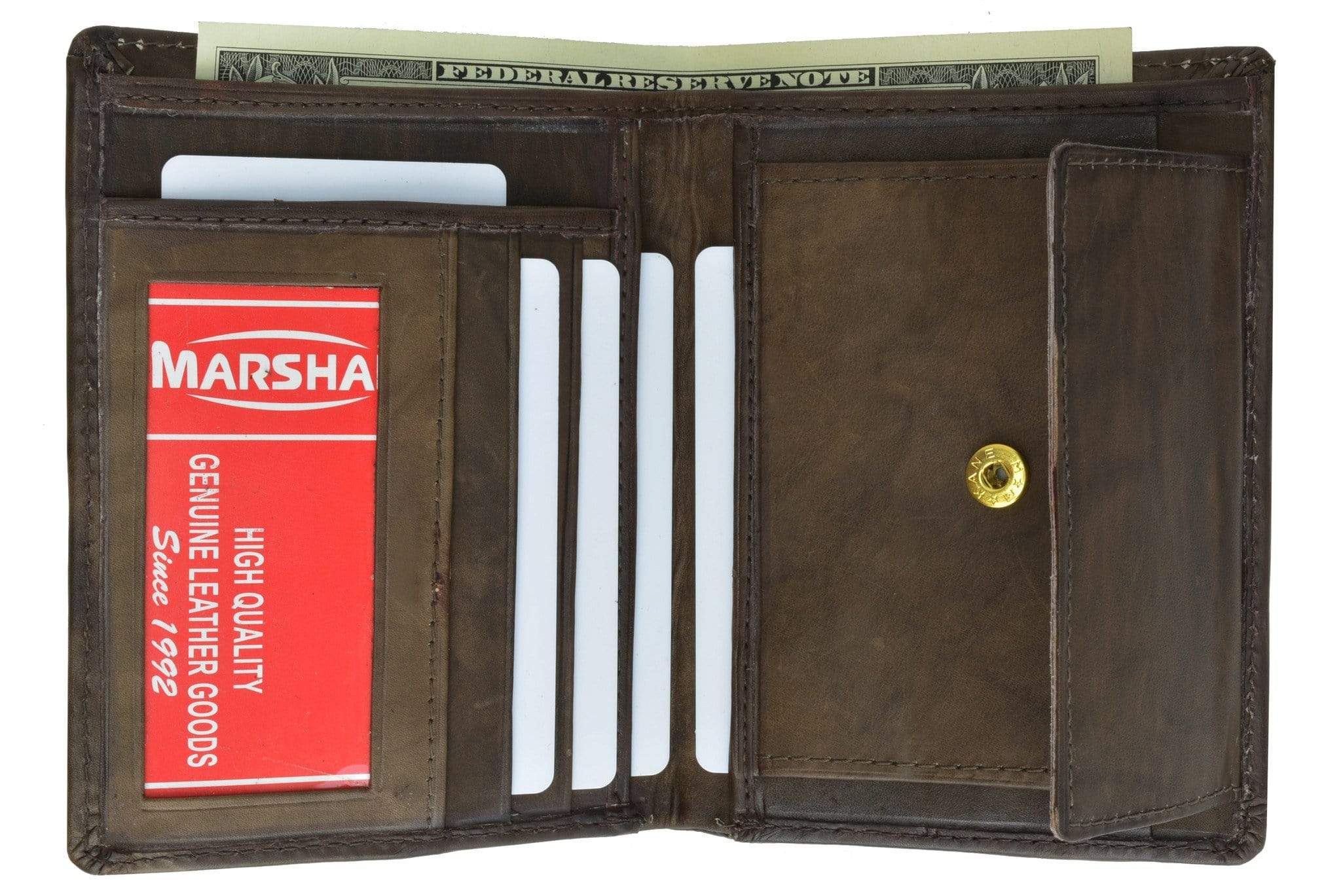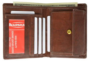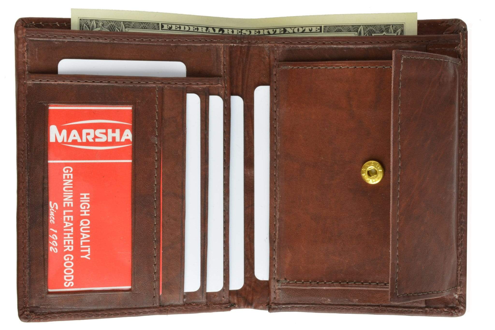 Men's genuine leather bi-fold wallet 9 credit card slots, currency compartment with a divider and a...