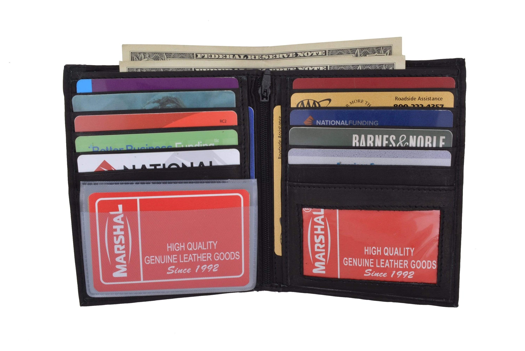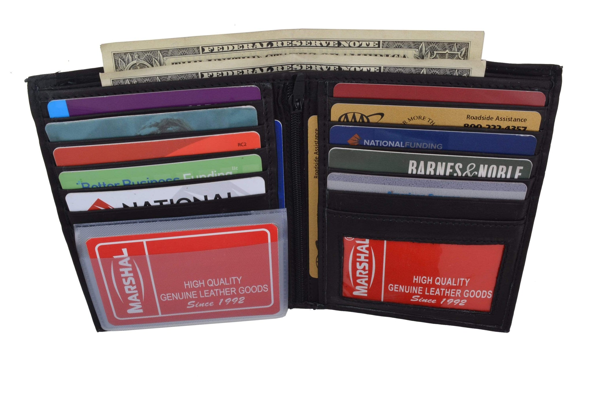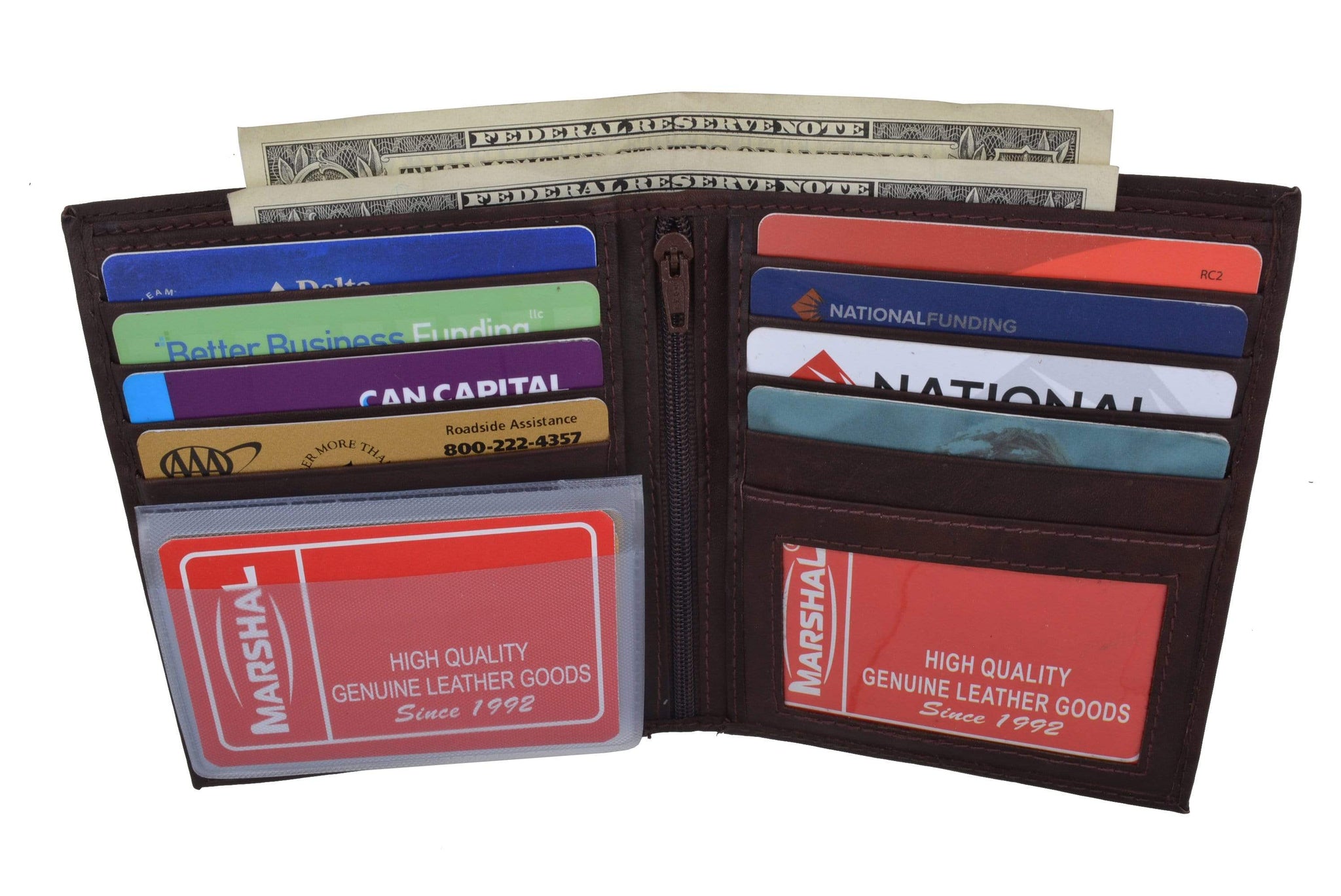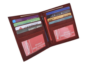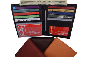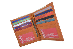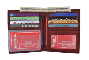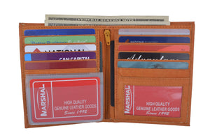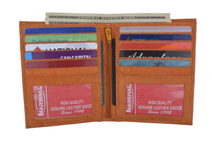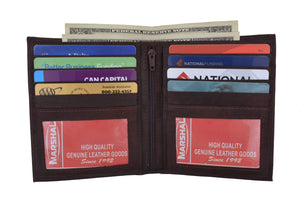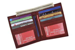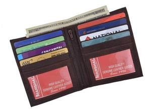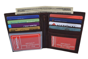 Men's genuine leather bi-fold wallet 9 credit card slots, currency compartment with a divider and a...