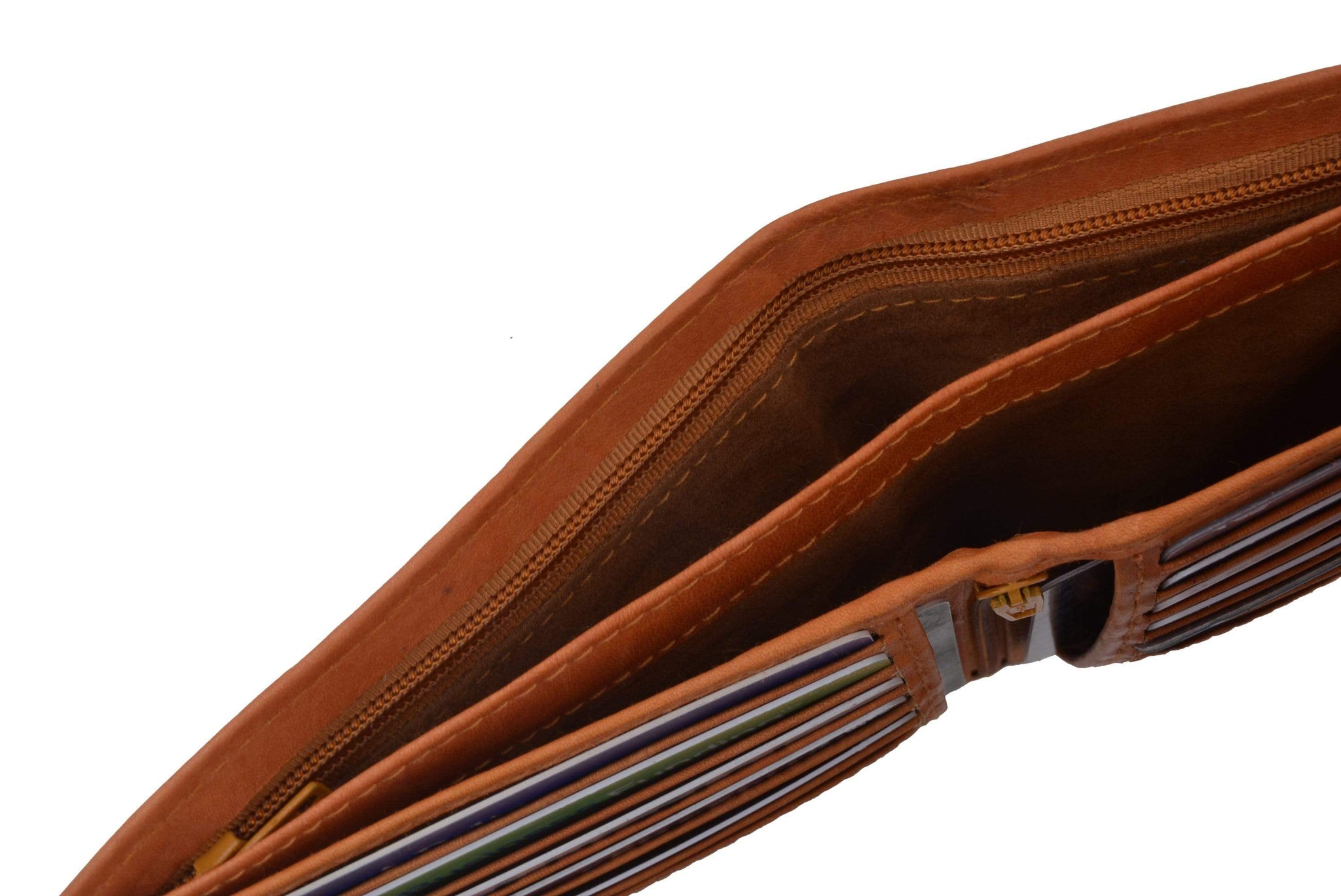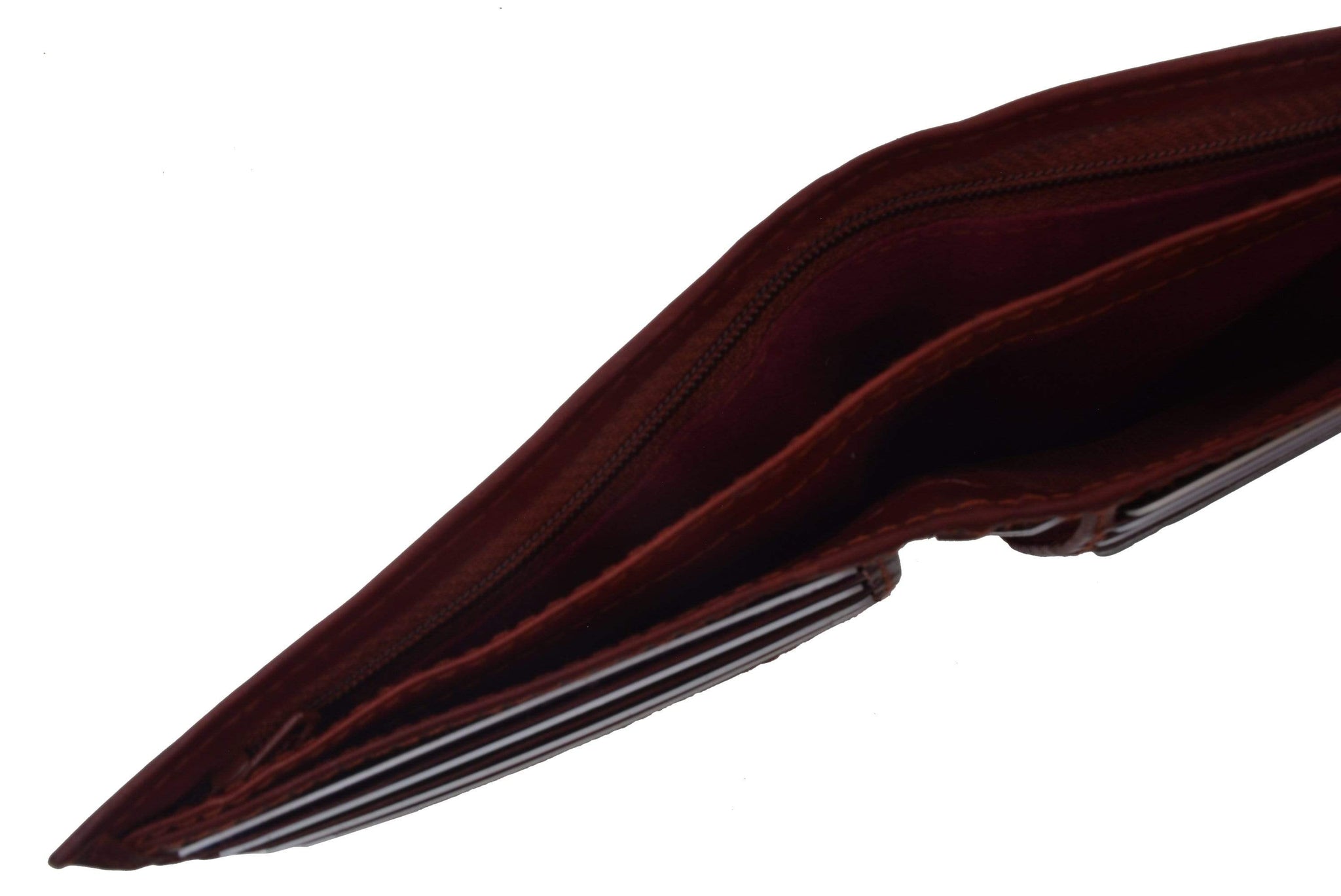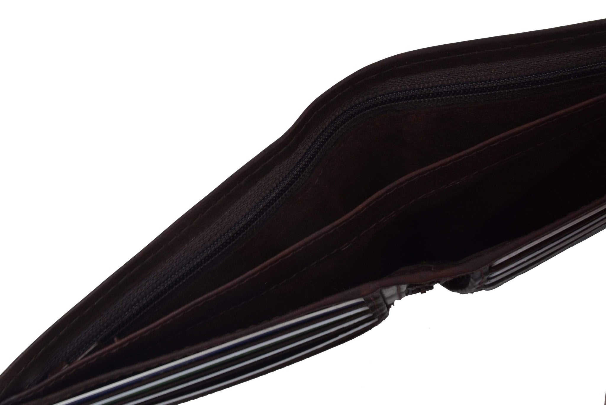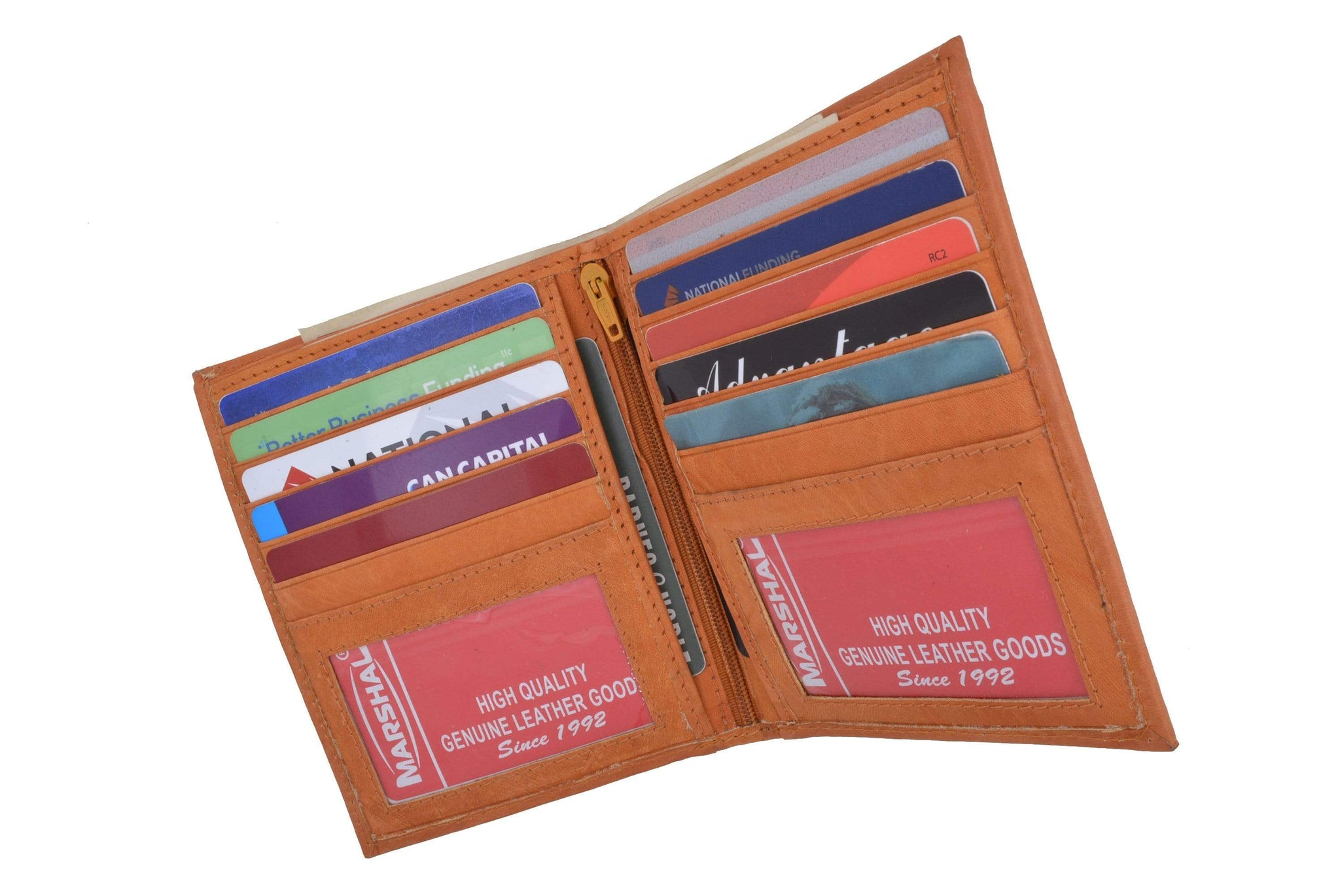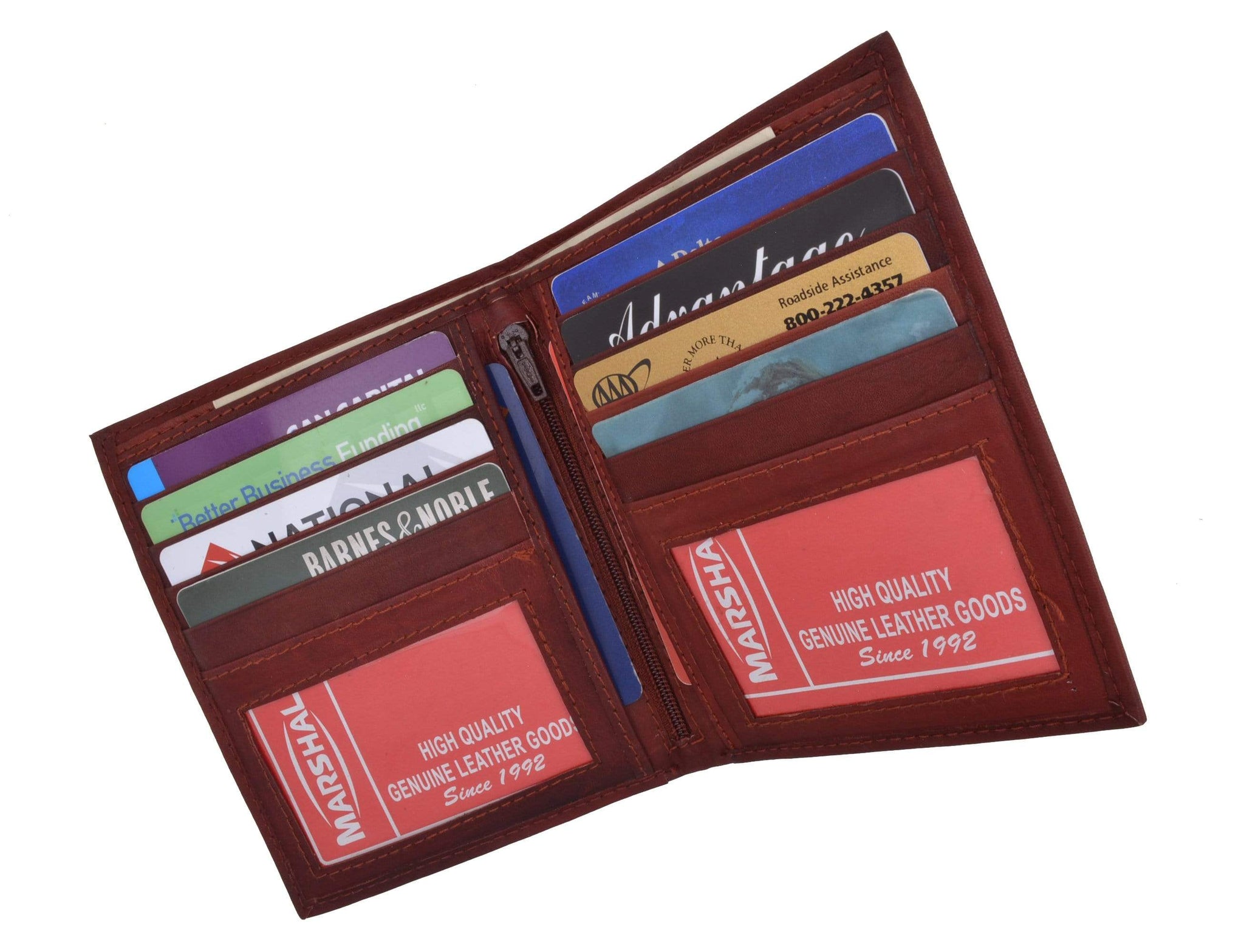 Material: Genuine Leather Tri-fold Credit Card Slots: 8+ I.D. Window: Yes Currency Pocket: Divider; Hideaway...