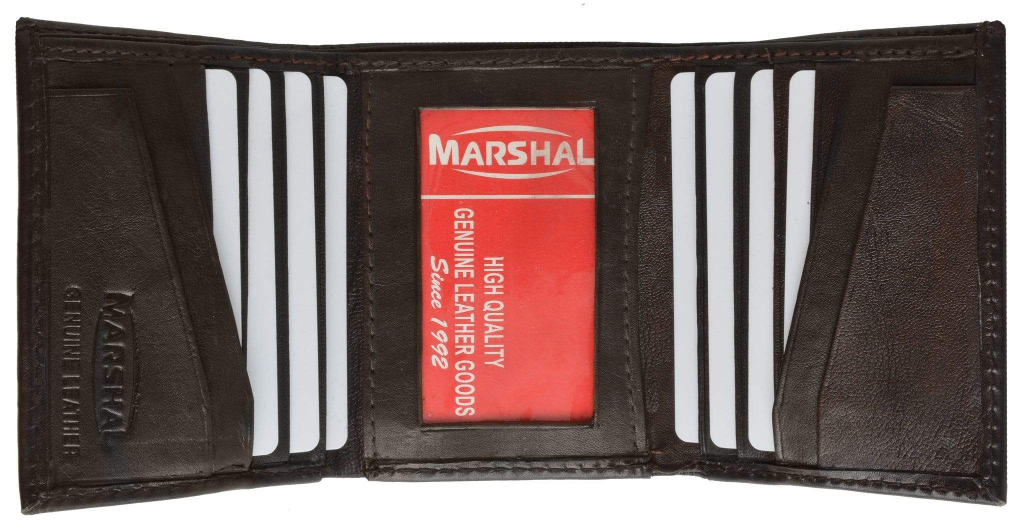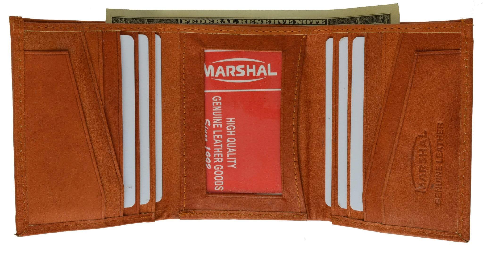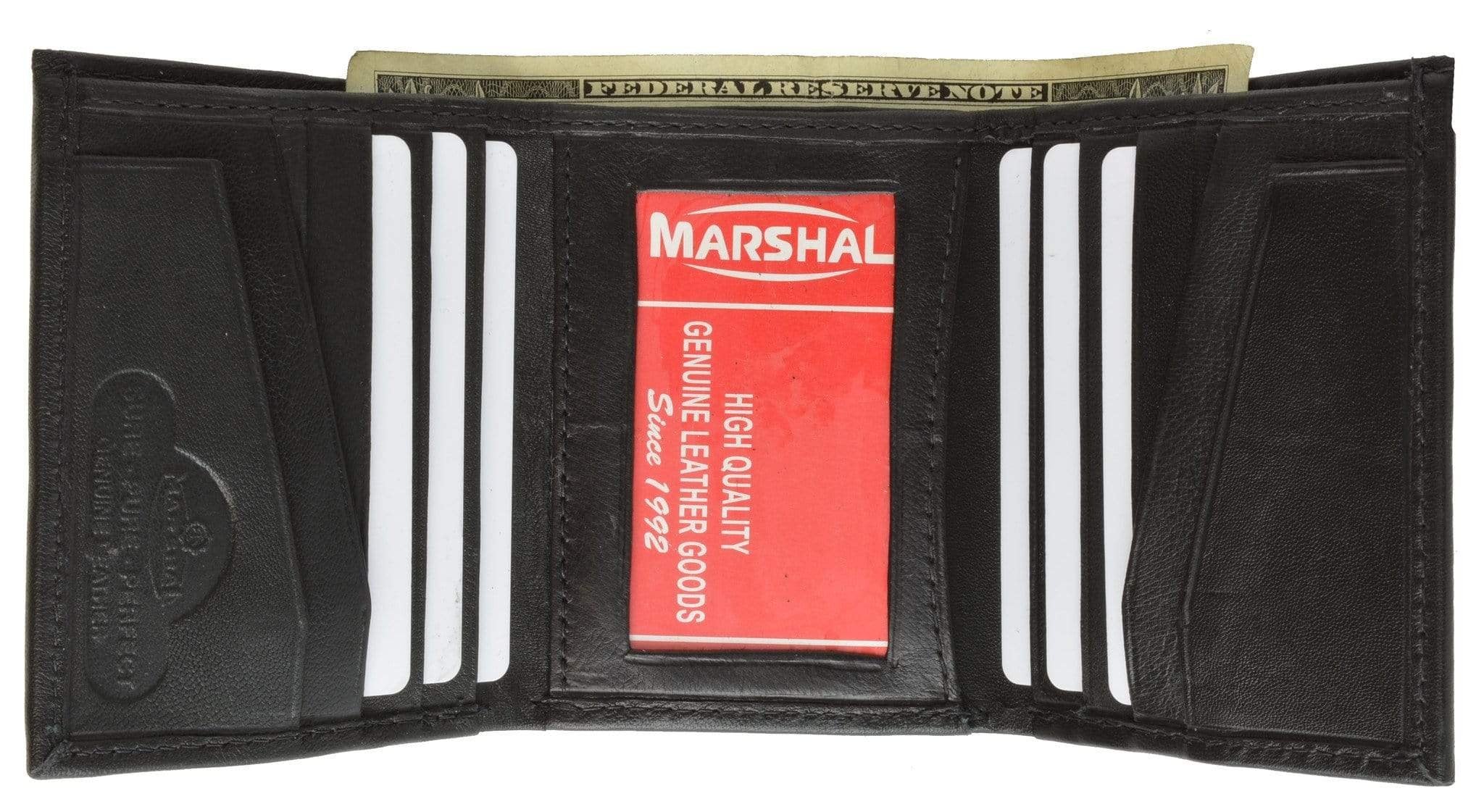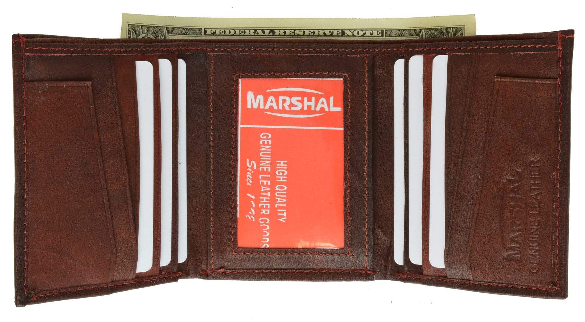 Material: Genuine Leather Tri-fold Credit Card Slots: 8+ I.D. Window: Yes Currency Pocket: Divider; Hideaway...