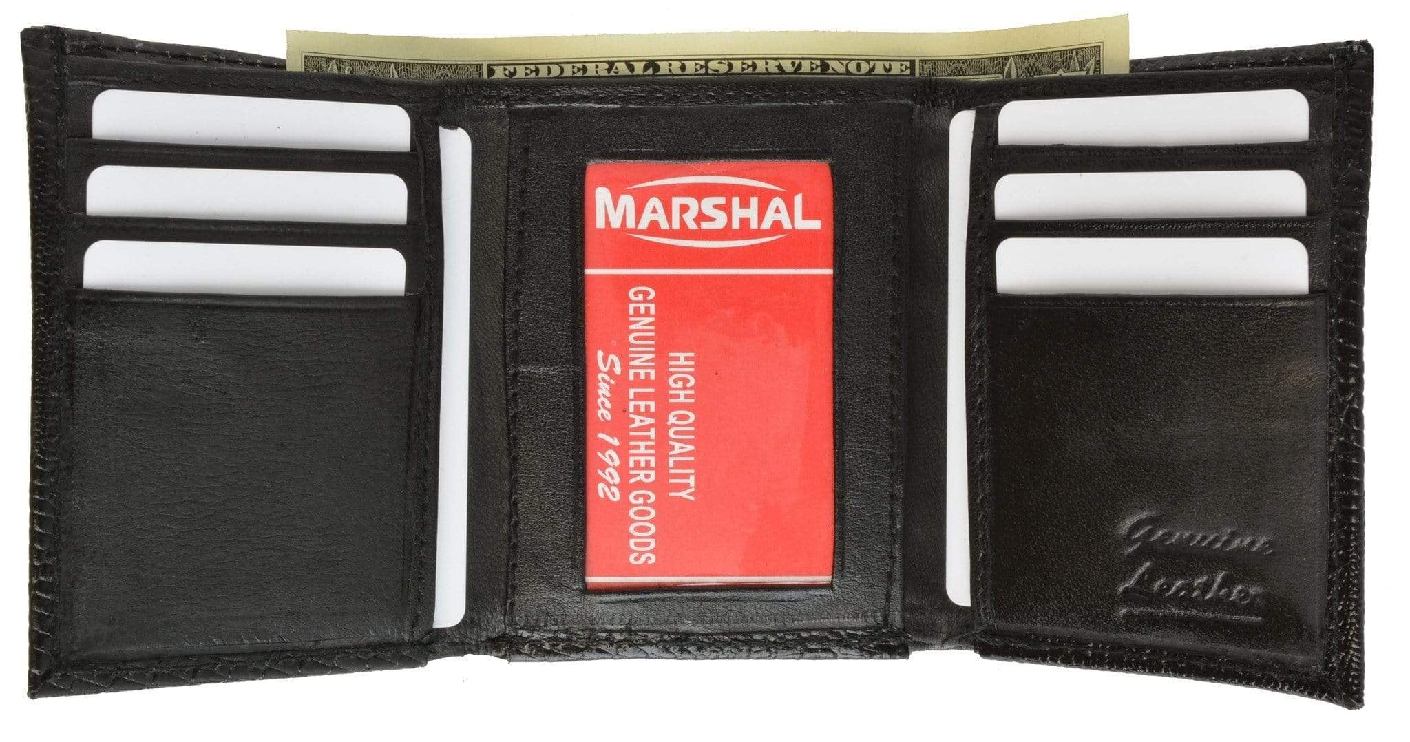 Material: Genuine Leather Tri-fold Credit Card Slots: 8+ I.D. Window: Yes Currency Pocket: Divider; Hideaway...