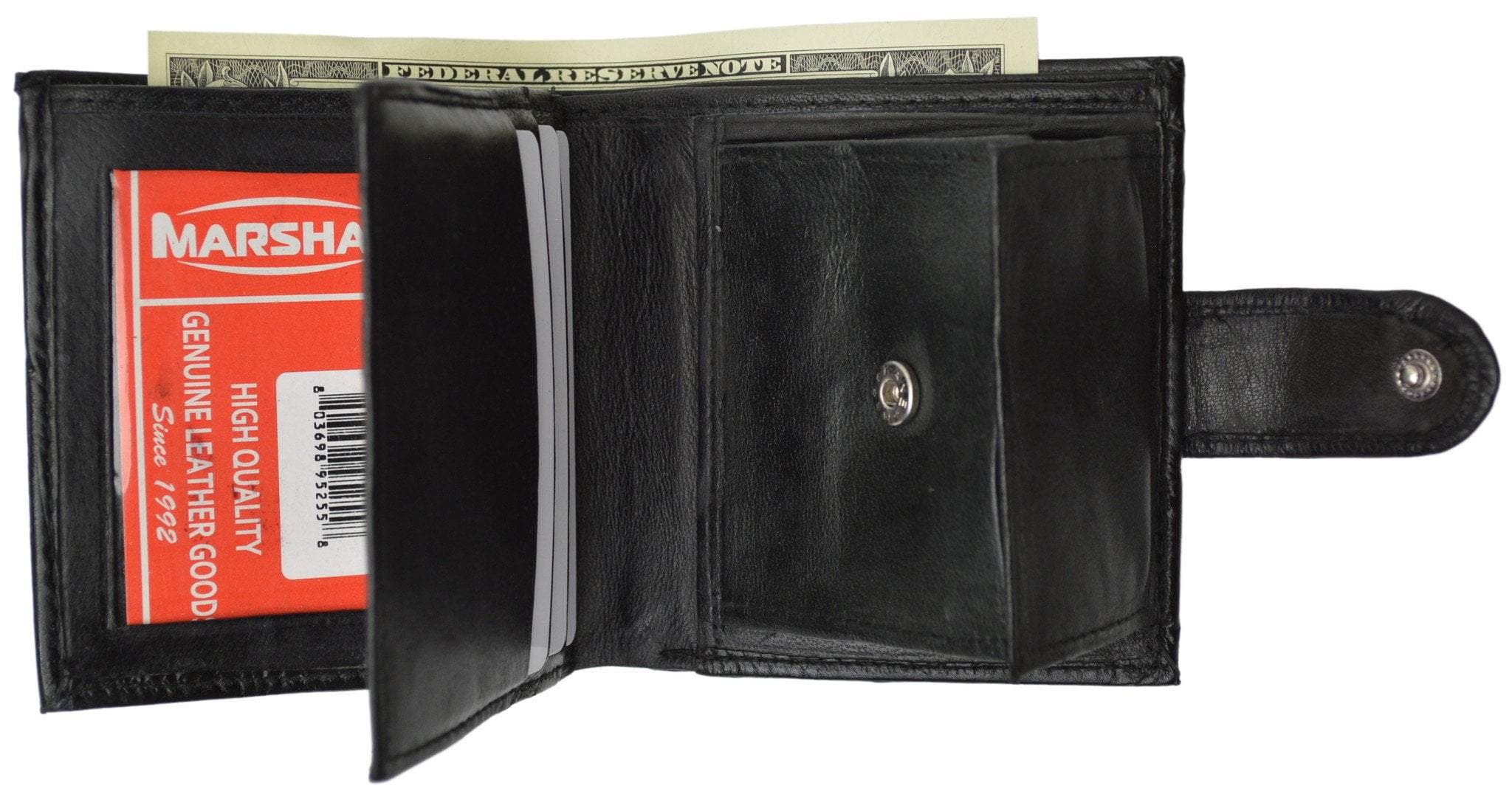 Material: Genuine Leather Tri-fold Credit Card Slots: 8+ I.D. Window: Yes Currency Pocket: Divider; Hideaway...