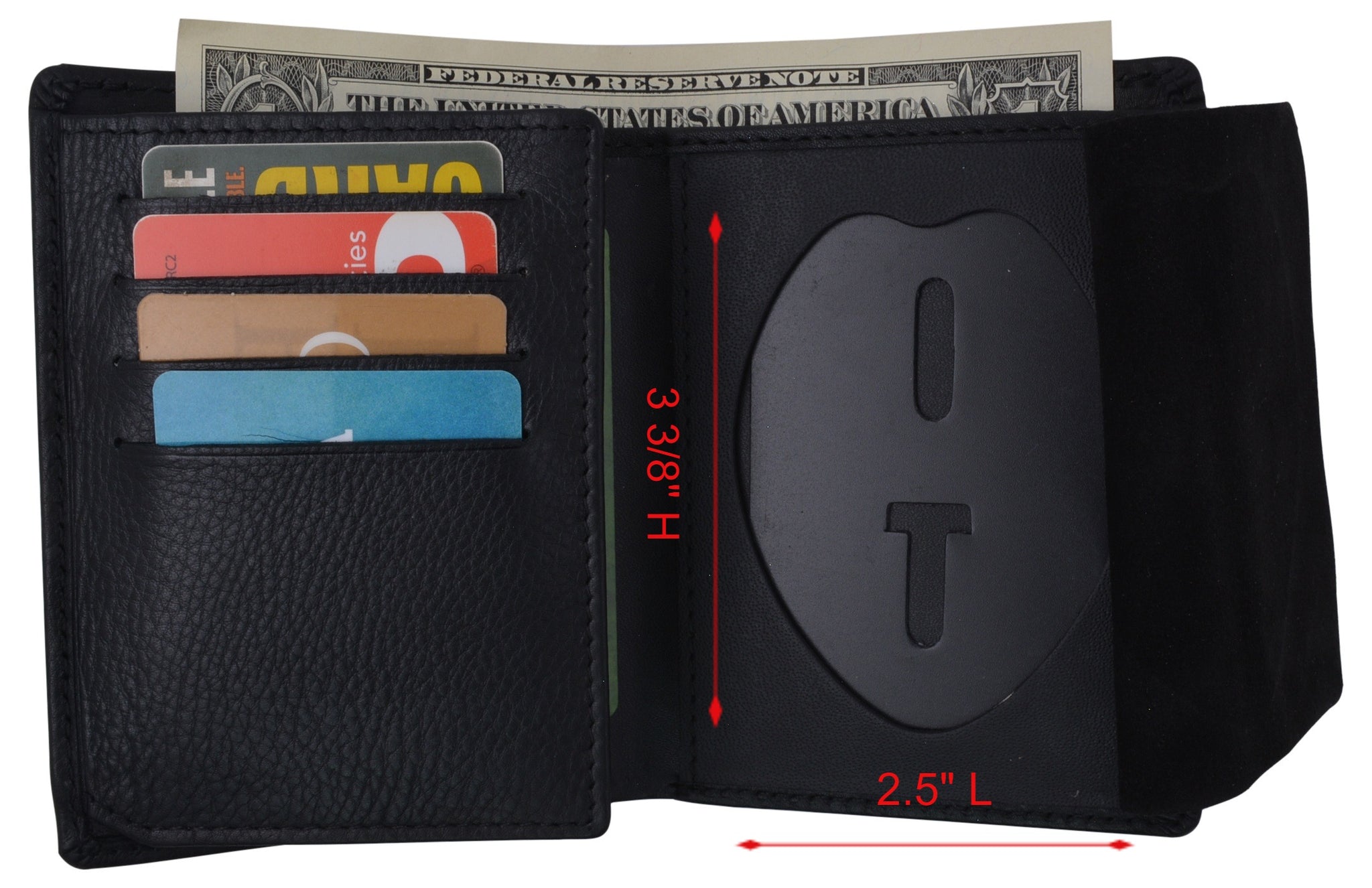 Mens Leather Wallet RFID Badge Holder for ID Police Officer Cop Security Fire
