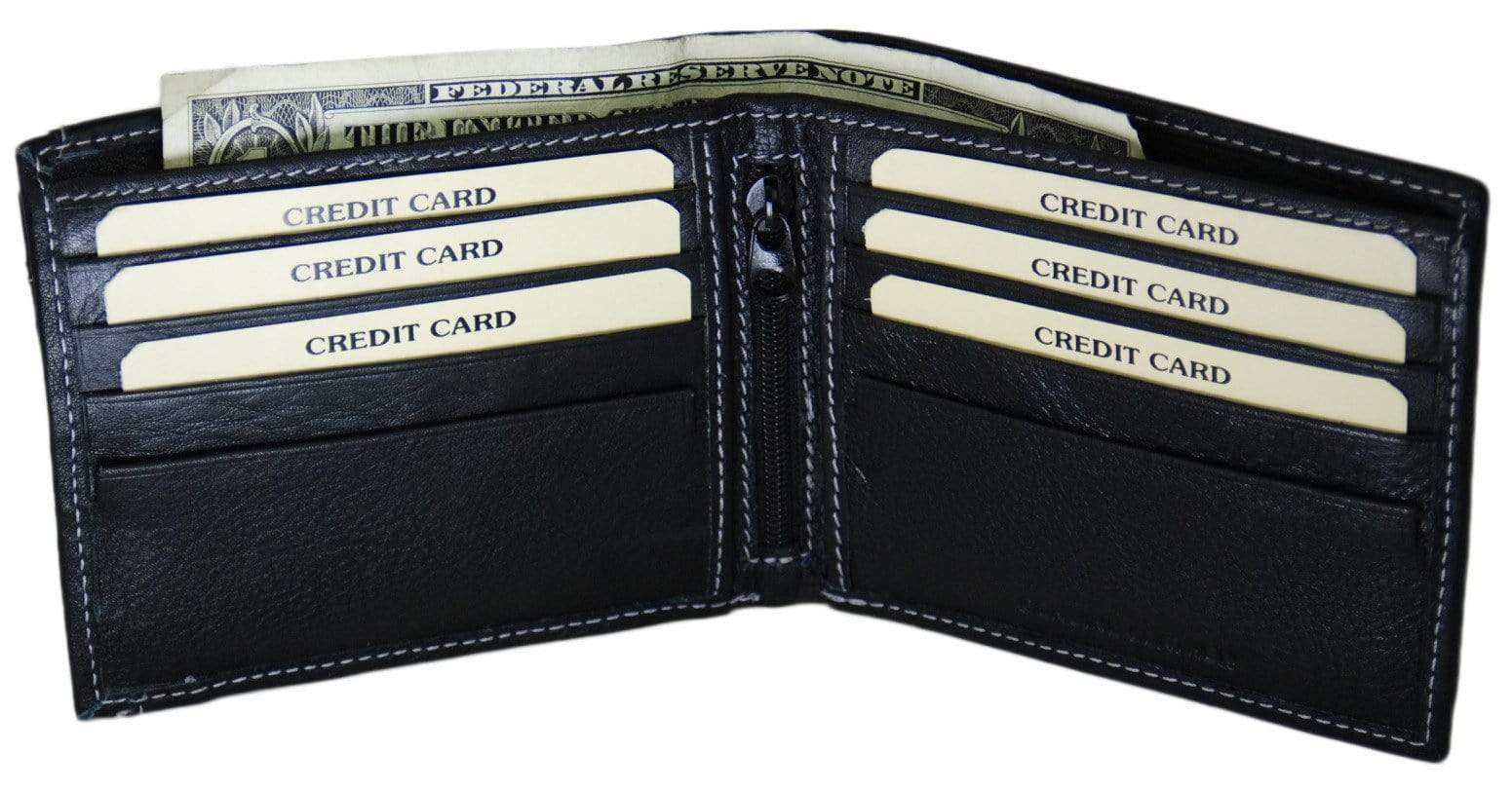 Other features: Removable ID Window on outer side of wallet; 8 Credit Card slots and a interior zippered compartment for change!Â