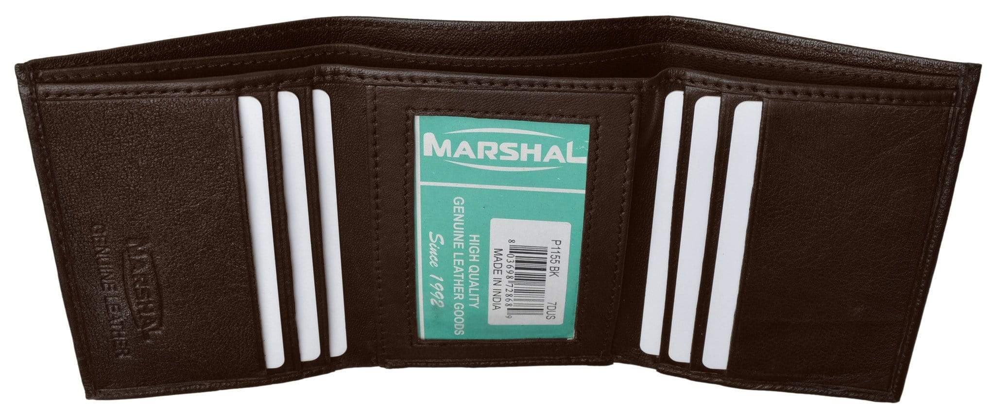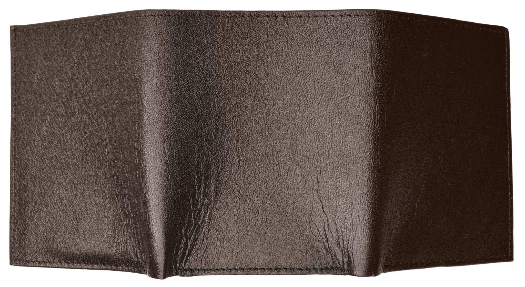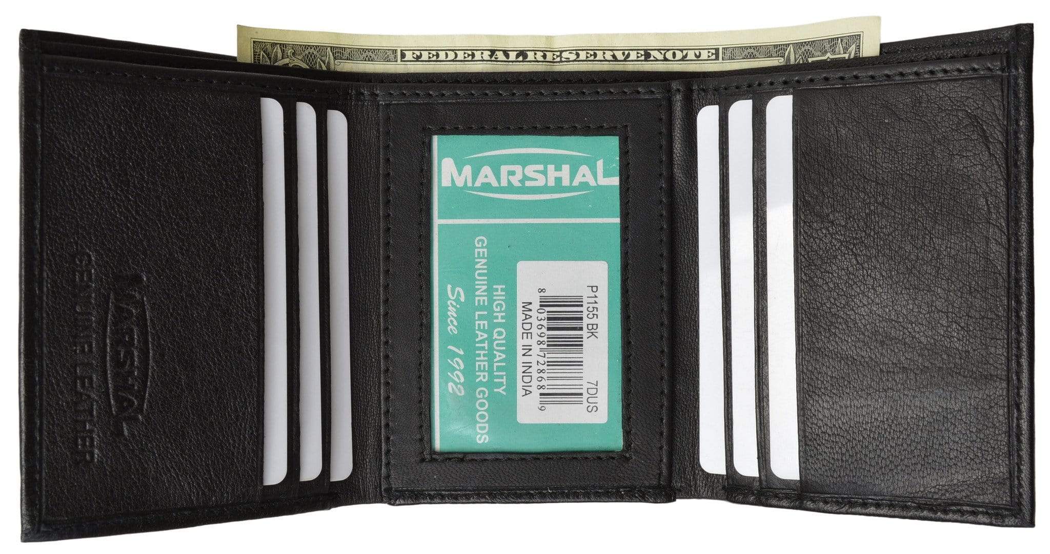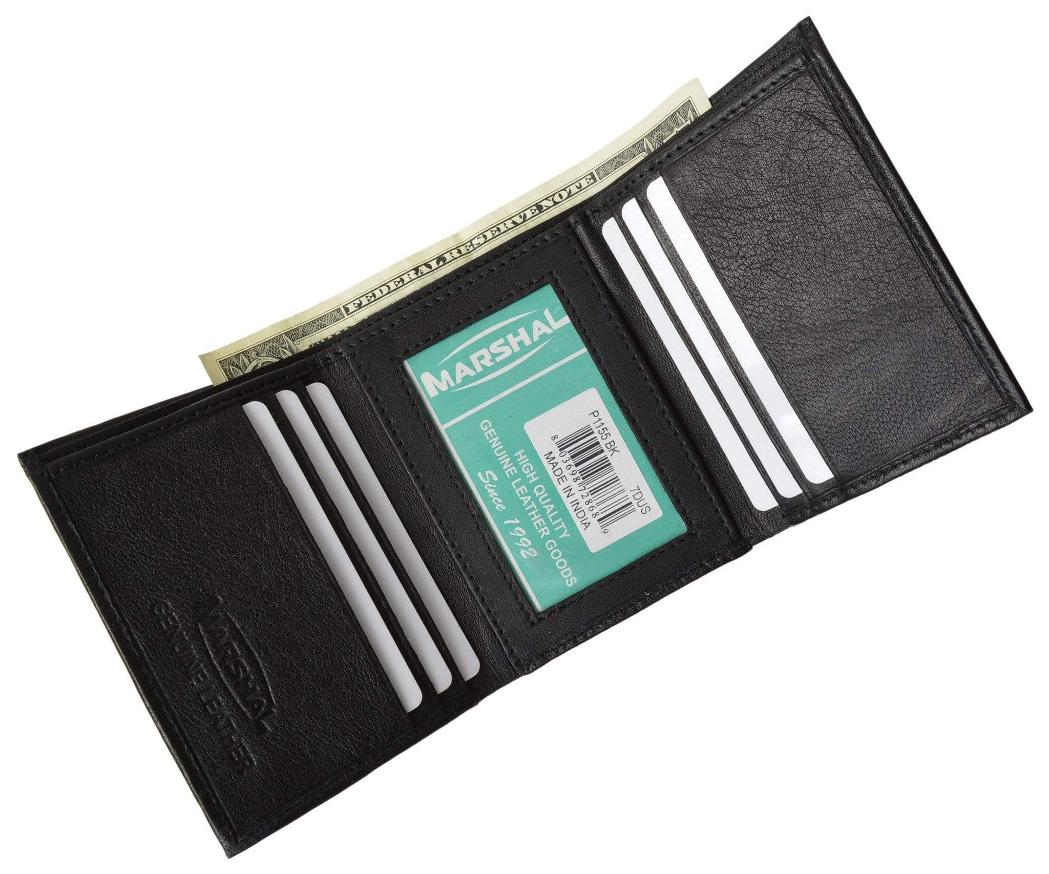 Material: Premium High Quality LeatherTrifold Wallet4 Credit Card SlotsID Window2 Extra Pockets for Receipts/Cards2 Bill Compartments. Measurements: 3.25" L X 4" H approx when closed