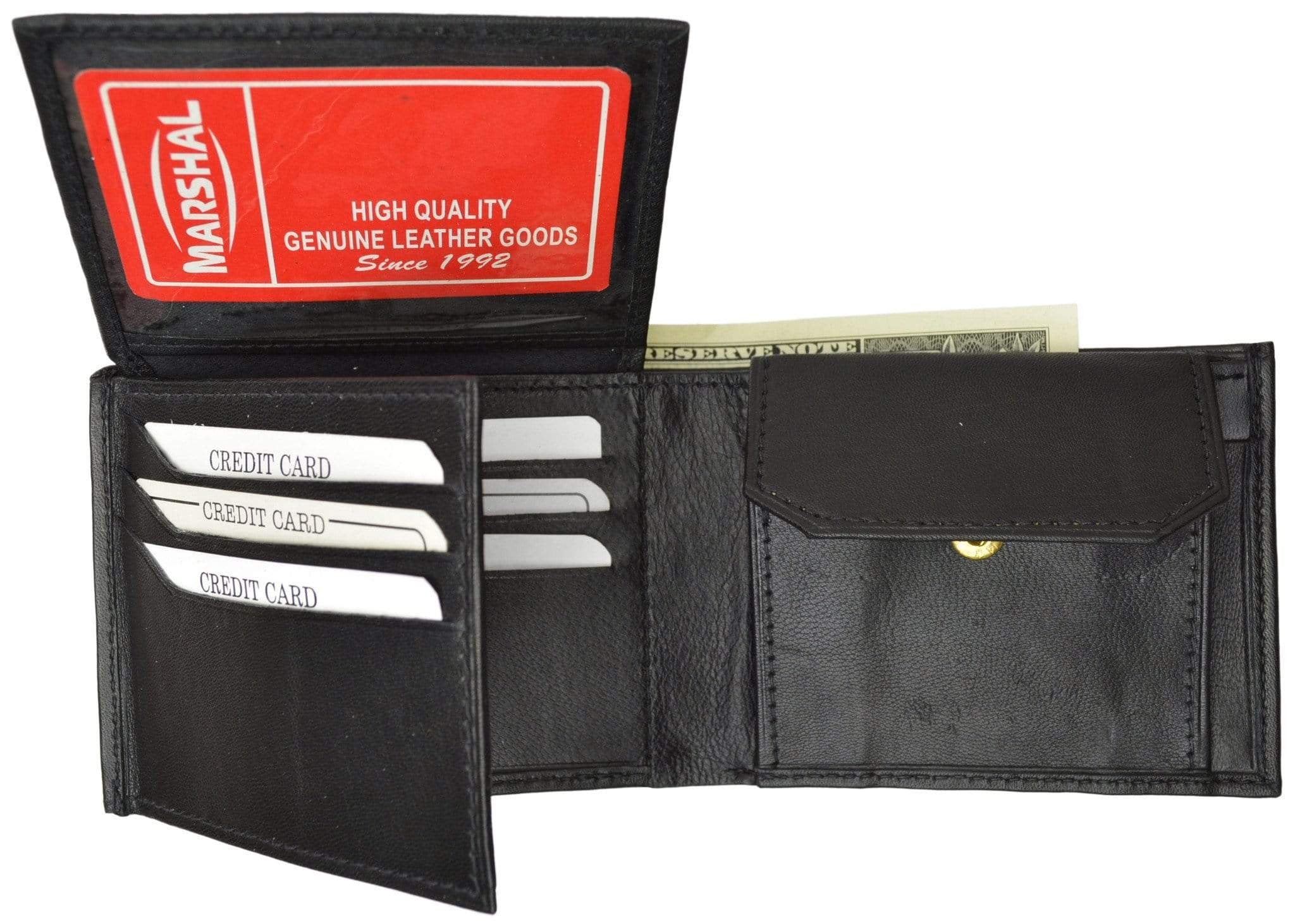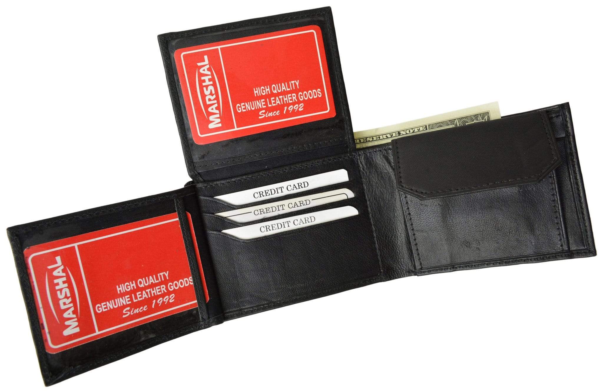 Material: Genuine Leather Tri-fold Credit Card Slots: 8+ I.D. Window: Yes Currency Pocket: Divider; Hideaway...