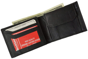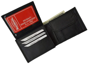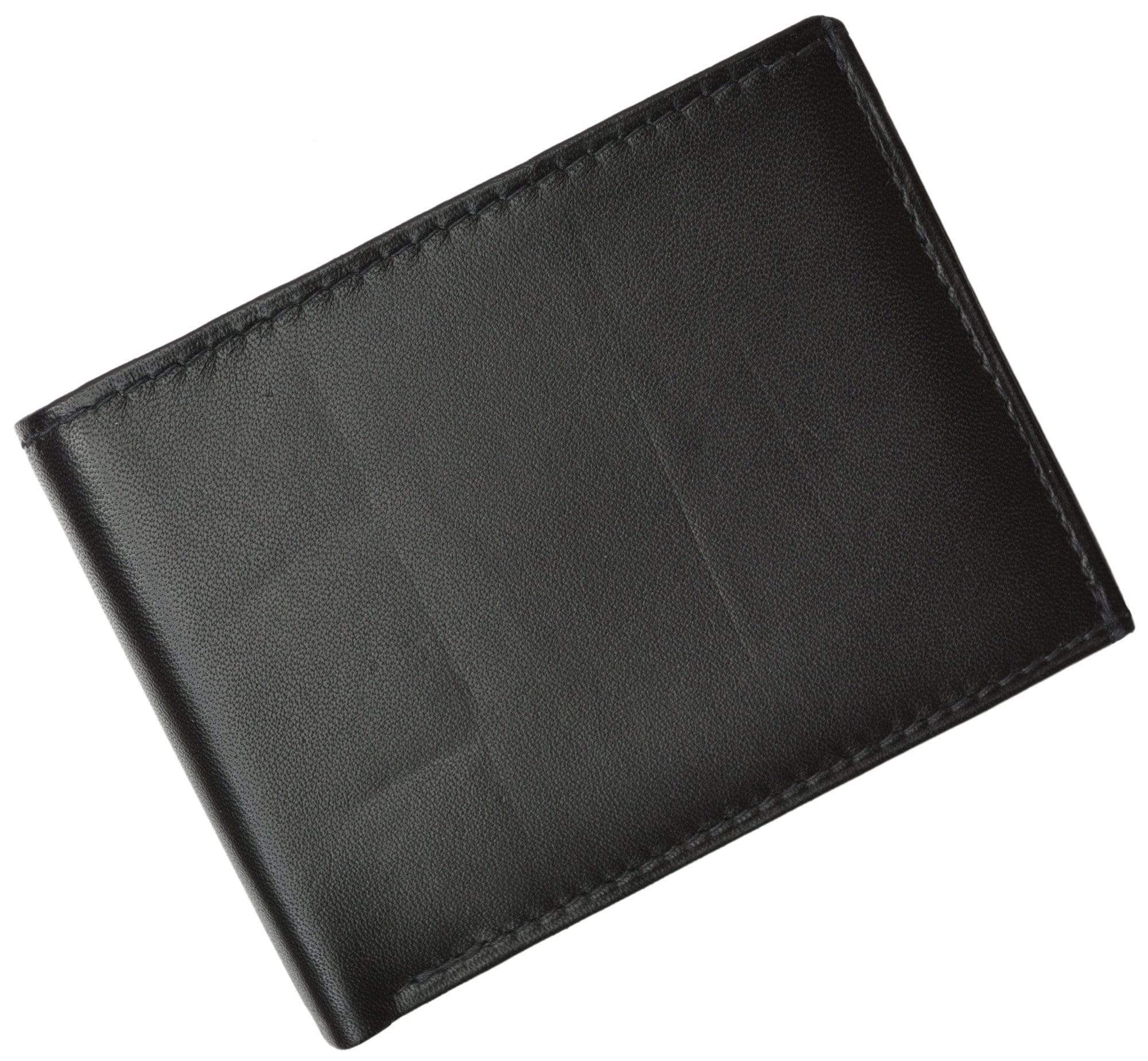 Men's wallet, crafted of fine lamb skin leather, features 6 credit cards slots, a Id...