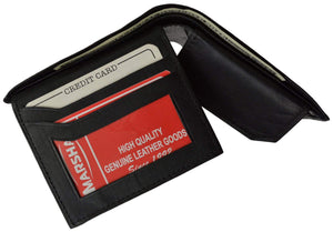 Men's genuine leather bi-fold wallet 9 credit card slots, currency compartment with a divider and a...