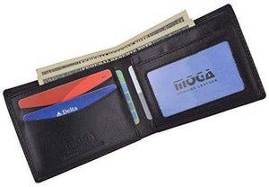 Product Information: - 100% High Quality Hand Made Genuine Leather Wallet. - 2 Credit Cards Slots with 2 Extra Side Card Slots for Receipts, Credit Cards, etc., ID Window and 2 Bill Compartments. - Comes with Moga Gift Box. - Size: 3.25" H x 4.25" L x 0.45" W. Quality Assurance: - All Moga wallets are 100% premium genuine leather hand made Italian design wallets of the highest quality. - They all come in a gift Moga box perfect to protect your wallet or ready to be used as a present to a loved one. - All Moga products are very reliable, durable and elegant, so you can be sure that you are buying a high quality product.