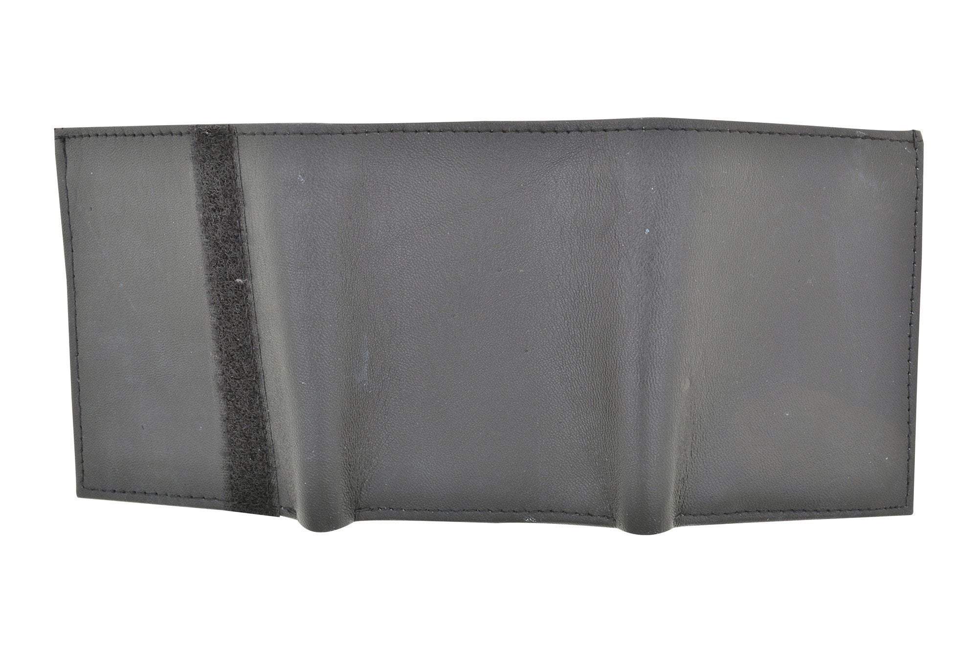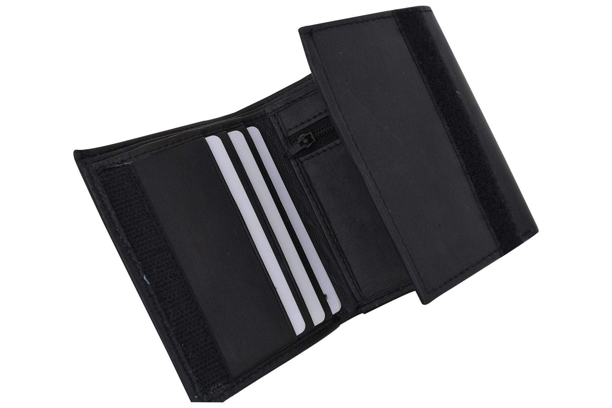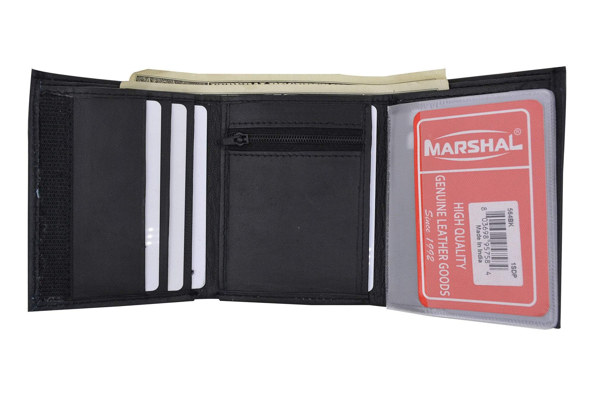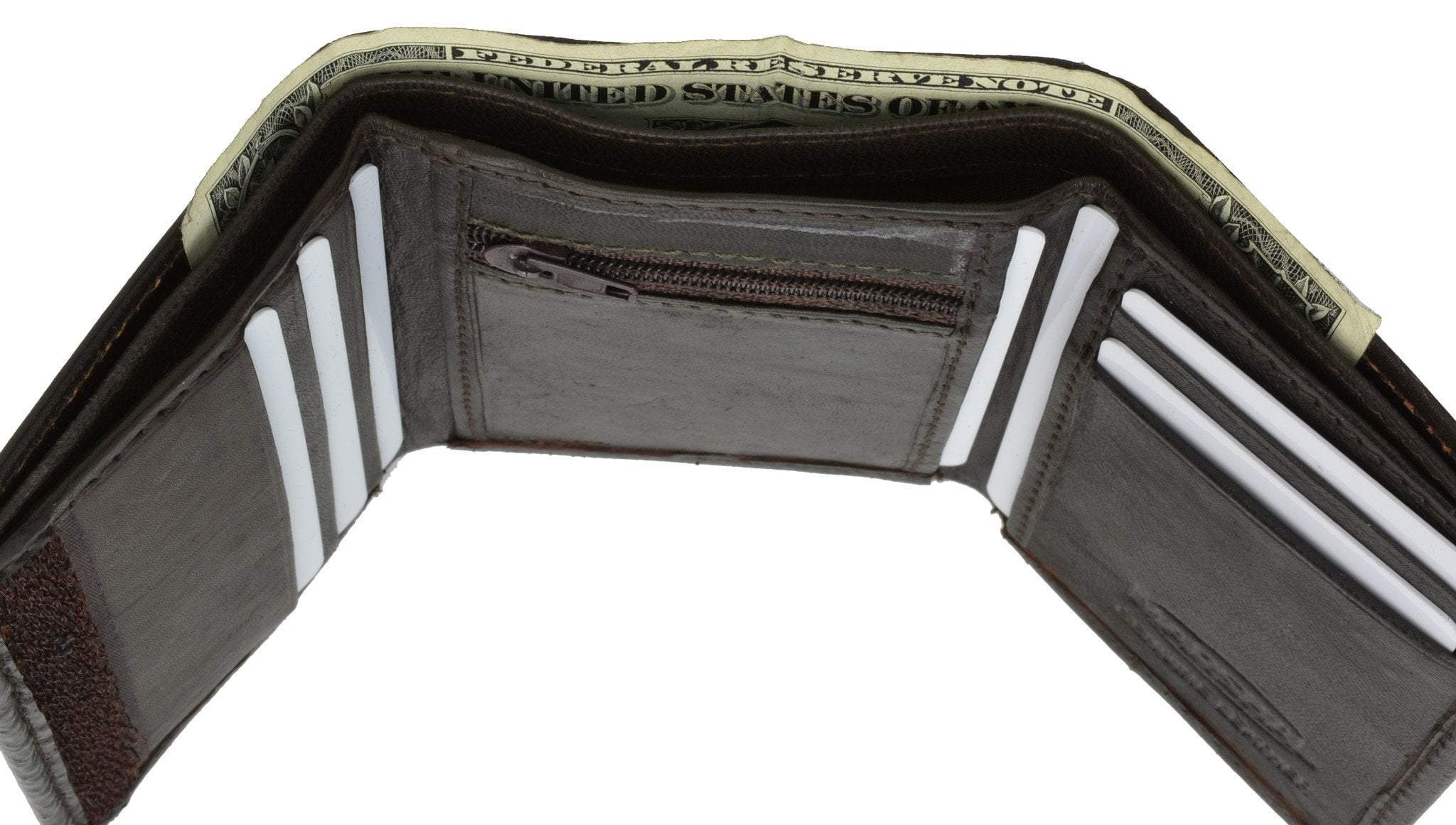 Material: Genuine Leather Tri-fold Credit Card Slots: 8+ I.D. Window: Yes Currency Pocket: Divider; Hideaway...