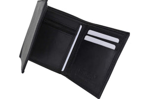 Men's wallet, crafted of fine lamb skin leather, features 6 credit cards slots, a Id...