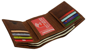 ● STAYS SLIM EVEN WHEN FULL: This mens trifold wallet for men helps keep your personal and financial info safe by blocking malicious attempts to steal your identity from your chip enabled cards. The lining of this wallet blocks 13.56 MHz RFID signals which is the frequency your credit cards and IDs operate on.