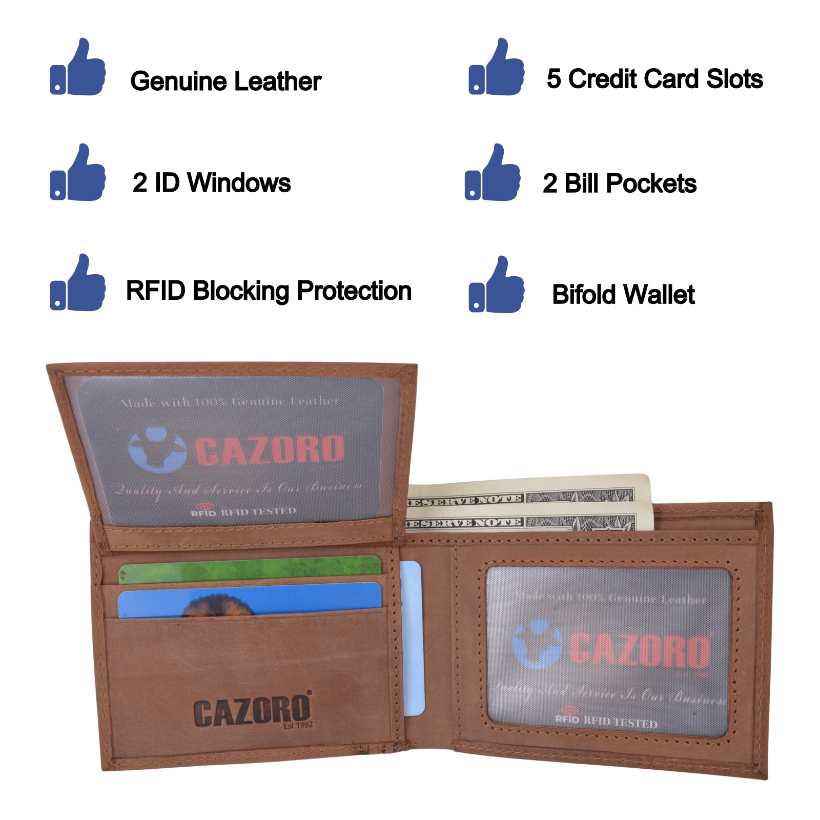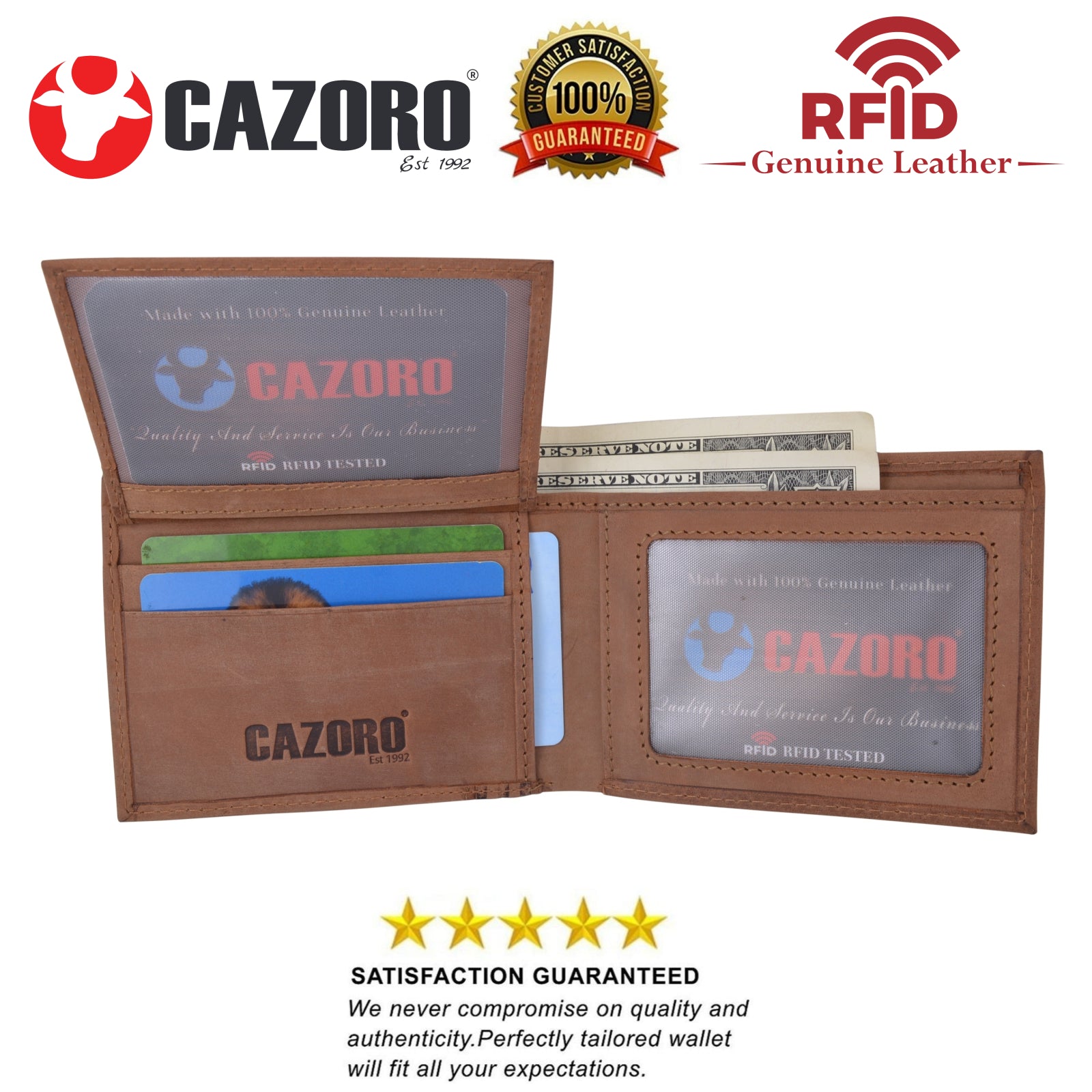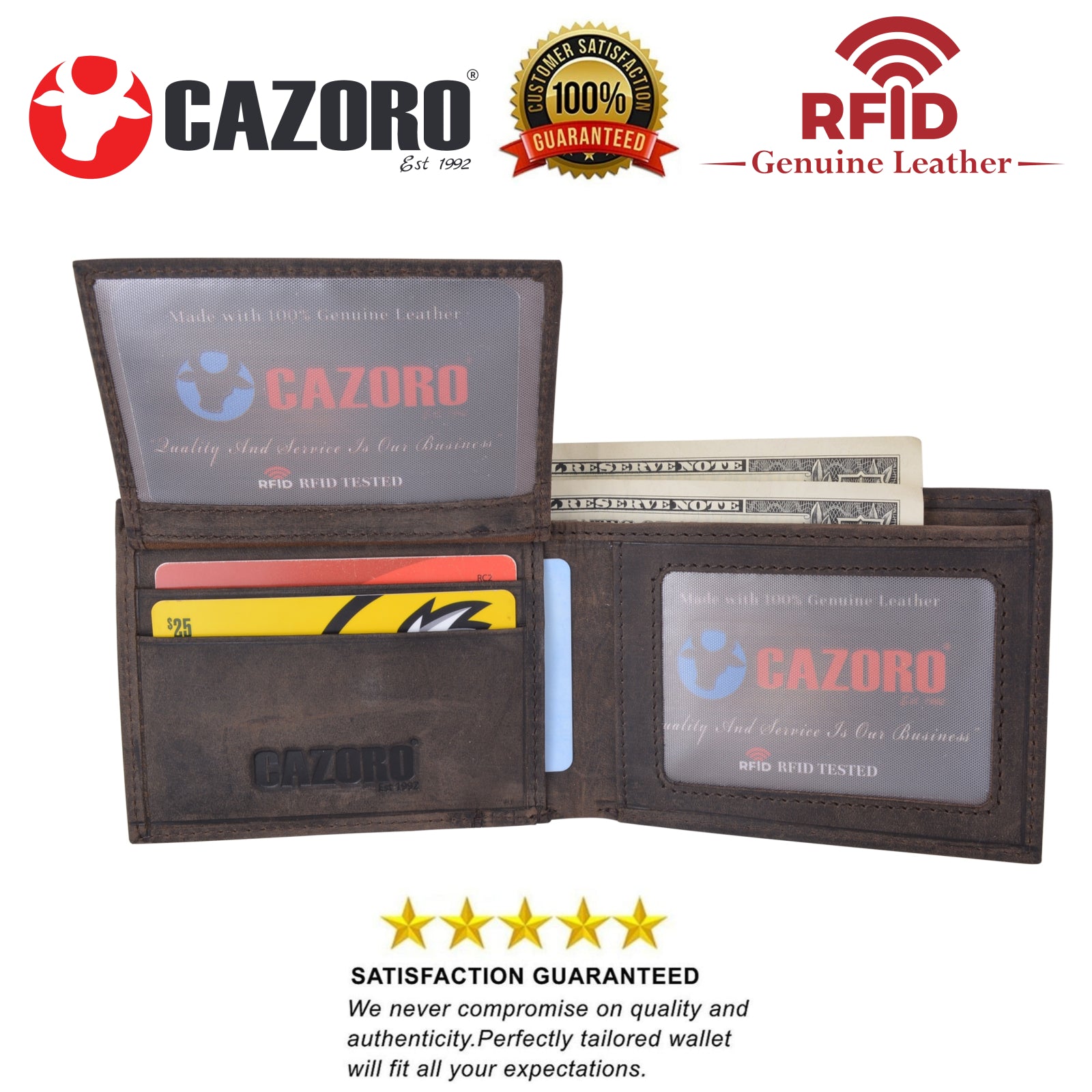 Category: bifold wallet, Cazoro, Cazoro USA, Genuine Leather, hunter leather, Mens wallet, RFID, USA Series