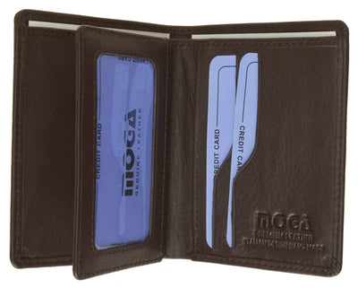 Holds many many credit cards only. You can leave the important ones in the center flaps and others on the side! Perfect for the people who just don't like to carry cash. Part of the MOGA line, made of excellent quality leather rivaling with the top of the line designer brands.