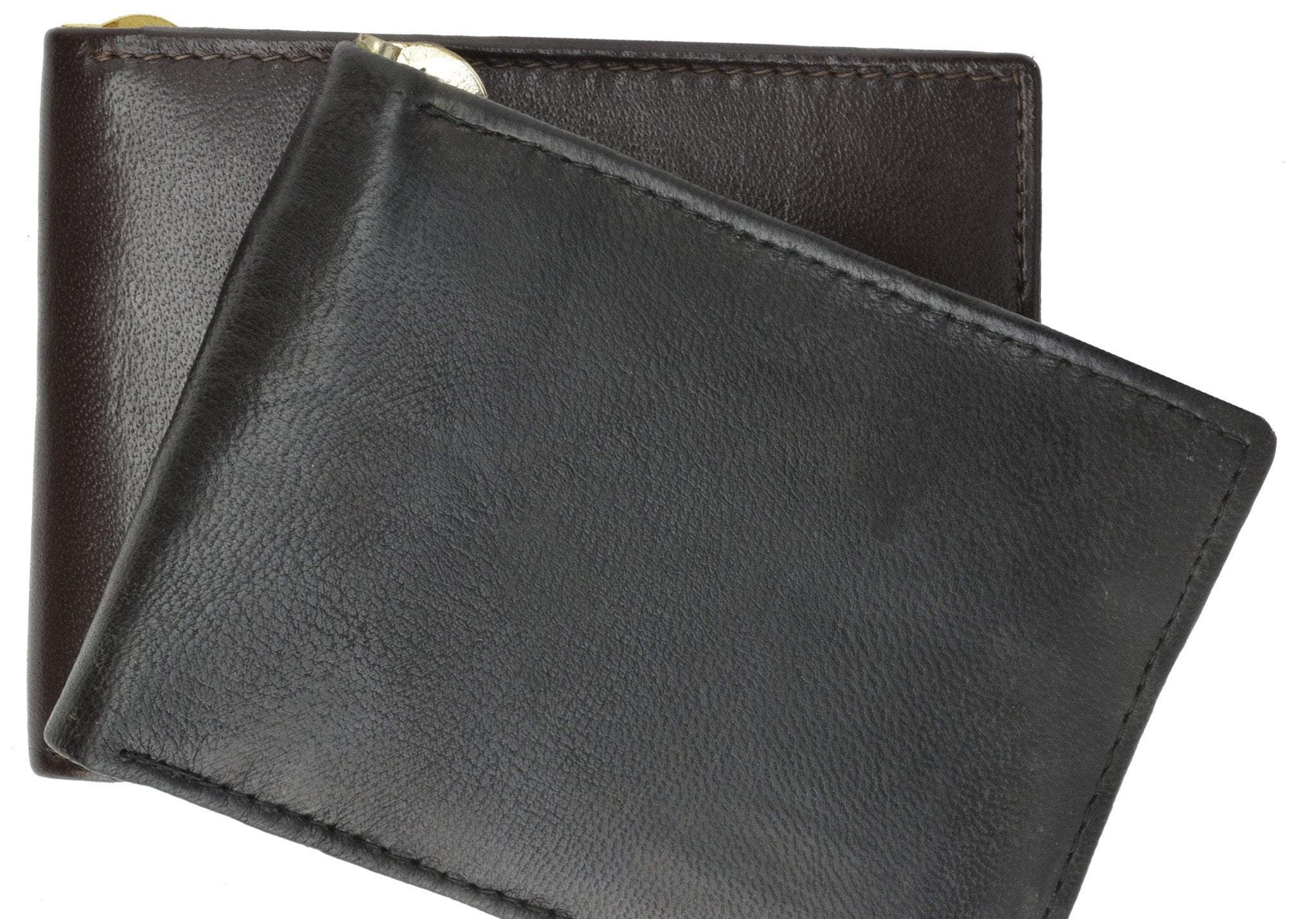 A great use and very slim. Get easy acces to your cash and handle your credit cards at the same time! Wallet with money clip. Crafted of fine lambskin leather. This basic money clip features the center clip to hold currency. 3 credit card slots. A see through plastic window. Dimensions; Height:3 1/4", Width:4".
