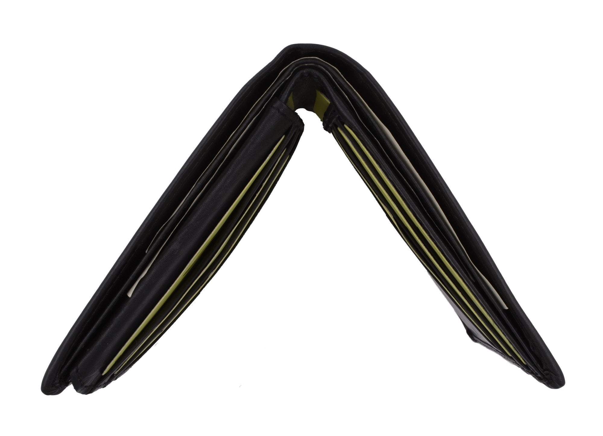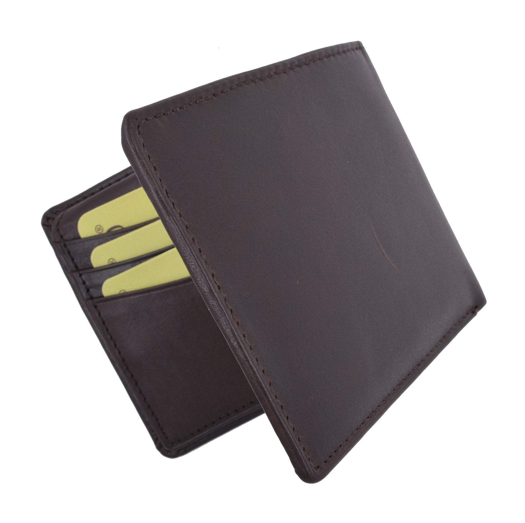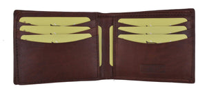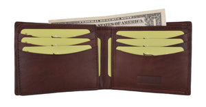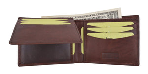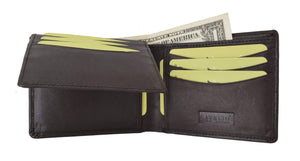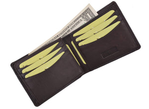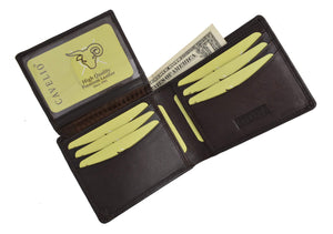 Men's genuine leather bi-fold wallet 9 credit card slots, currency compartment with a divider and a...