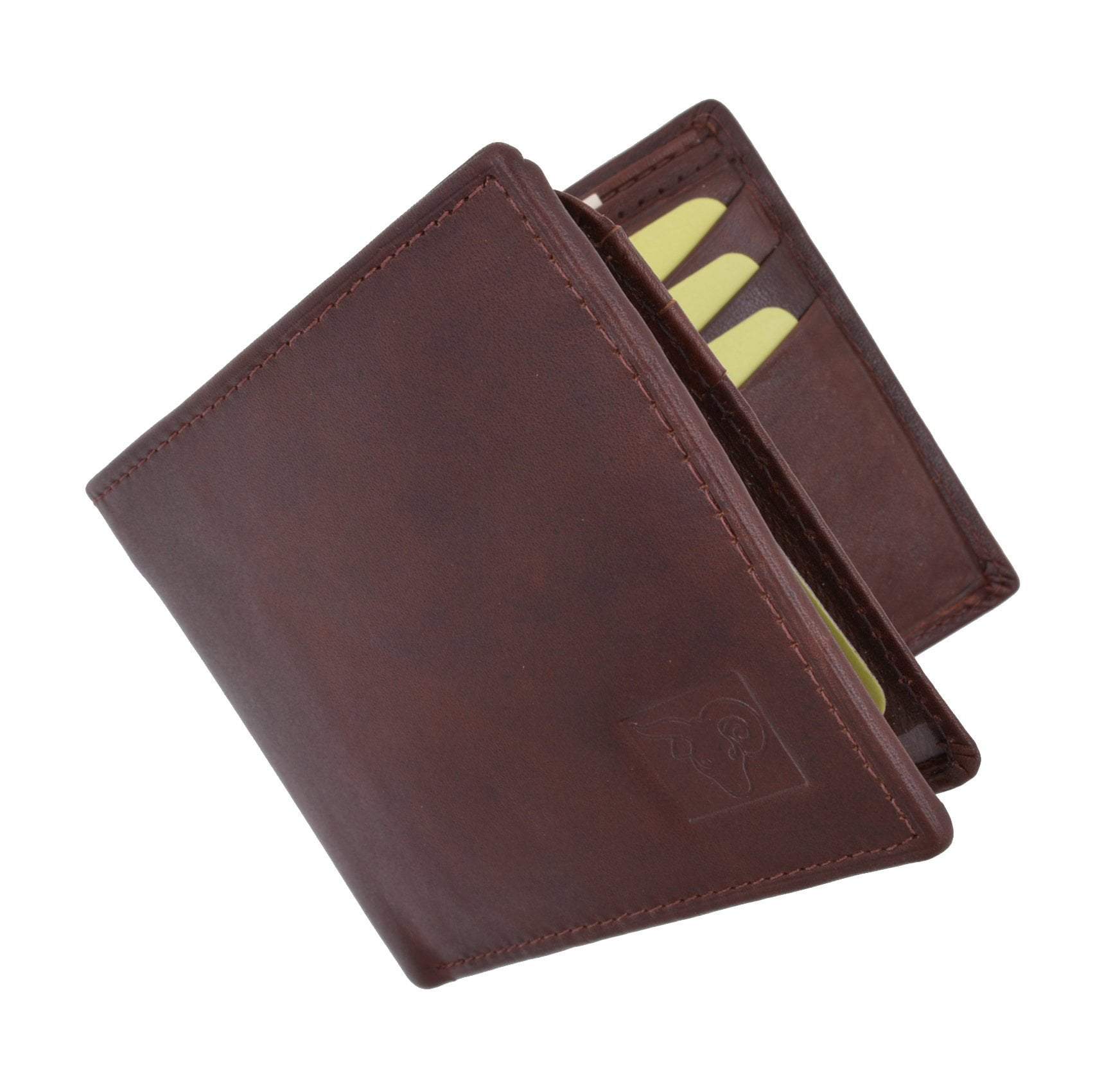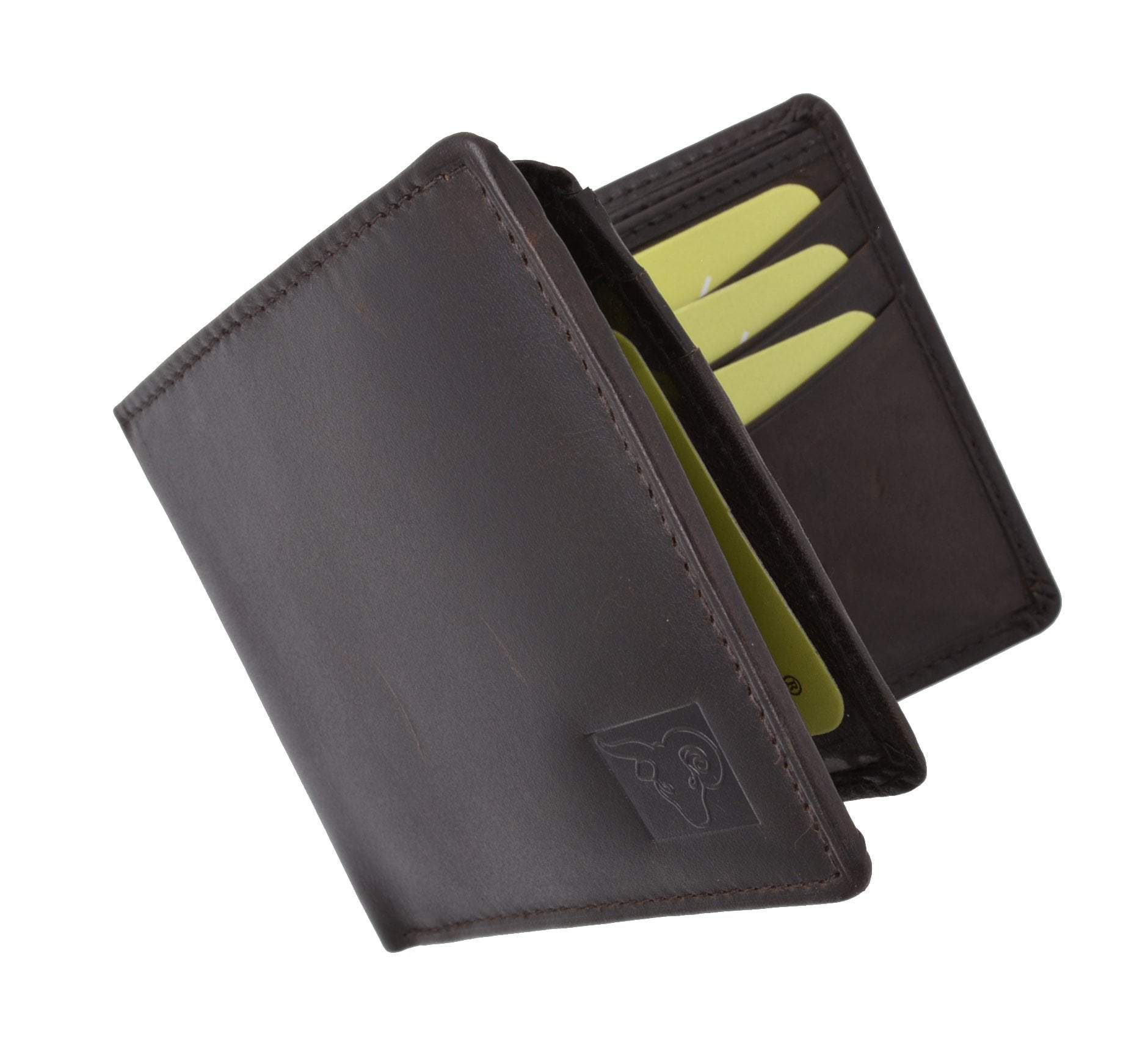 Material: Genuine Leather Tri-fold Credit Card Slots: 8+ I.D. Window: Yes Currency Pocket: Divider; Hideaway...