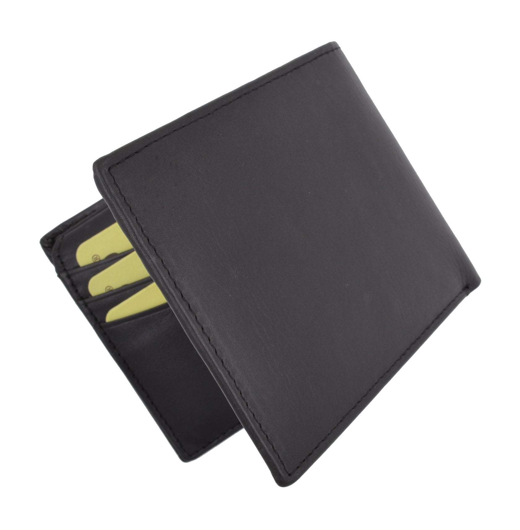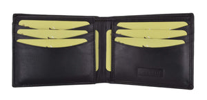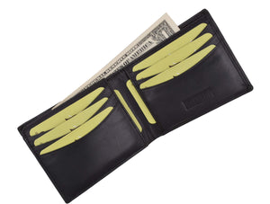 Men's wallet, crafted of fine lamb skin leather, features 6 credit cards slots, a Id...