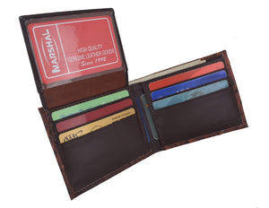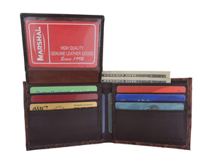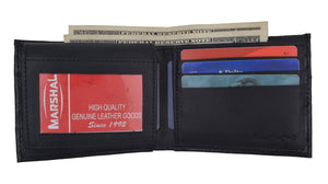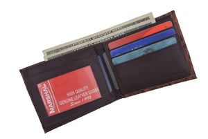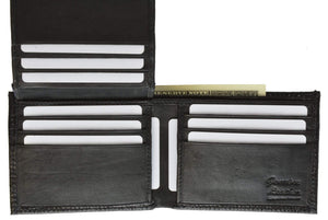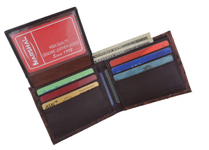 Men's genuine leather bi-fold wallet 9 credit card slots, currency compartment with a divider and a...