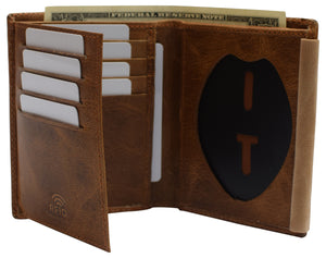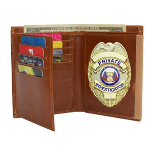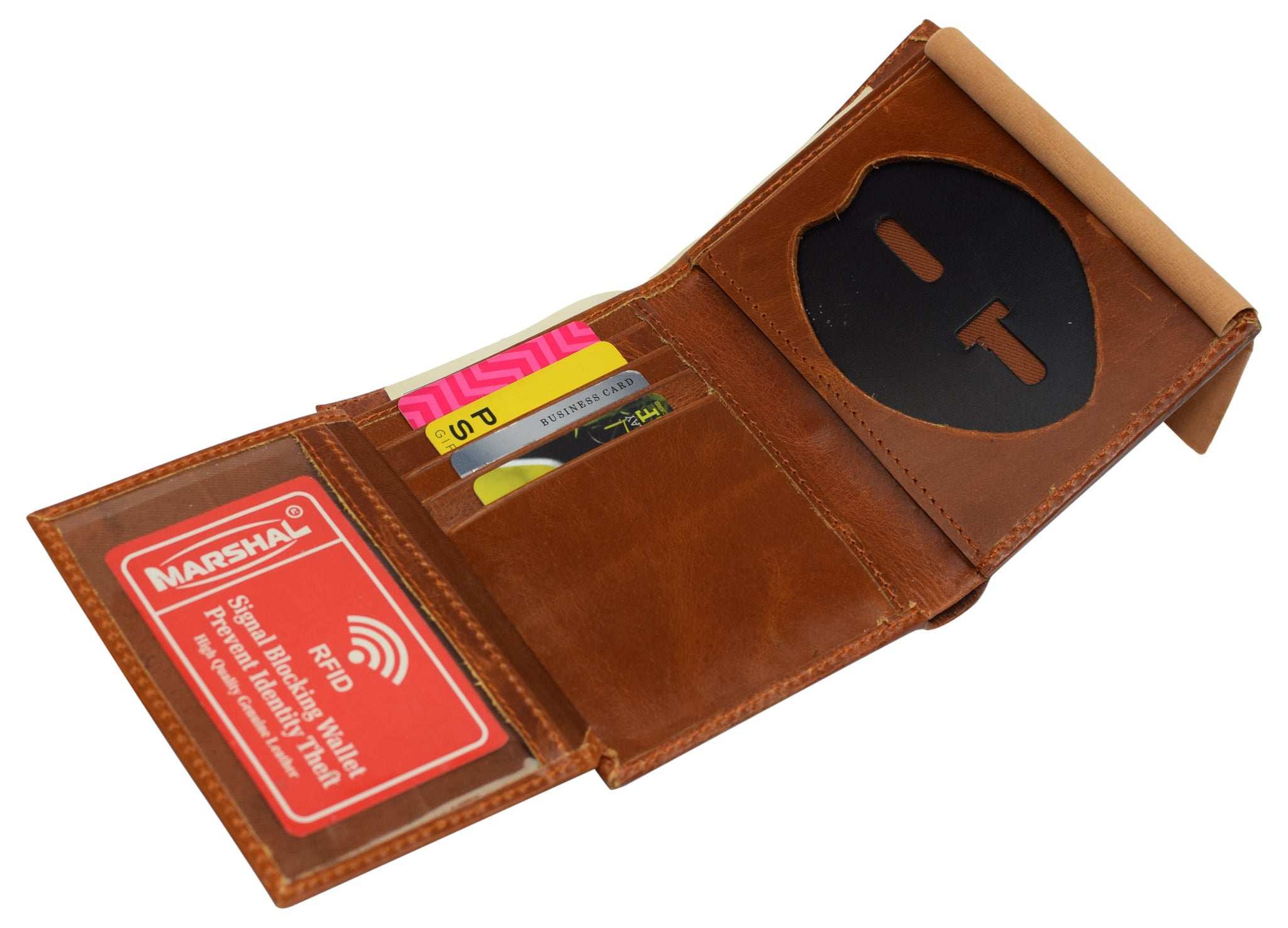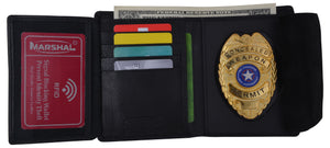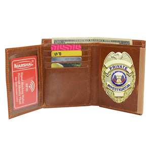 Police Badge Wallet Bifold RFID Full Grain Genuine Leather, Fits Any Shape Badge with a Pin Back