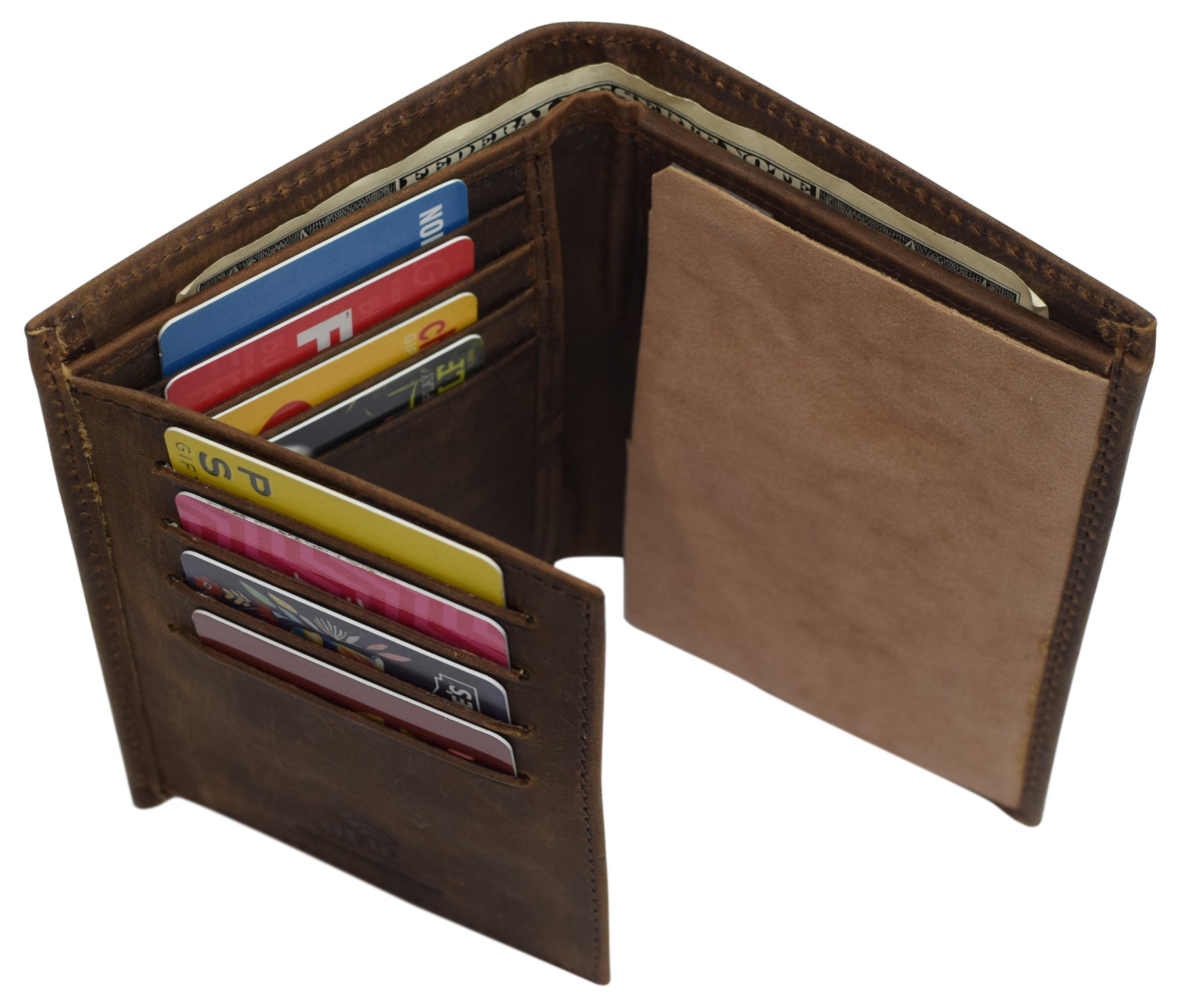 • FULL GRAIN GENUINE LEATHER: This wallet was crafted using top-quality leather that’s supple but sturdy and will develop an attractive patina through wear and aging; the distinctive appearance of a choice accessory.
